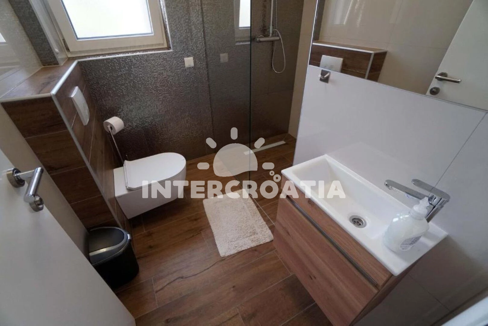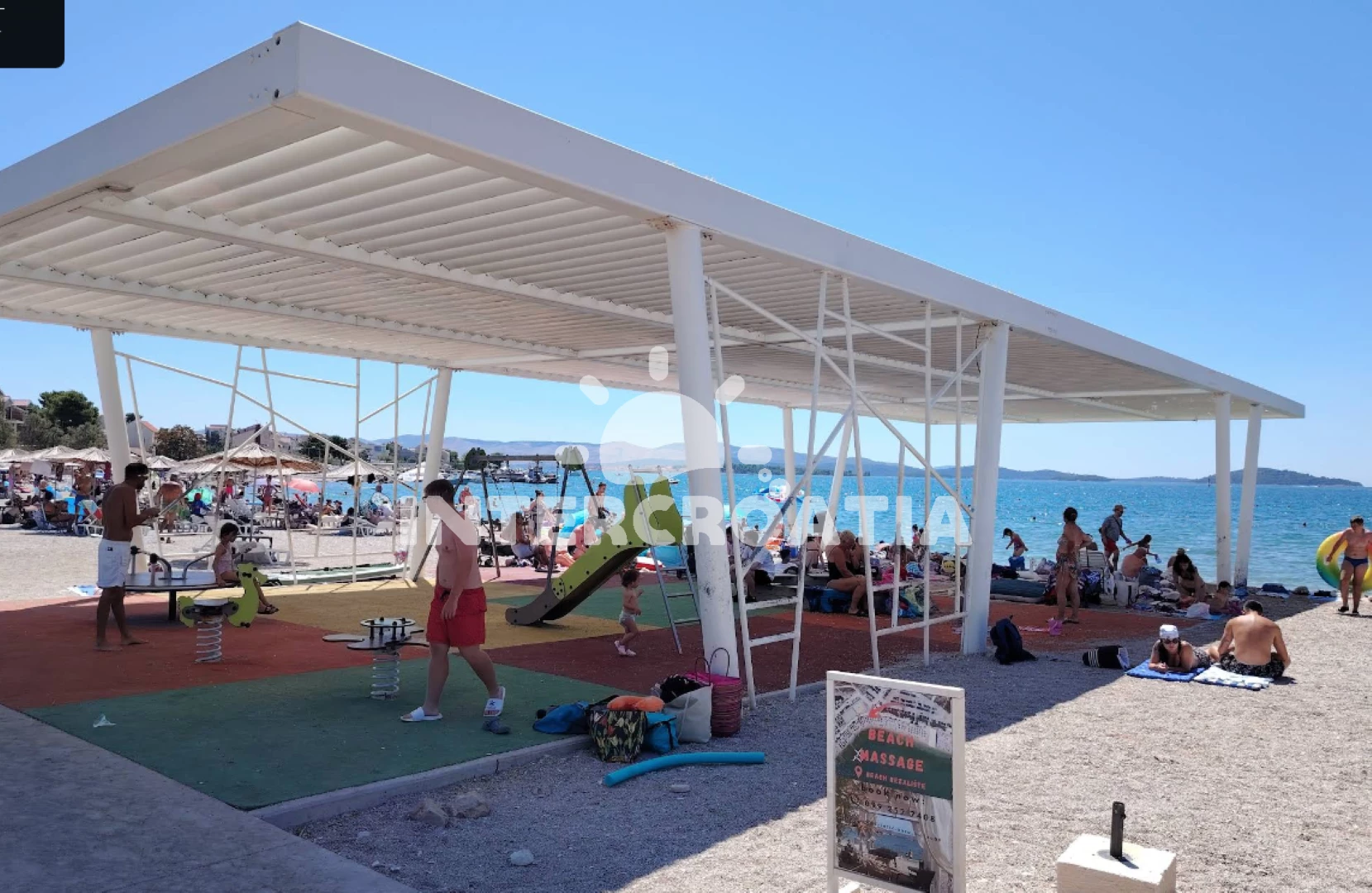 Vzdálenosti: Moře 380 m, pláž 500 m (písek), bar 350 m, supermarket 400 m, veřejná doprava 400 m, restaurace 400 m, centrum 1 km, čerpací stanice 1,8 km, směnárna 2 km, marina 3,7 km, lékárna 4 km, ambulance 5 km, banka 5 km, pošta 5 km, trajekt 5,3 km, letiště (Split) 49 km,