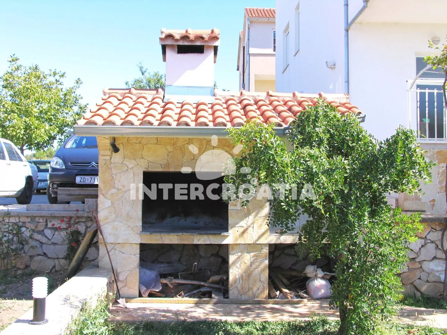Patrový domek v zahradě s balkonem a dobrou dostupností jak na pláž, tak do centra obce.
