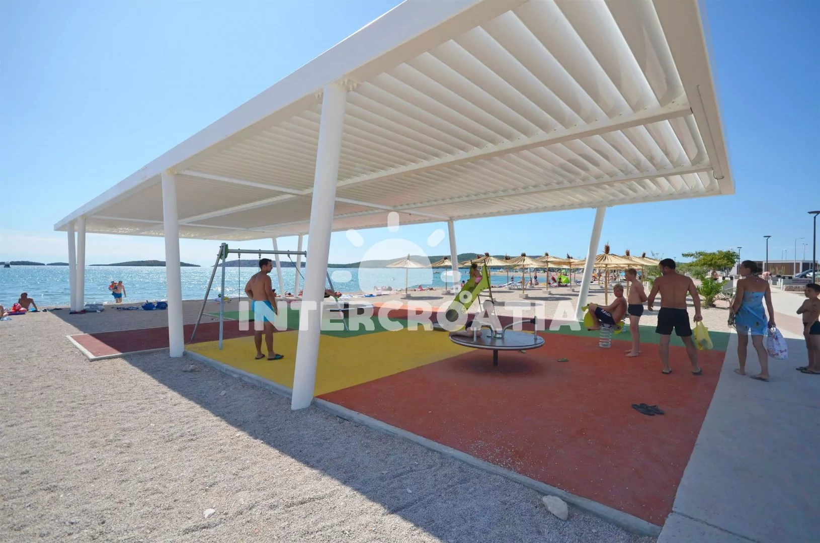 Vzdálenosti: Moře 500 m, pláž (oblázky, v blízkosti přístupová cesta) 500 m, centrum 1800 m, pošta 2000 m, lékárna 2500 m, zdravotní středisko 1500 m, restaurace 500 m, směnárna 300 m, banka 3500 m, muzeum 3500 m, bar 200 m, půjčovna kol 2500 m, půjčovna motorových člunů 2000 m, kotviště pro čluny 500 m, potápěčský klub 2500 m, tenisové kurty 2500 m, minigolf 2500 m, krytý bazén 2500 m, venkovní bazén 2500 m, diskotéka 2500 m, čerpací stanice 1800 m, veřejná doprava 300 m, přístav 2500 m, trajekt 3500 m (Šibenik), letiště 60 km (Split).