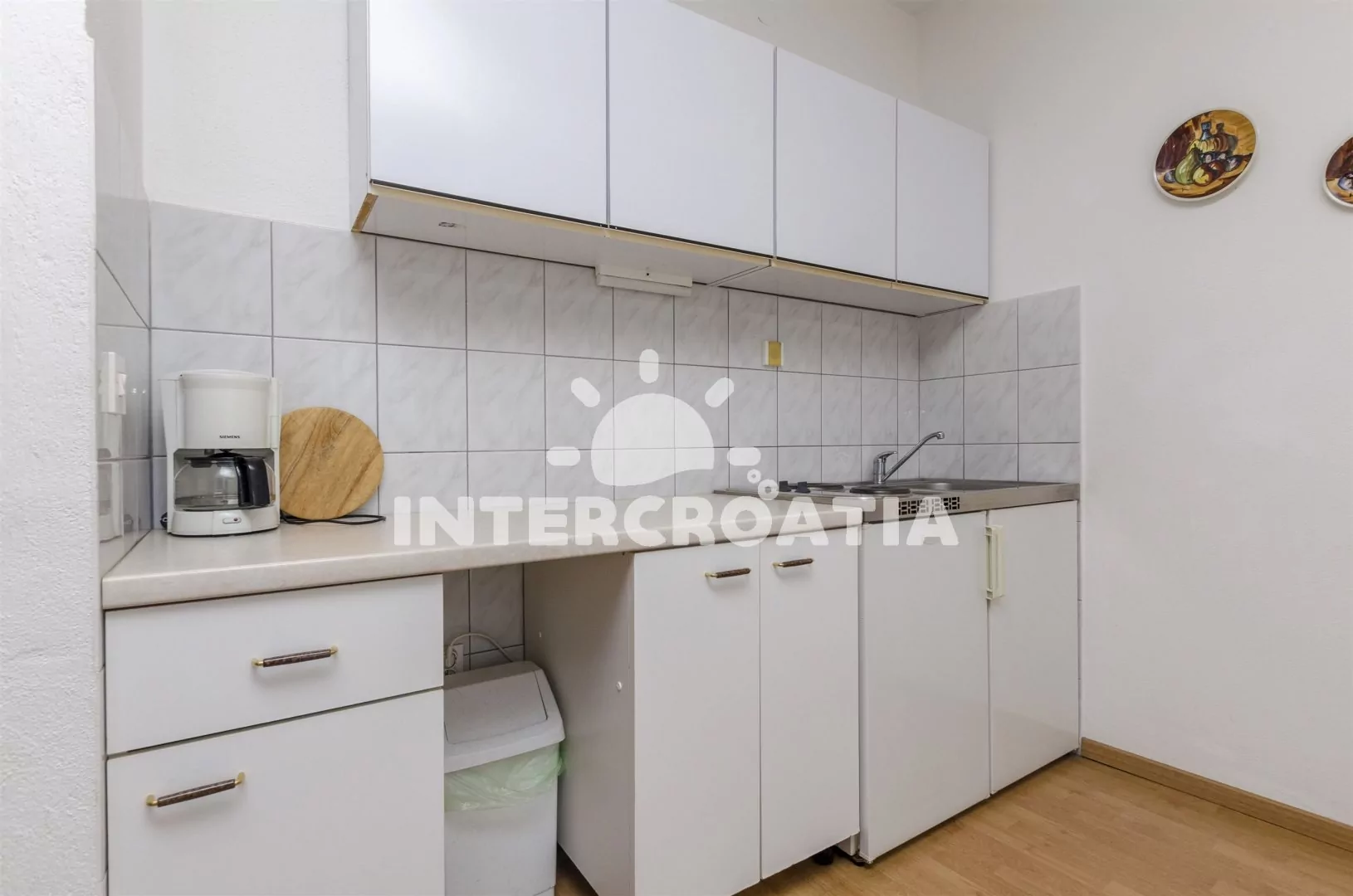 Studiový apartmán s balkonem s posezením, nacházející se v 1. patře domu. Vstup, obývací místnost spojená s kuchyňským koutem. Kuchyňská linka s dvouplotýnkovým elektrickým vařičem, lednicí s…