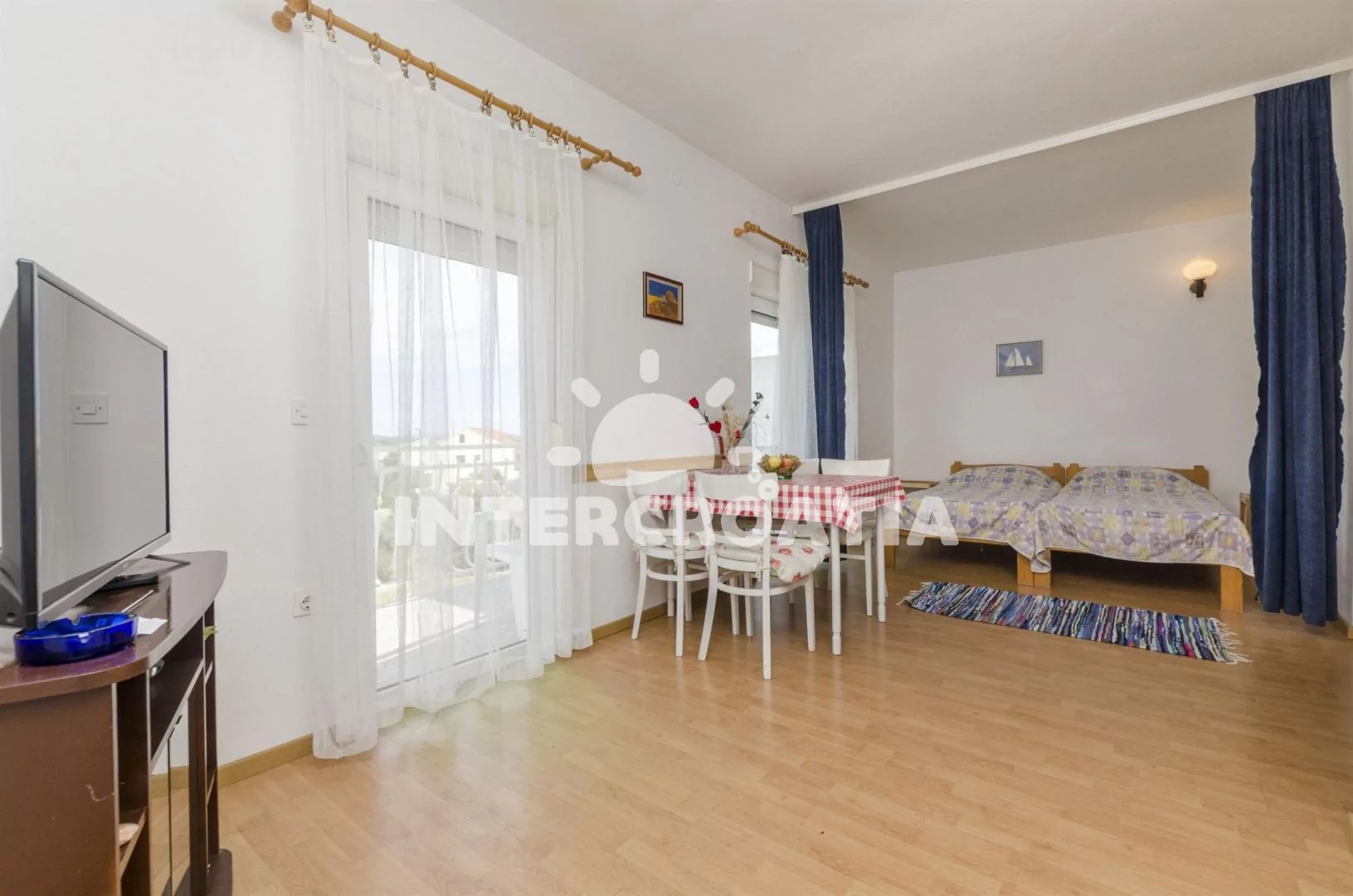Klidnou vesničku Brodarica najdete v blízkosti Morinského zálivu, jen 8 kilometrů od Šibeniku jižním směrem. Přes moře, pouhých 300 metrů vzdušnou čarou leží ostrov Krapanj. Na pevnině v okolí obce se nachází vesničky Donjde Polje a Jadrtovec. Pláž leží 500 metrů od apartmánu.