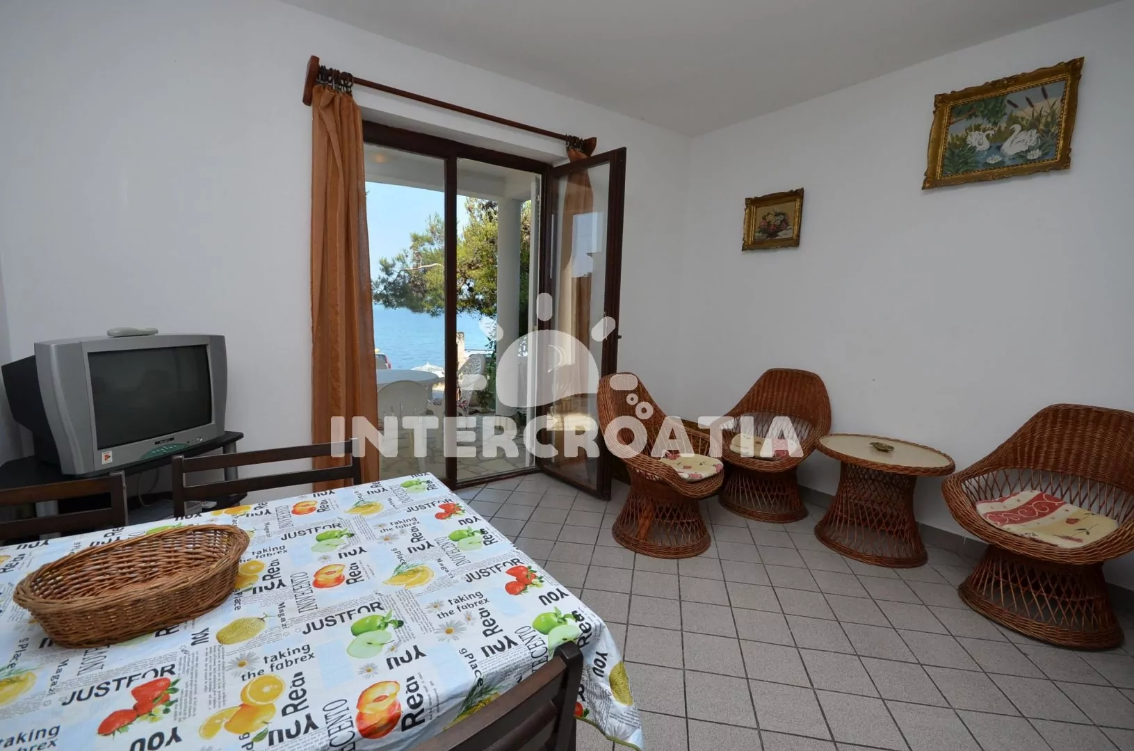 Menší apartmánový dům s terasou, výhledem na moře, nacházející se přímo u pláže.