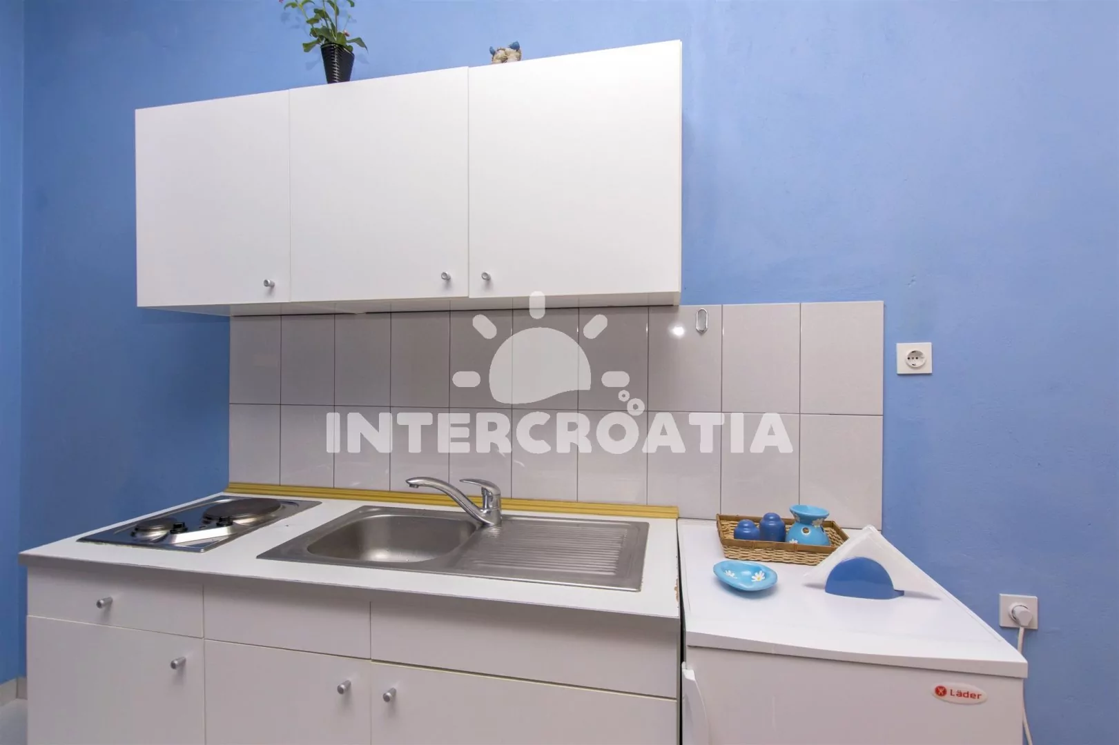 Apartmán s terasou a venkovním posezením se nachází v přízemí vilky a je vhodný pro 2 až 4 osoby. Obývací pokoj je spojený s kuchyní. Kuchyňská linka je vybavena dvouplotýnkovým sporákem, nádobím a lednicí s mrazákem. Obývací pokoj s jídelním stolem pro 4 osoby, pohovkou (rozložitelná na extra lůžko pro 2 osoby), televizí se satelitním programem a klimatizací. Ložnice je vybavena jedním dvoulůžkem. Koupelna se sprchovým koutem, umyvadlem a wc. Hostům je k dispozici parkování u objektu zdarma.