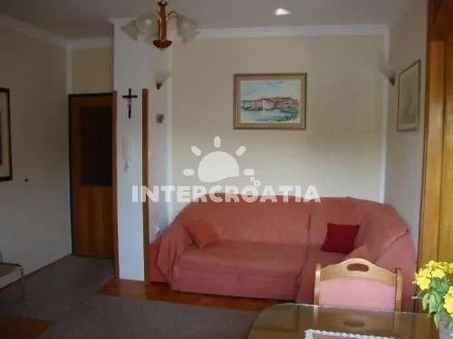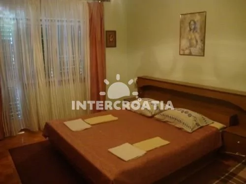 Apartmán (100 m2) s balkonem, venkovním posezením a výhledem na moře. Apartmán je vhodný pro 6 až 8 osob a nachází se v prvním patře domu. Kuchyň s kuchyňskou linkou, sporákem, digestoří, troubou, myčkou na nádobí, mikrovlnnou troubou, kávovarem, nádobím a lednicí s mrazákem. Obývací pokoj s jídelním stolem pro 6 osob, televizí, radiem a přistýlkou (extra lůžko pro 1 osobu). První ložnice s jedním dvoulůžkem, jednou přistýlkou a vstupem na balkon. Druhá ložnice s dvoulůžkem a vstupem na balkon. Třetí ložnice s jedním dvoulůžkem. První koupelna se sprchovým koutem, umyvadlem a wc. Druhá koupelna s vanou, sprchovým koutem, umyvadlem a wc. Hostům je k dispozici parkování u objektu zdarma.