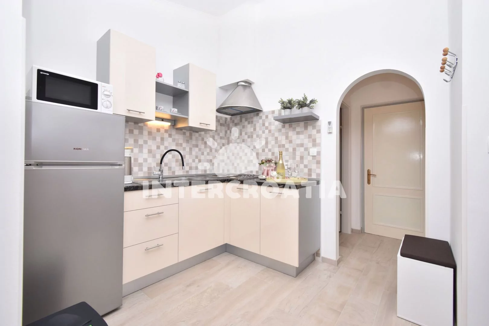 Apartmánový dům se zahradou se nachází v krátké vzdálenosti od moře a pláže. Dům nabízí ubytování ve 4 klimatizovaných apartmánech s lodžiemi a venkovním posezením. K dispozici je společná zahrada s terasou a grilem. Parkovací místa pro automobily ve dvoře domu.