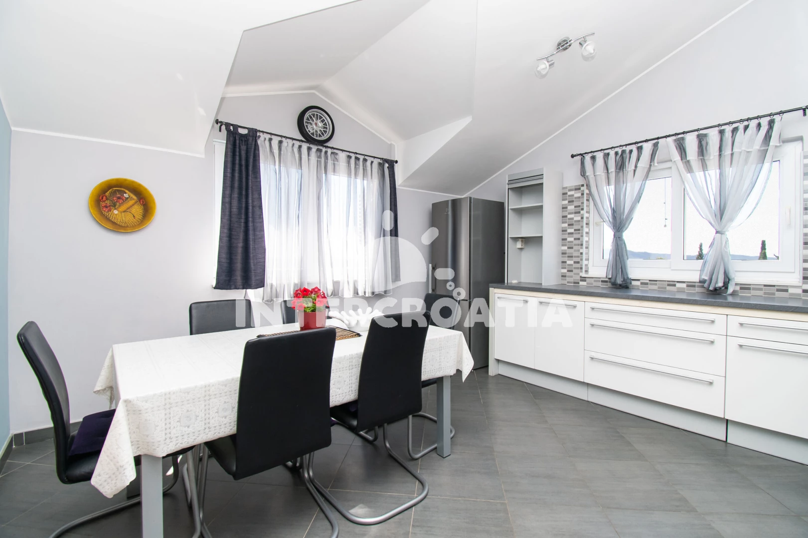 Prostorný apartmán (120 m2) s terasou, částečným výhledem na moře a venkovním posezením se nachází ve 2. patře domu. Apartmán má 2 ložnice, 2 koupelny a je vhodný pro 4 až 6 osob. Obývací pokoj je…