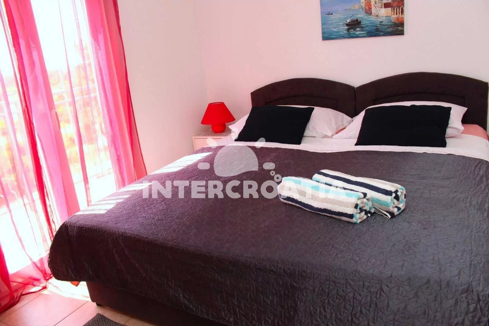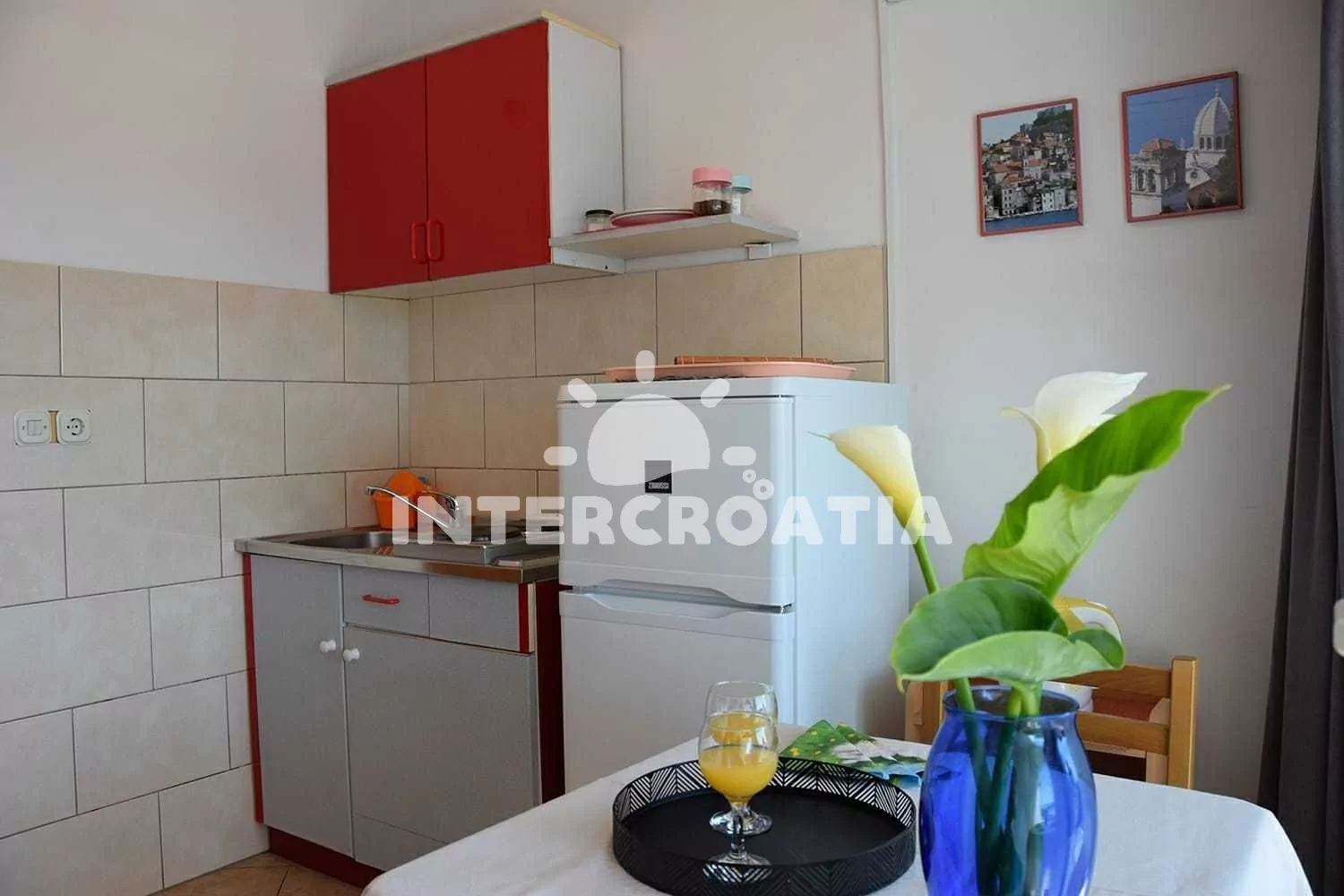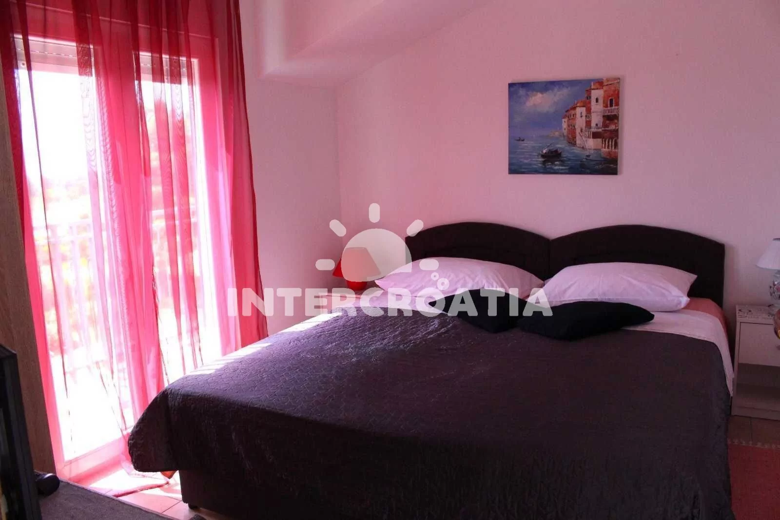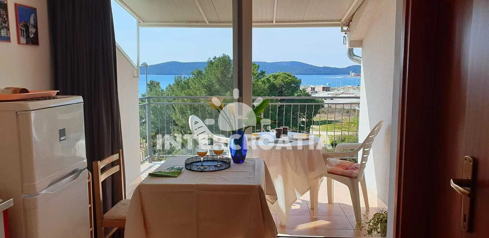 Vzdálenosti: Moře a oblázková pláž Rezalište 100 m, supermarket 200 m, restaurace 500 m, centrum 900 m, bar 100 m, ambulance 300 m, lékárna 1 km, veřejná doprava 50 m, park Plitvice 16 km, trajekt 3 km (Šibenik), letiště 70 km (Split).