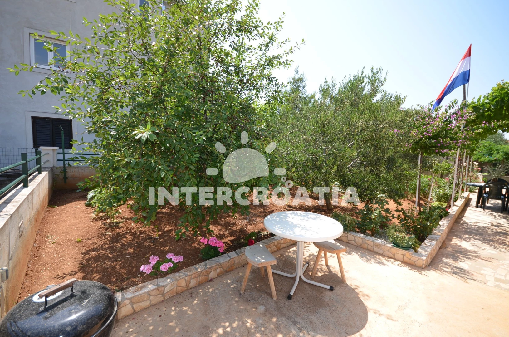 Apartmán se nachází 400 m od moře a pláže. Pláž je oblázková a betonové desky. Apartmán disponuje bazénem s lehátky pro ubytované hosty. U objektu je k dispozici společná zahrada s posezením a grilem.