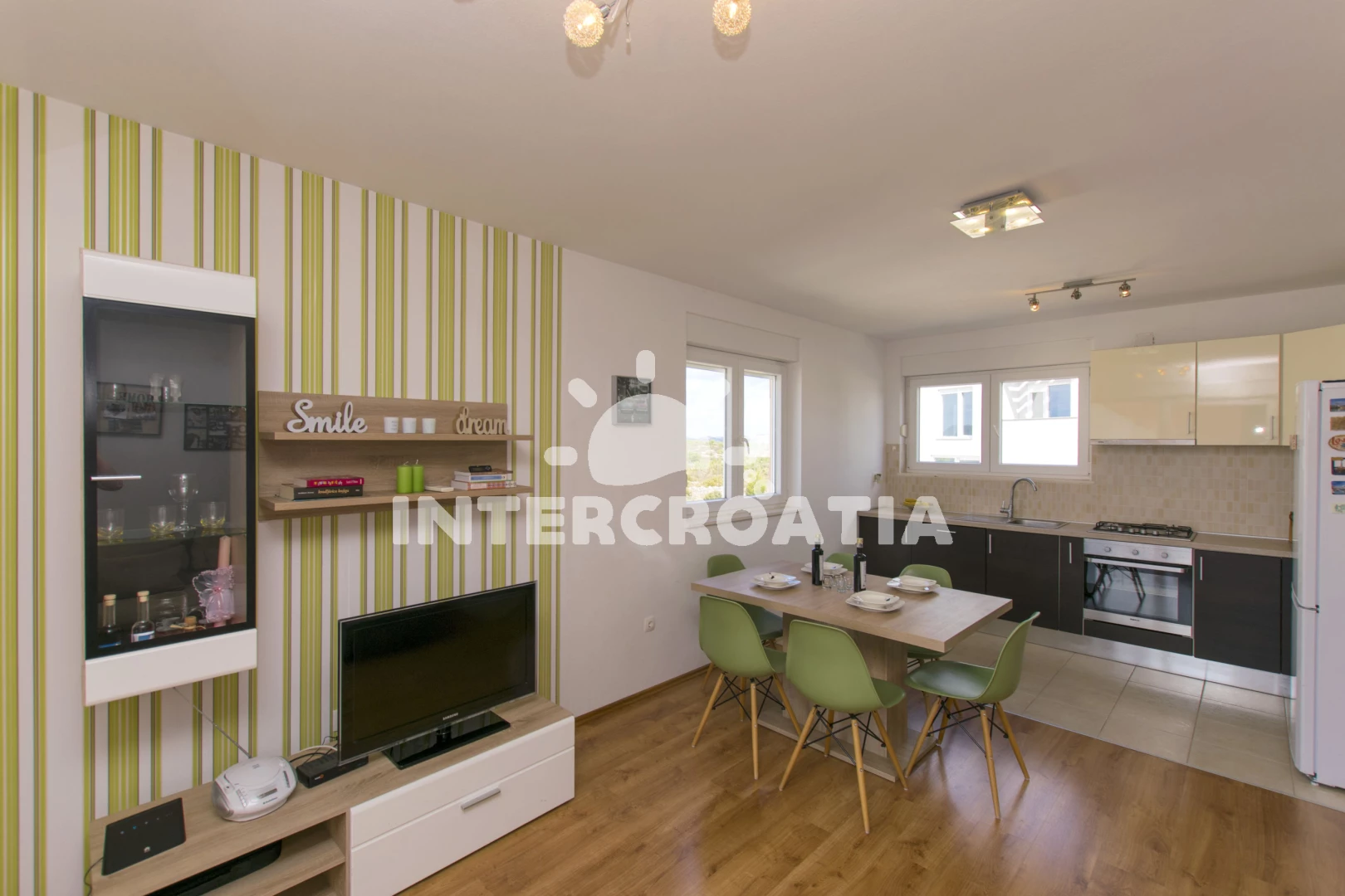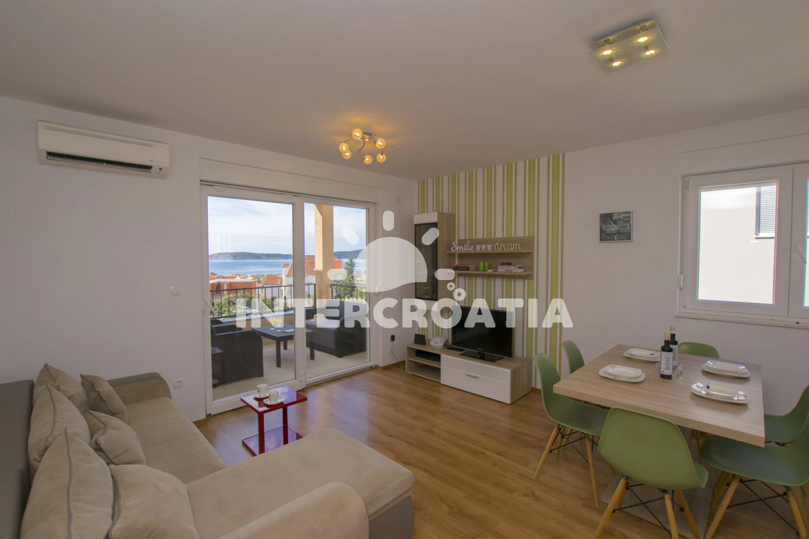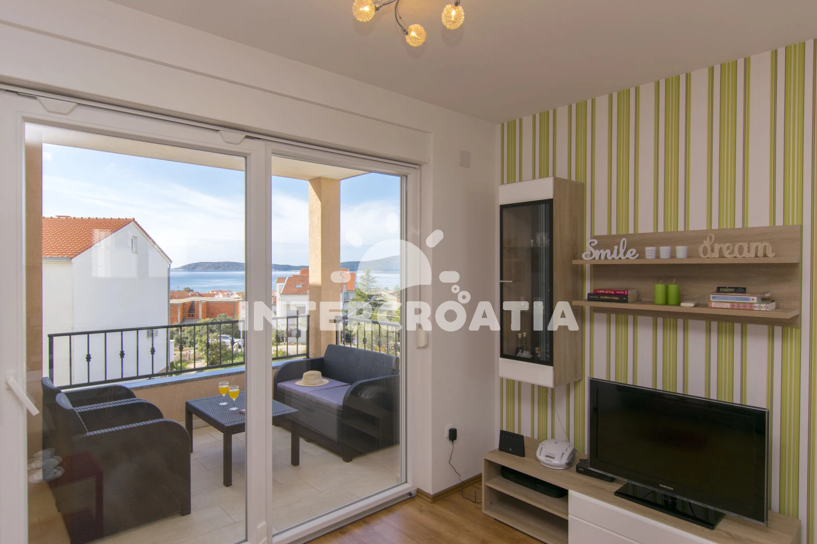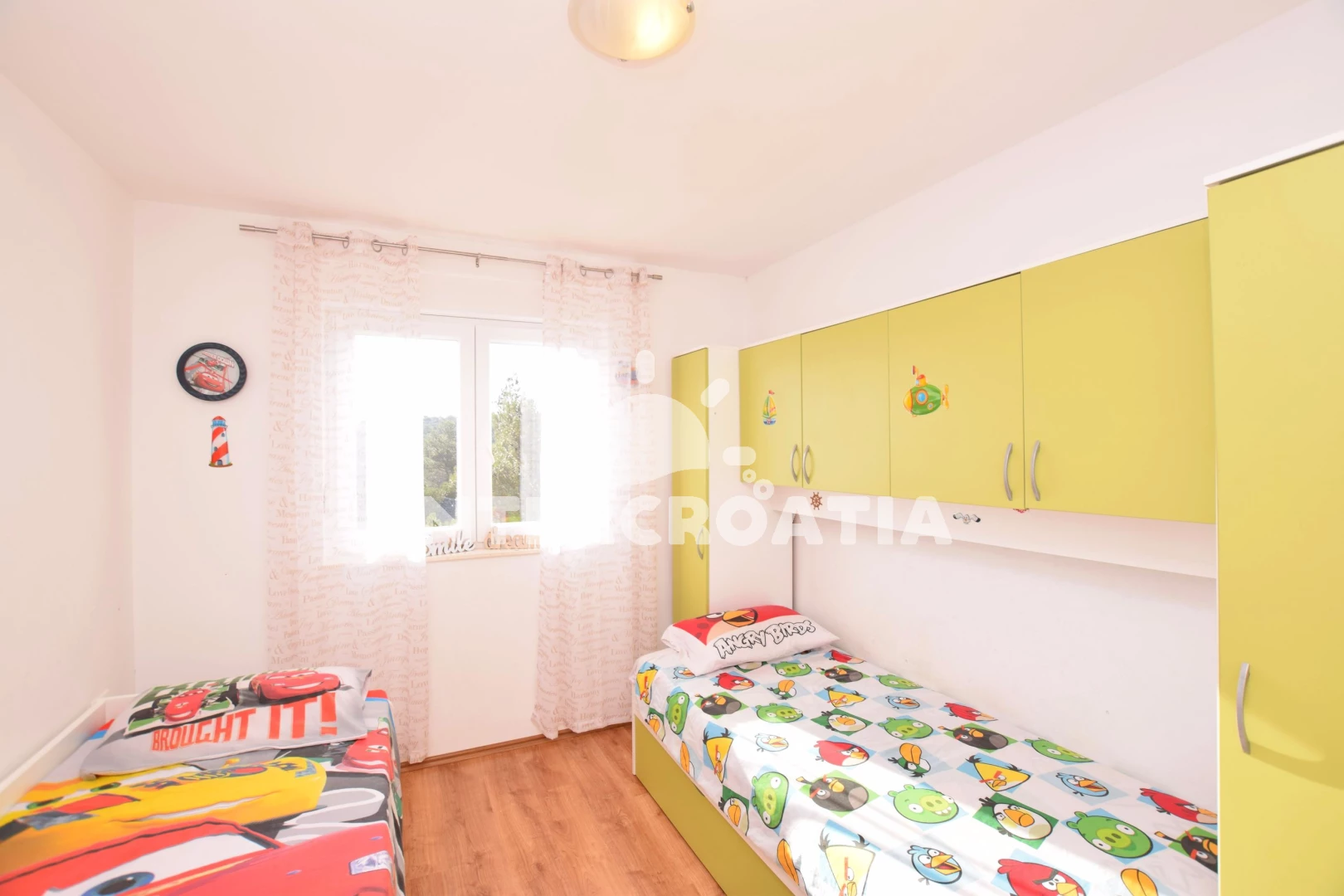 Apartmán (60 m2) s terasou, a výhledem na moře. Nachází se v 1. patře objektu. Apartmán má 2 ložnice a je vhodný pro až 4 osoby. Kuchyňská linka je vybavena varnou deskou, troubou, myčkou na nádobí,…