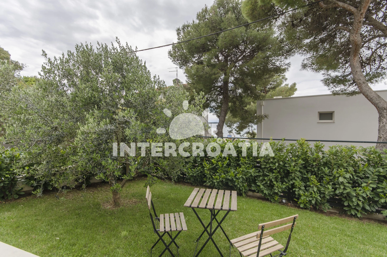 Apartmán se nachází 50 m od moře a pláže. Pláž je oblázková a betonové desky. U objektu je k dispozici společná zahrada s posezením a grilem. Parkování je před domem.