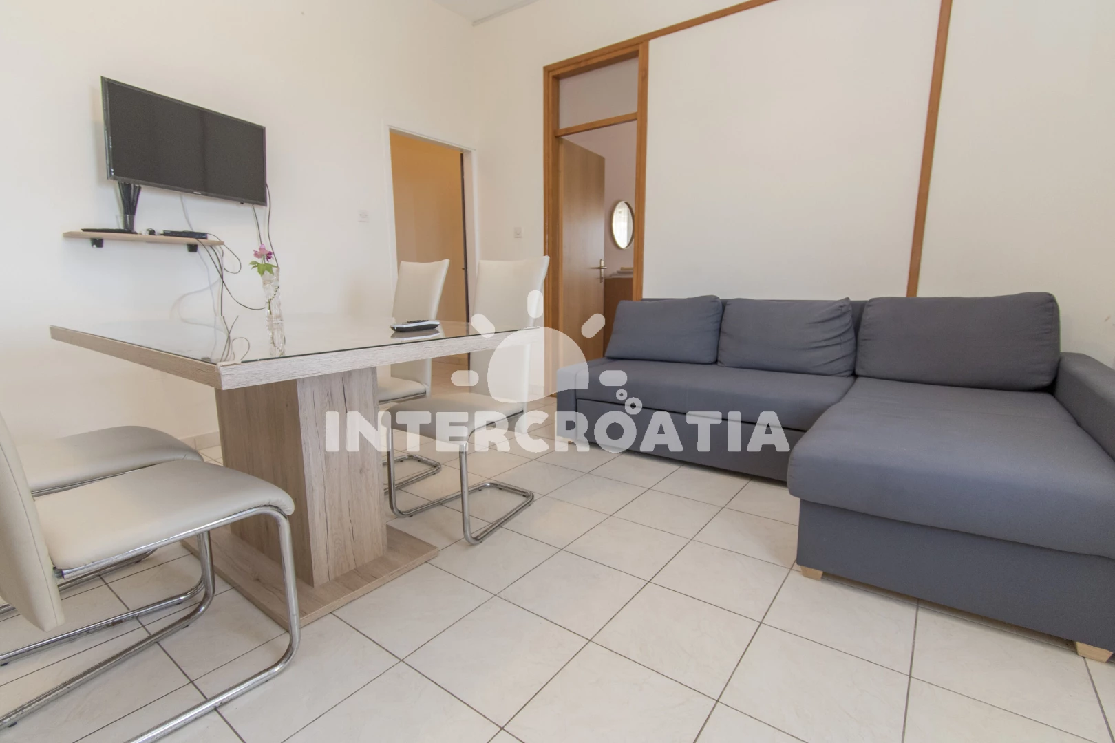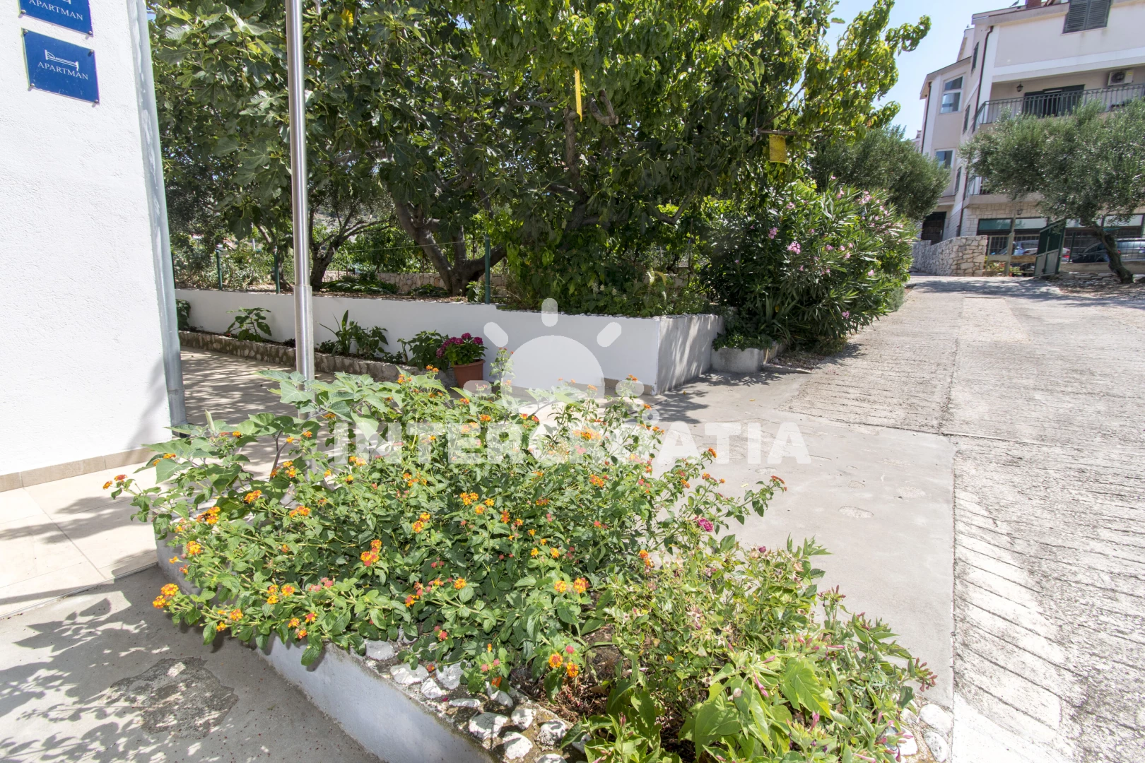 Apartmán se nachází 130 m od moře a pláže. Pláž je skalnatá, oblázková a betonové desky. U objektu je k dispozici společná zahrada s posezením a grilem. Parkování je před domem.