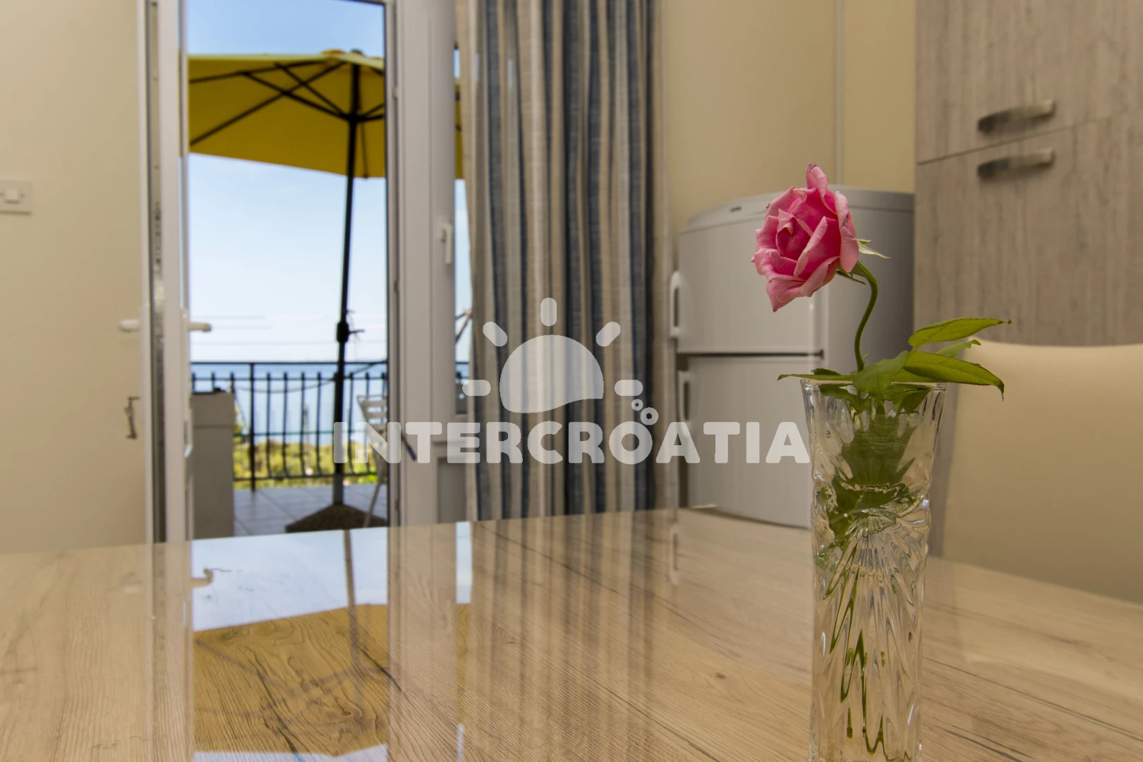 Apartmán (60 m2) s terasou, a výhledem na moře. Nachází se v přízemí objektu. Apartmán má 1 ložnici a je vhodný pro až 2 osoby. Kuchyňská linka je vybavena varnou deskou, troubou, myčkou na nádobí,…