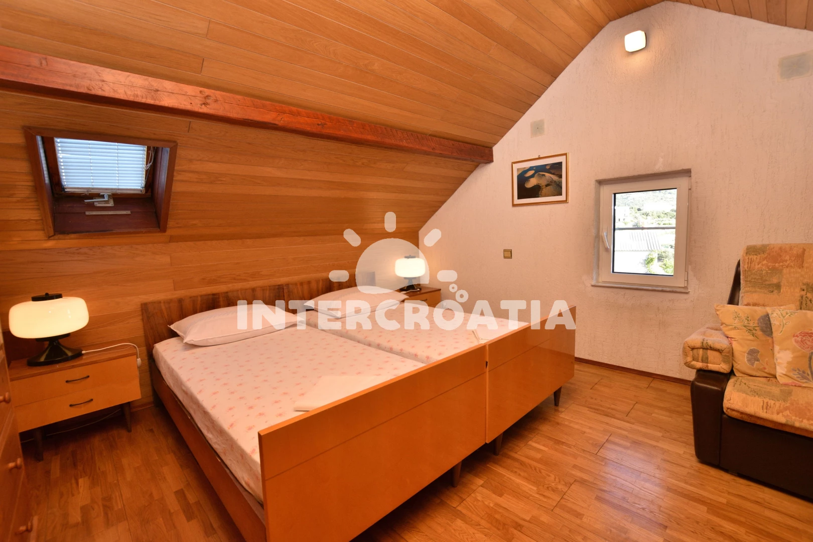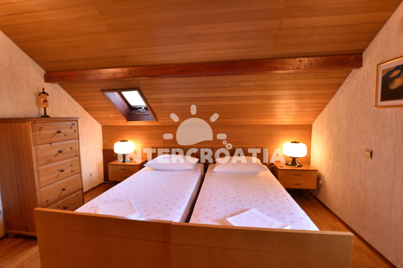 Apartmán (41 m2) s balkonem, a výhledem na moře. Nachází se v podkroví objektu. Apartmán má 2 ložnice a je vhodný pro až 5 osob. Kuchyňská linka je vybavena varnou deskou, mikrovlnnou troubou,…