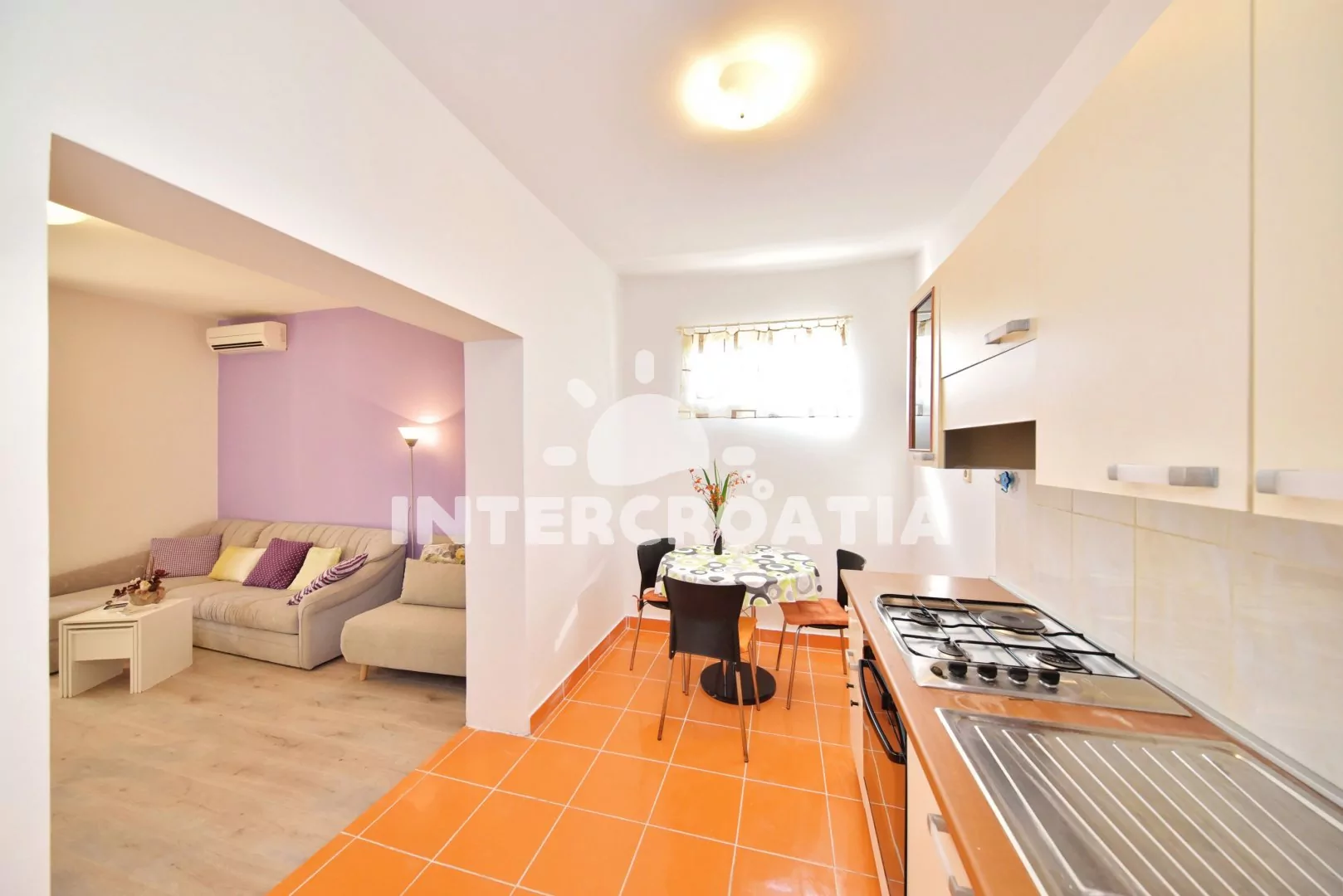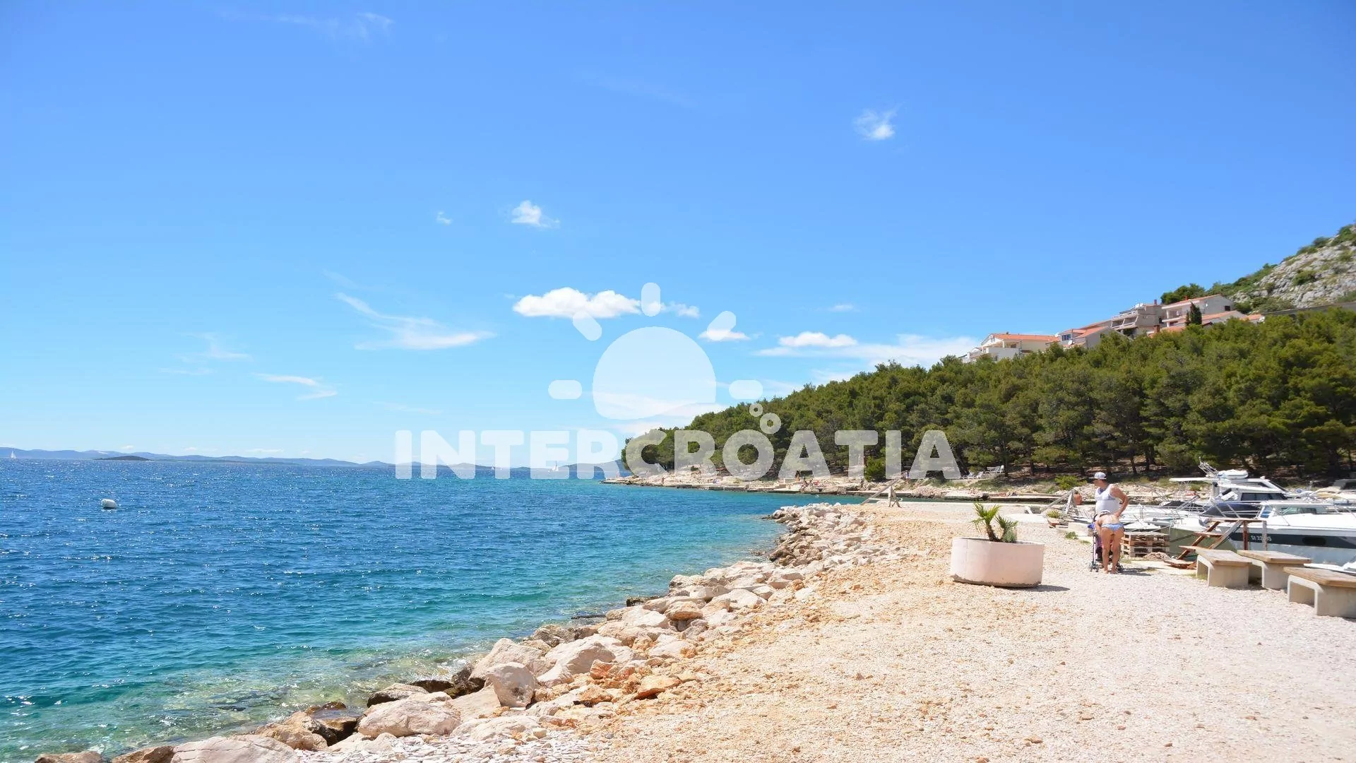Vzdálenosti: Moře a písčitá-oblázková pláž 400 m, centrum, supermarket 300 m, bar 600 m, restaurace 750 m, čerpací stanice 3,6 km, lékárna 4,1 km, trajekt 10,9 km, letiště 36 km.