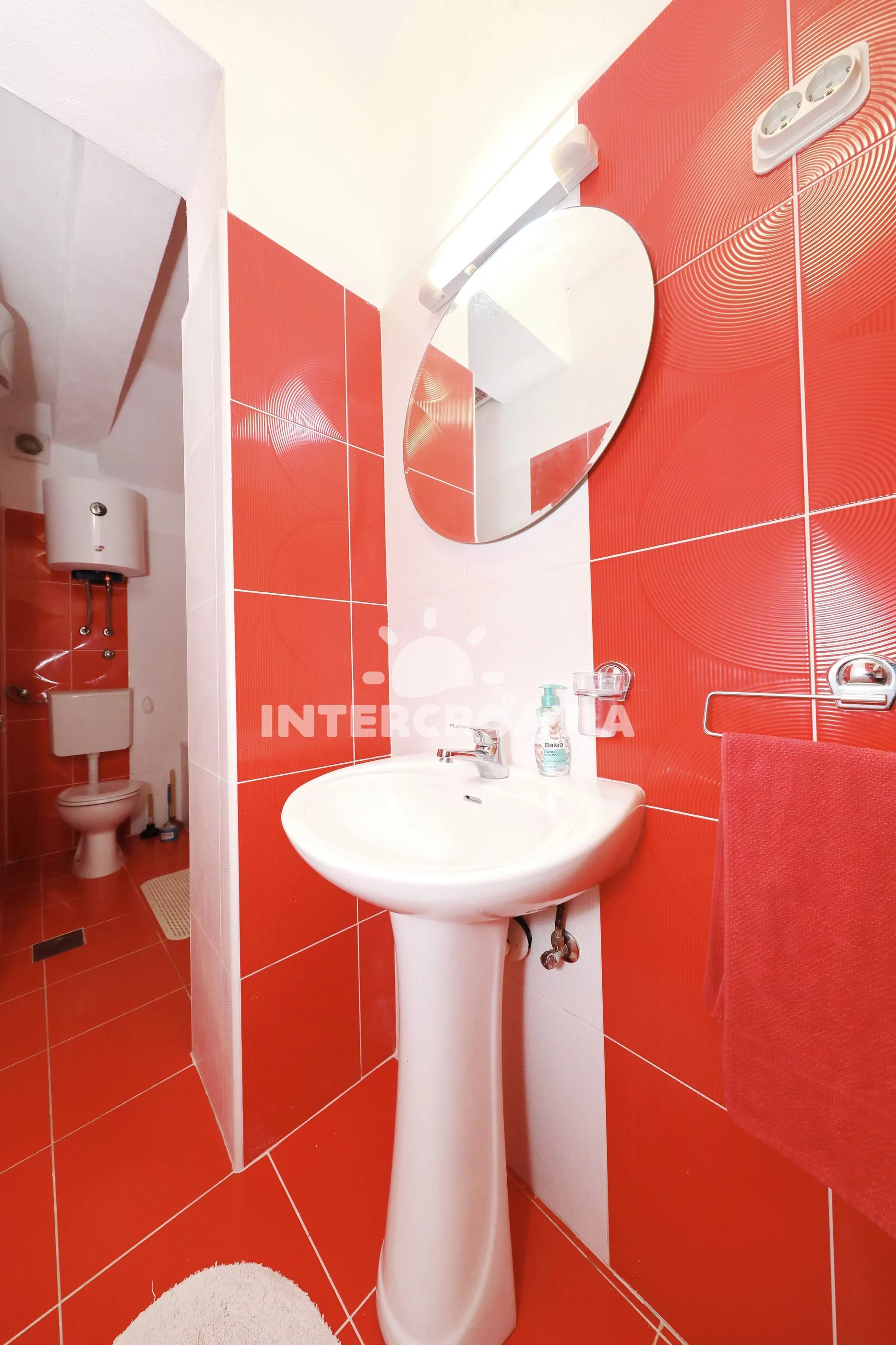 Apartmán (60 m2) se nachází v 1. patře domu a je vhodný pro 2 až 4 osoby. Obývací pokoj je spojený s kuchyní. Kuchyňská linka je vybavena varnou deskou, digestoří, troubou, nádobím a lednicí s mrazákem. Obývací pokoj s jídelním stolem, rohovou pohovkou (rozložitelná na extra lůžko pro 2 osoby), televizí se satelitním programem, klimatizací a vstupem na balkon. Ložnice s dvoulůžkem. První koupelna s vanou, umyvadlem a wc. Druhá koupelna se sprchovým koutem, umyvadlem a wc. Hostům je k dispozici parkování u objektu zdarma.