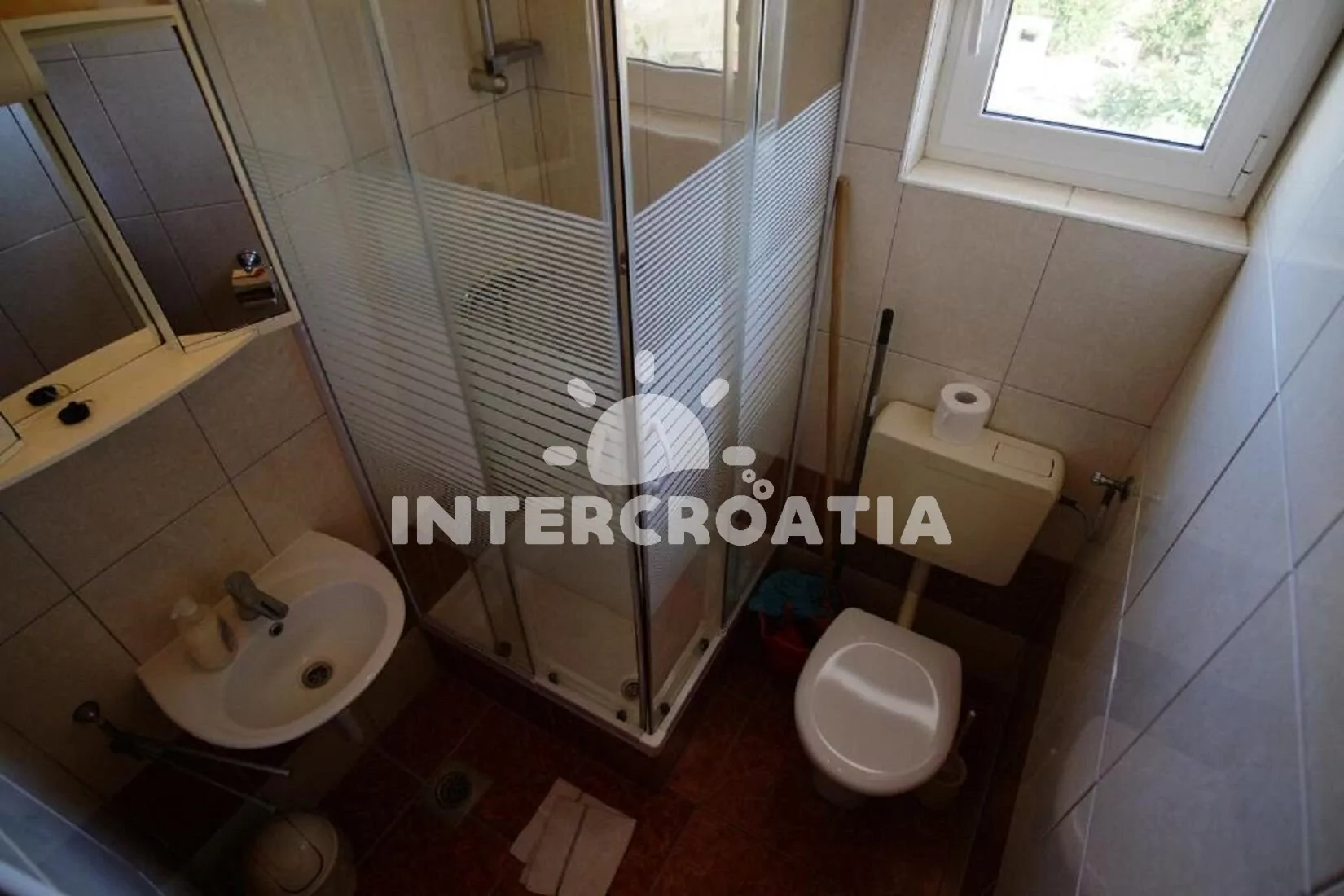 Vzdálenosti: Moře a oblázková-betonová pláž 140 m, velká oblázková pláž Porat 600 m, restaurace a supermarket 100 m, centrum 300 m, bar a lékárna 200 m, ambulance 300 m, pošta 500 m, přístav 100 m, diskotéka 1 km, čerpací stanice 3 km, půjčovna cyklistických kol 10 km, banka 3 km, park Plitvice 20 km, trajekt (Biograd) 10 km, letiště (Zadar) 30 km.