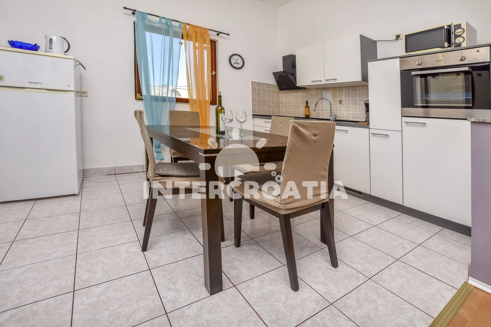 Vzdálenosti: Moře 150 m, pláž 100 m (oblázková a betonové desky), restaurace 50 m, supermarket 100 m, marina 100 m, lékárna 200 m, centrum 200 m, bar 200 m, veřejná doprava 200 m, diskotéka 500 m, pošta 5 km, banka 5 km, čerpací stanice 5 km, ambulance 7 km, trajekt (Biograd) 7 km, letiště (Zadar) 30 km,
