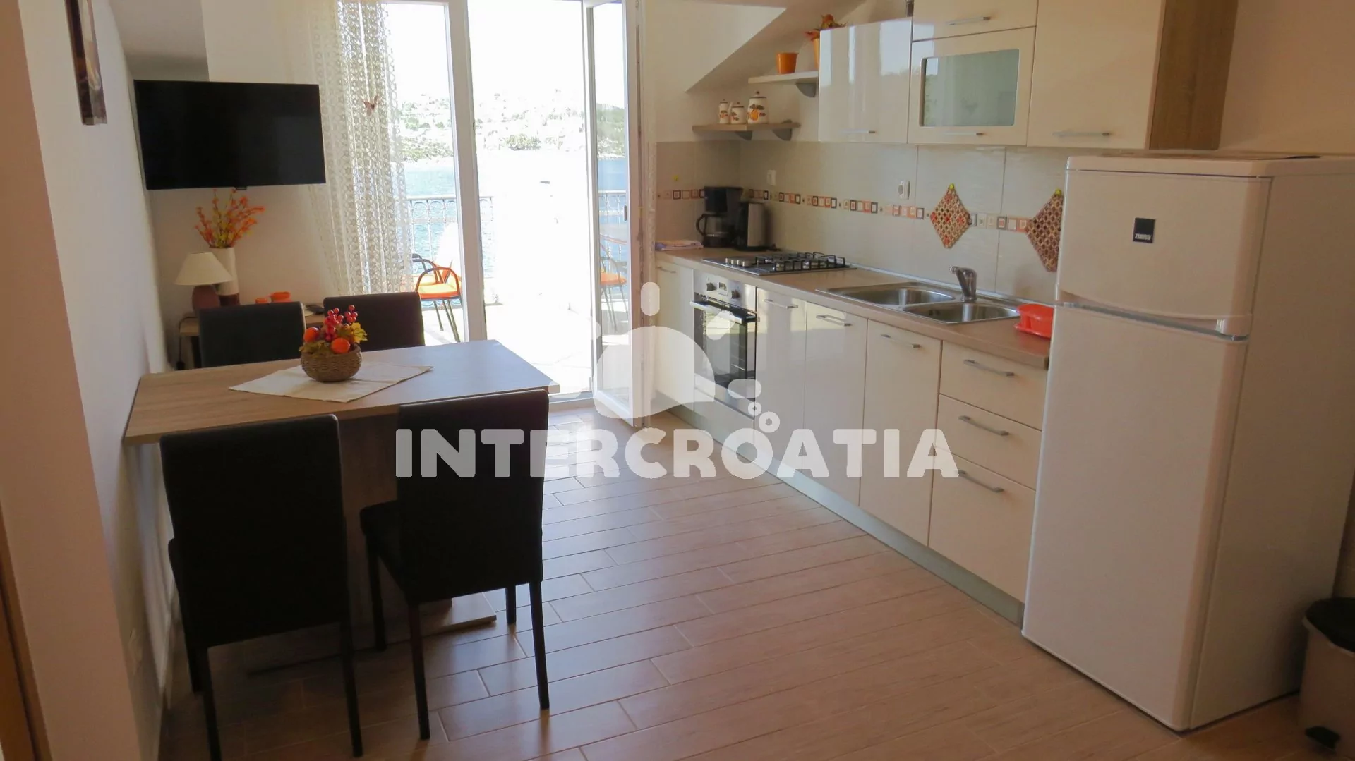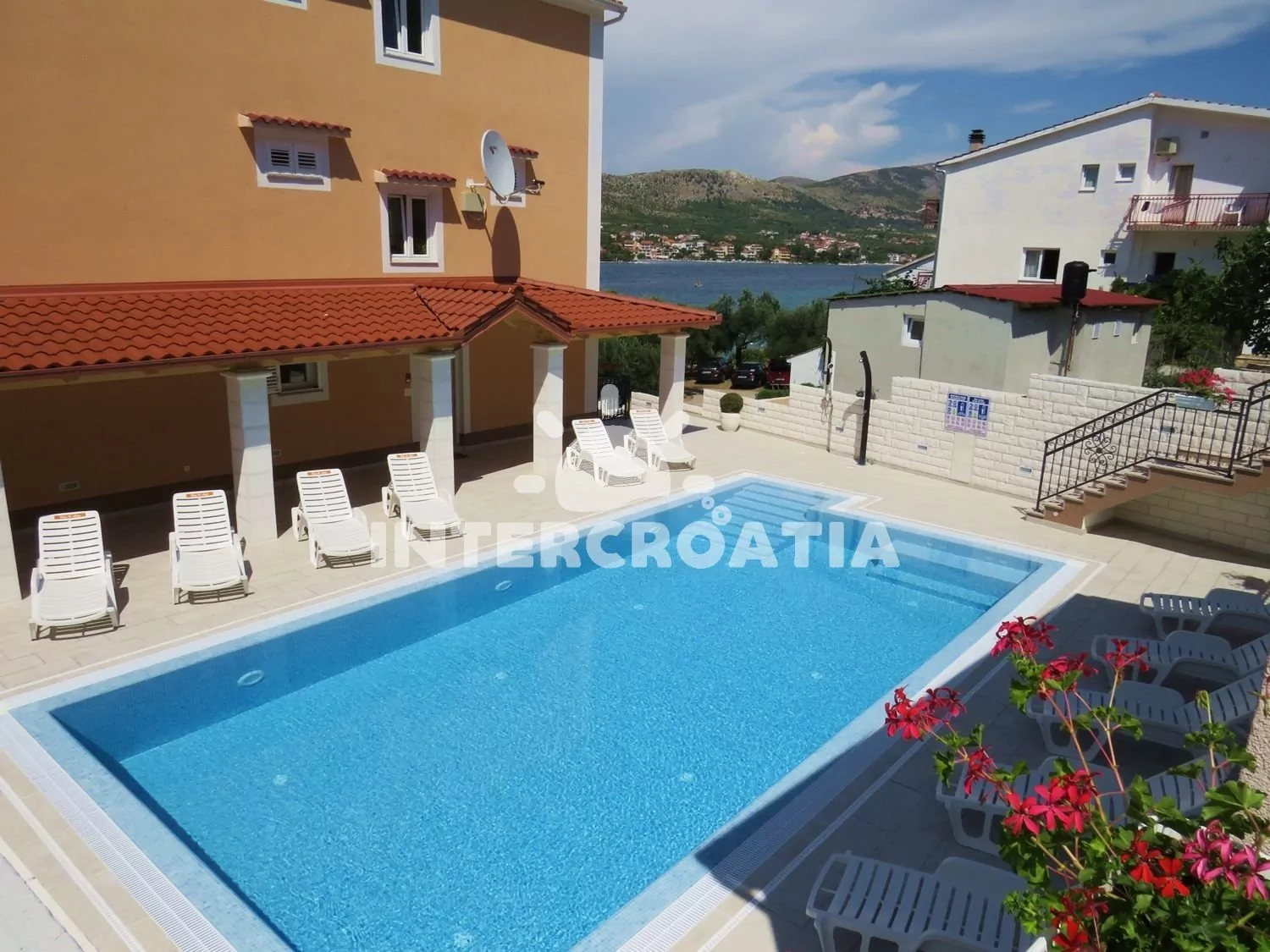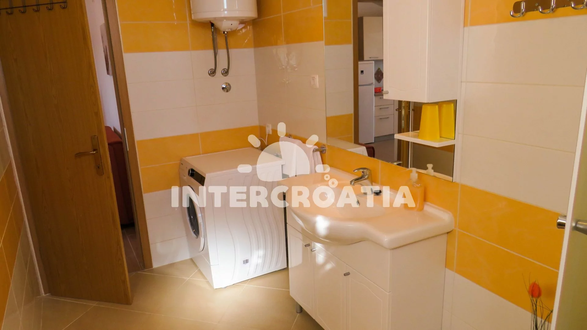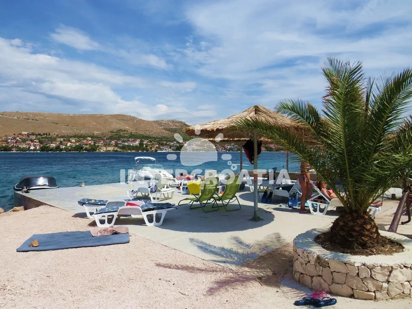 Vzdálenosti: Moře 10 m, pláž (písčitá a betonové desky) 10 m, centrum 50 m, obchod 2000 m, restaurace 600 m, pošta 3000 m, zdravotní středisko 3000 m, lékárna 10 km, bar 100 m, směnárna 10 km, banka 10 km, muzeum 15 km, půjčovna motorových člunů 2000 m, kotviště pro čluny 10 m, venkovní bazén 1 m, tenisové kurty 10 km, čerpací stanice 10 km, veřejná doprava 300 m, národní park Krka 27 km, přístav 1000 m, trajekt 15 km (Šibenik), letiště 50 km (Split).