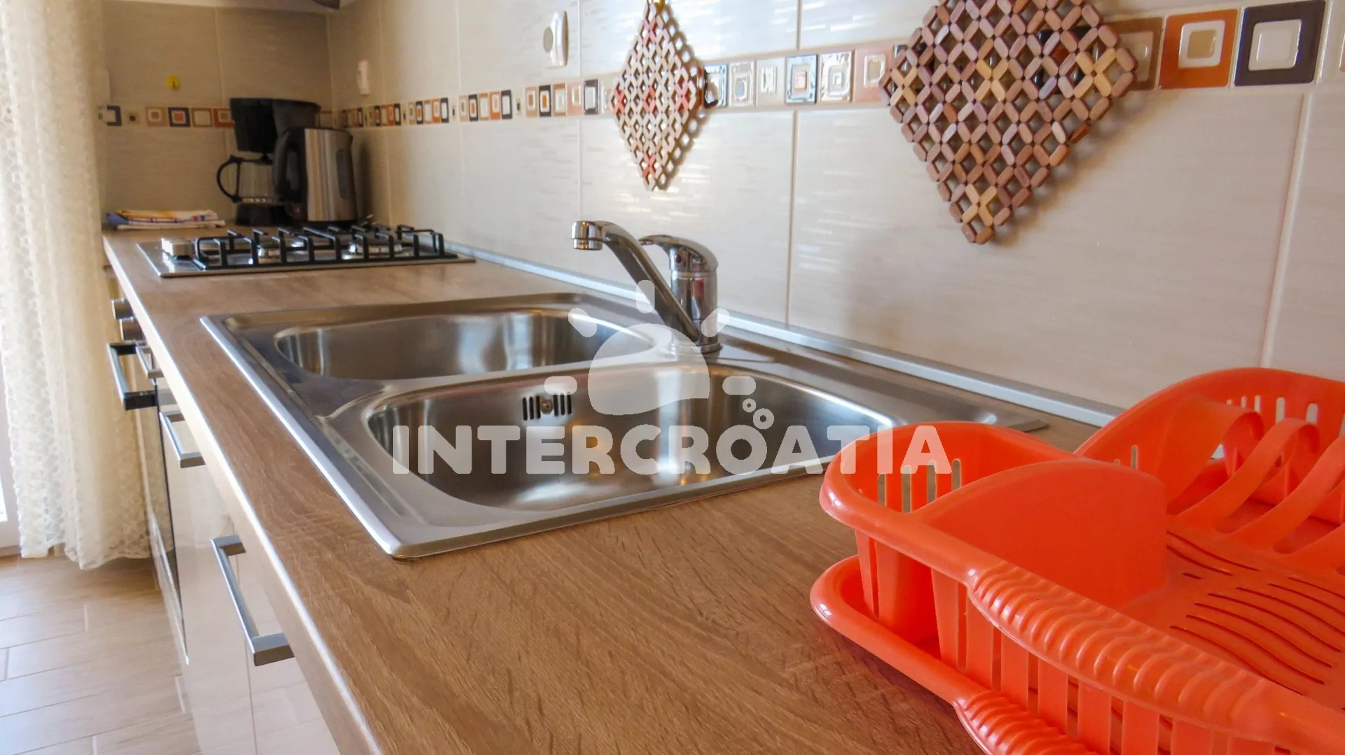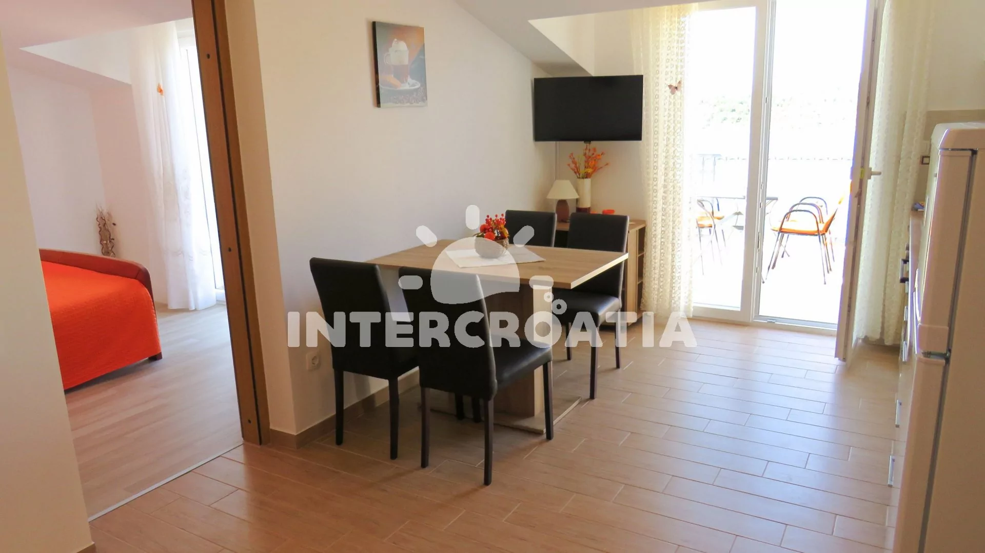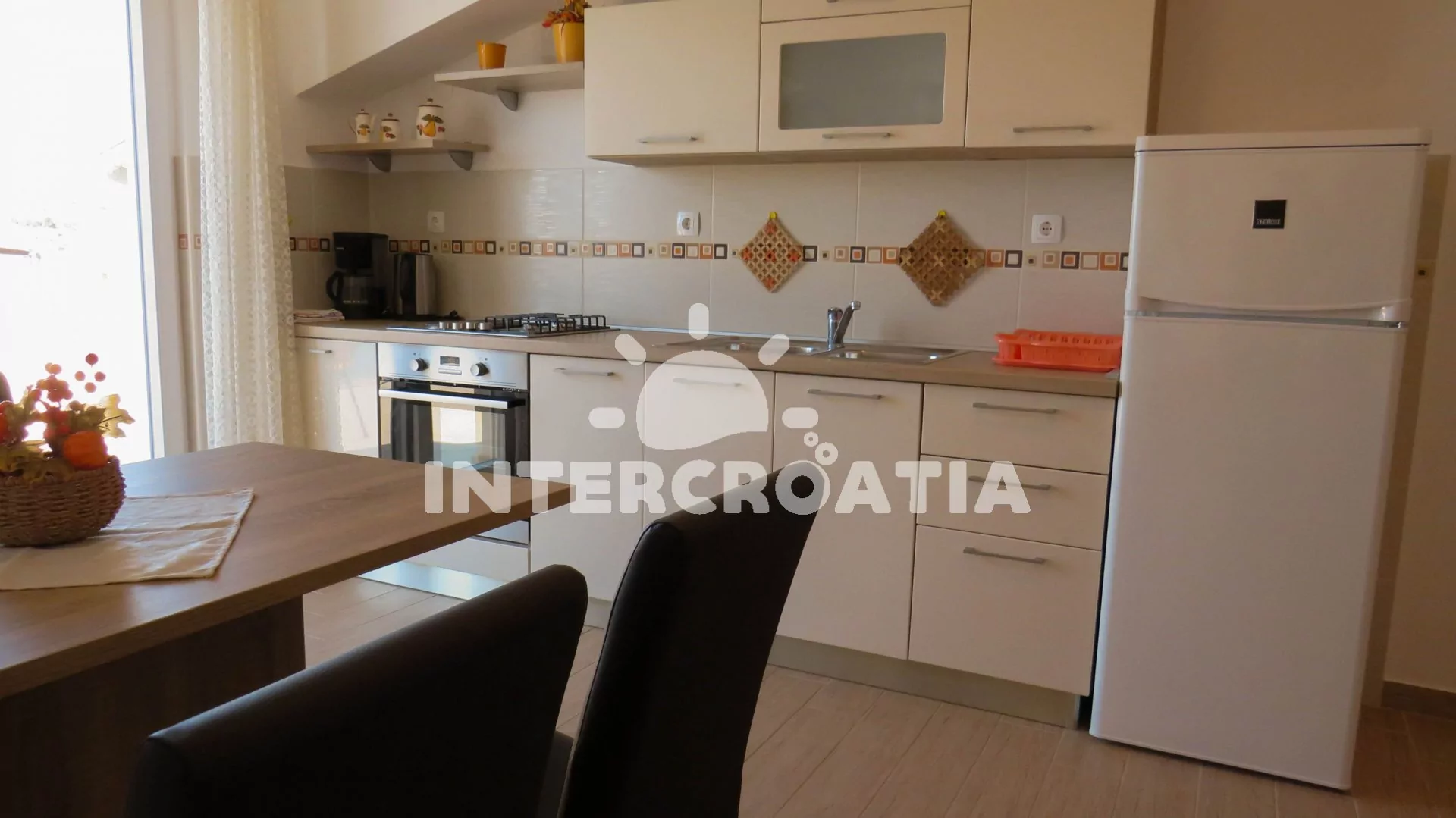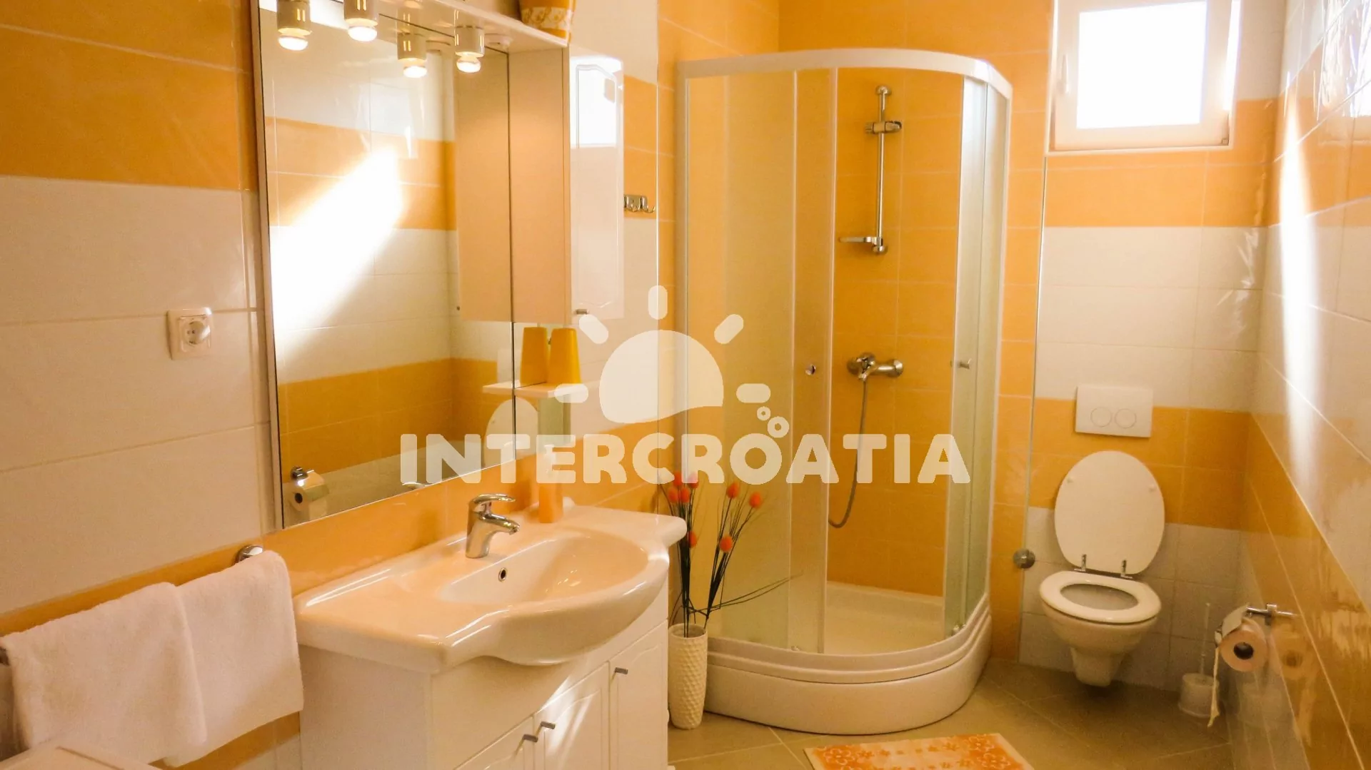 Vzdálenosti: Moře 10 m, pláž (písčitá a betonové desky) 10 m, centrum 50 m, obchod 2000 m, restaurace 600 m, pošta 3000 m, zdravotní středisko 3000 m, lékárna 10 km, bar 100 m, směnárna 10 km, banka 10 km, muzeum 15 km, půjčovna motorových člunů 2000 m, kotviště pro čluny 10 m, venkovní bazén 1 m, tenisové kurty 10 km, čerpací stanice 10 km, veřejná doprava 300 m, národní park Krka 27 km, přístav 1000 m, trajekt 15 km (Šibenik), letiště 50 km (Split).