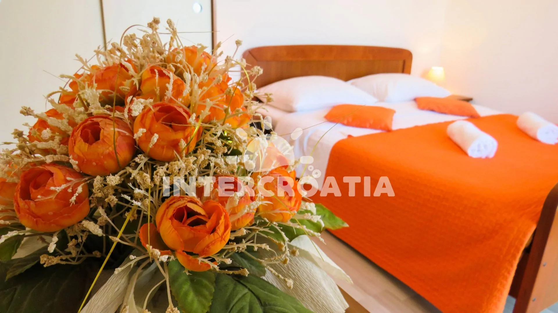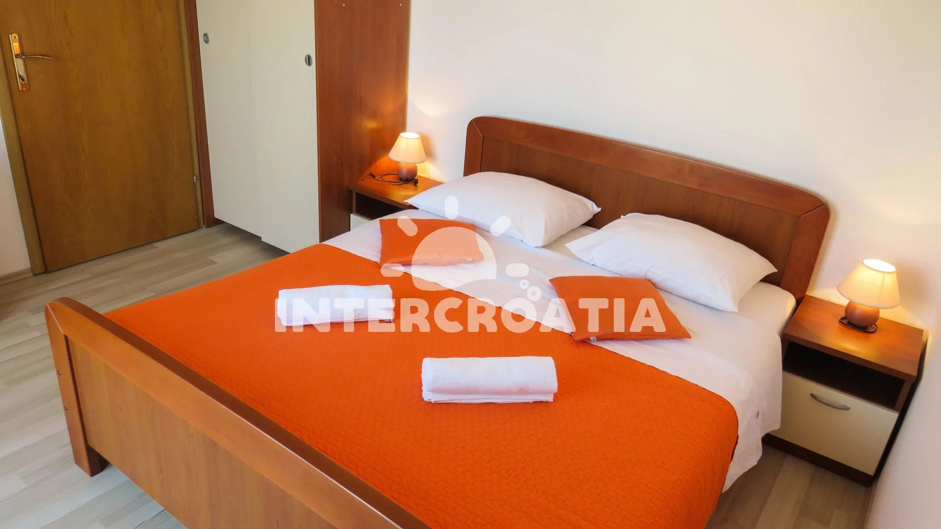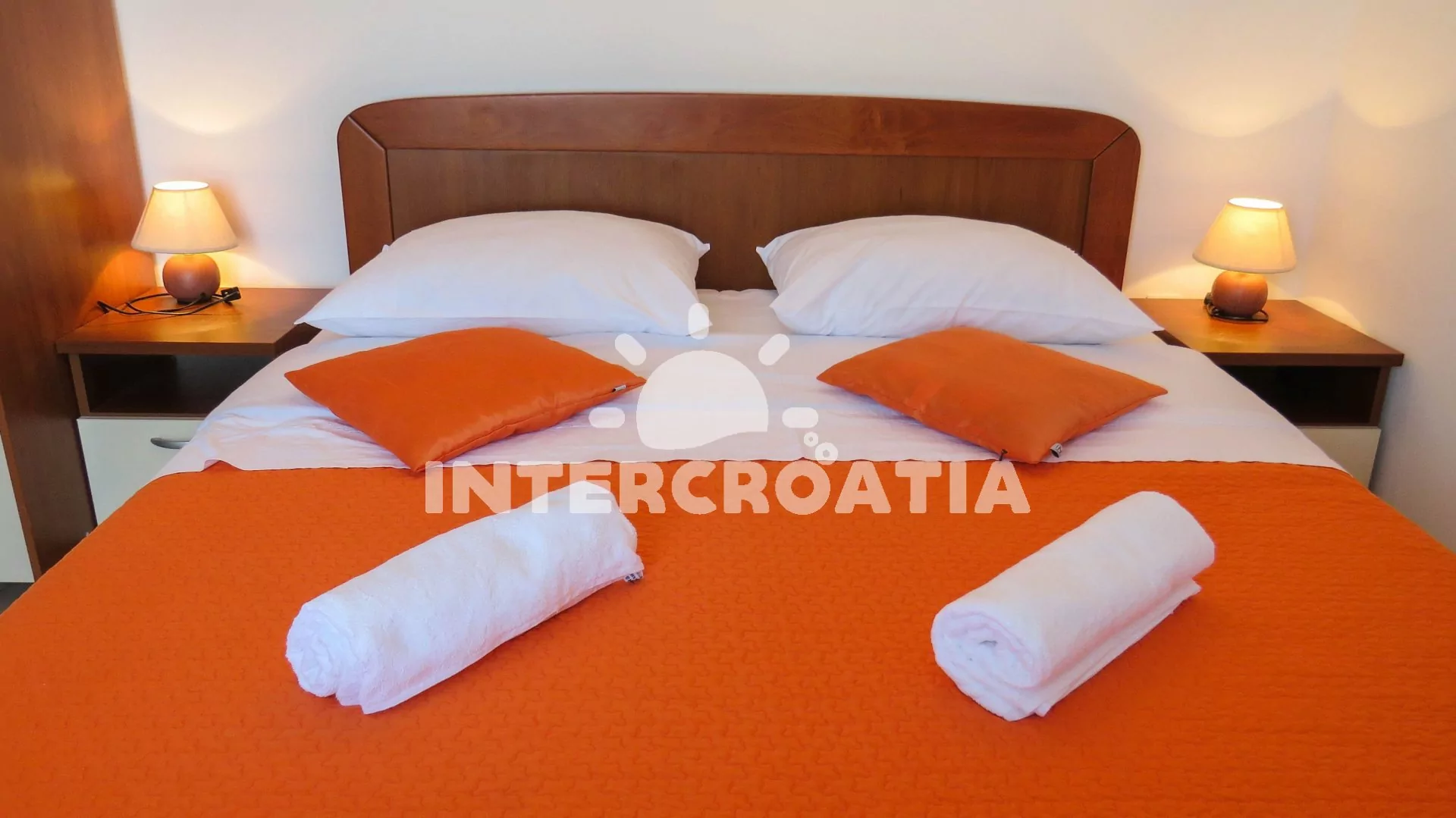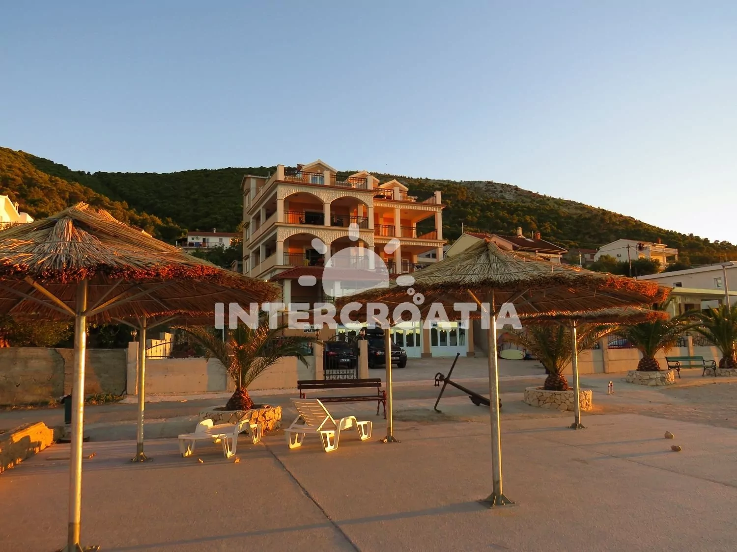 Podkrovní apartmán s terasou a výhledem na moře je vhodný pro 2 osoby. Kuchyň je vybavena jídelním stolem pro 4 osoby, kuchyňskou linkou se sporákem, horkovzdušnou troubou, kávovarem, rychlovarnou konvicí, nádobím a chladničkou s mrazákem. Dále televizí se satelitním programem, pohovkou, klimatizací a vstupem na balkon. Ložnice s jedním dvoulůžkem, šatní skříní a sejfem. Koupelna se sprchovým koutem, umyvadlem, pračkou a wc. Hostům je k dispozici parkování u objektu zdarma.