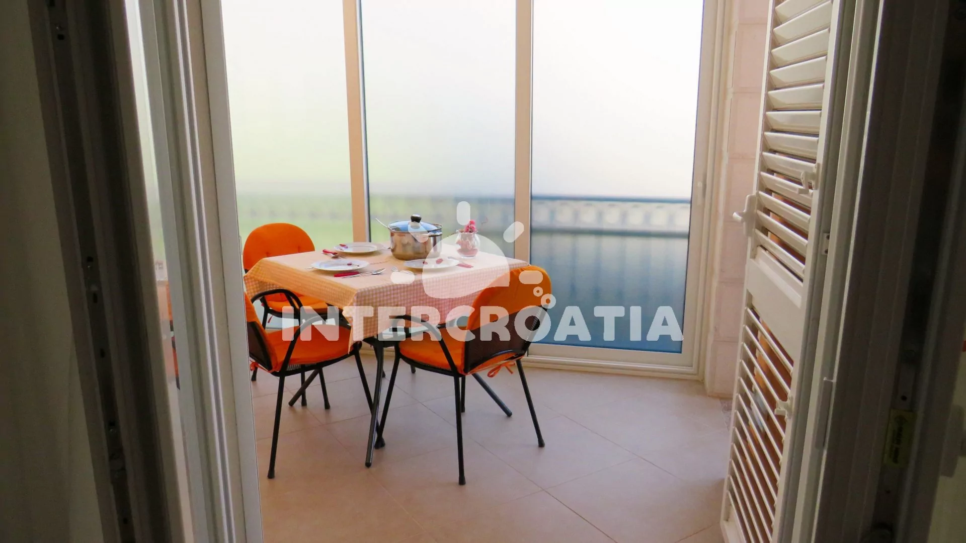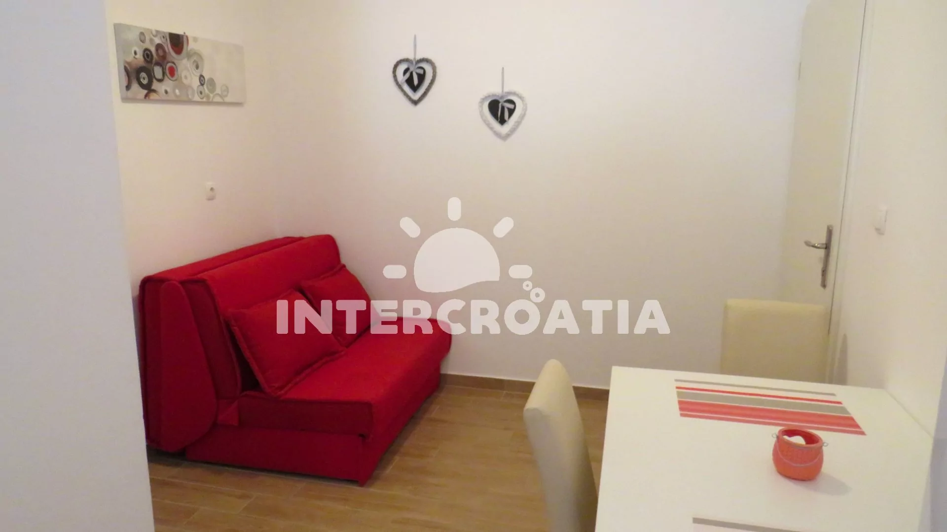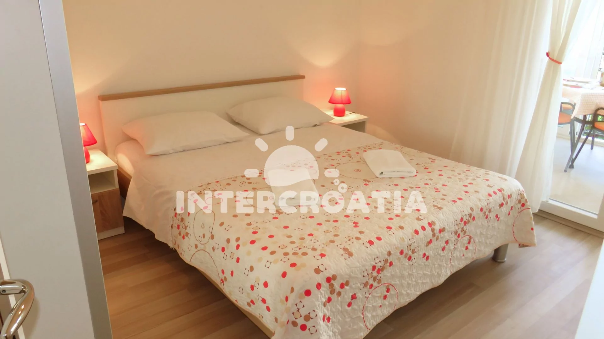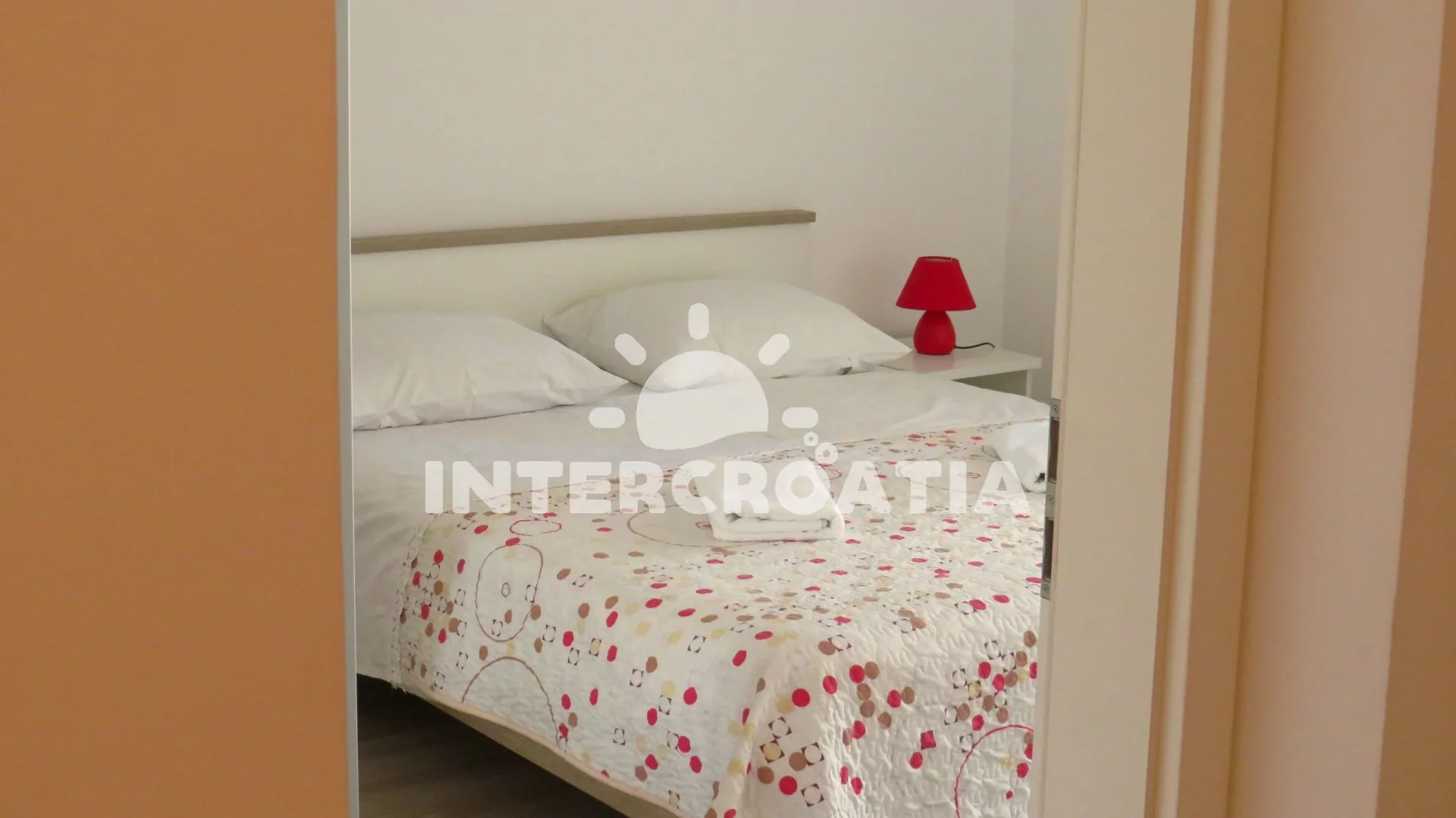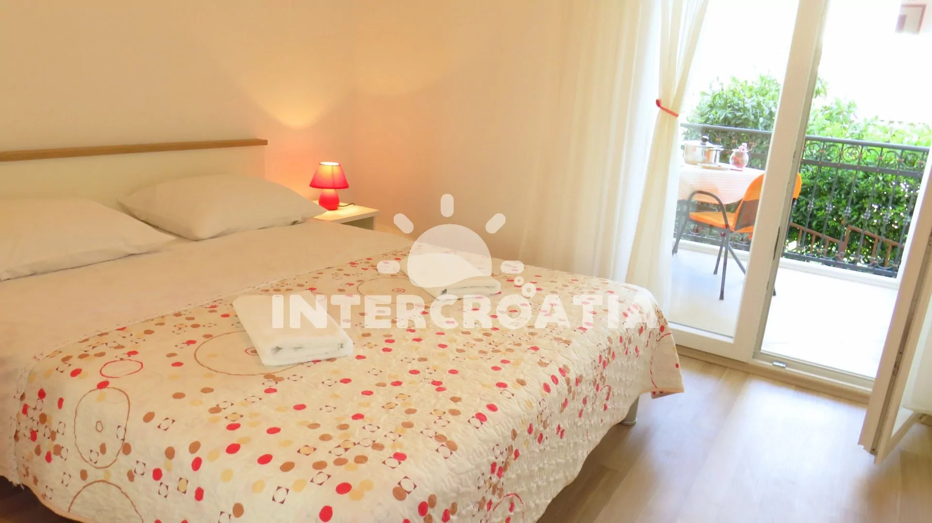 Apartmán s balkonem a výhledem na moře je vhodný pro 2 osoby. Nachází se v prvním patře vily. Kuchyň je vybavena jídelním stolem pro 3 osoby, kuchyňskou linkou se sporákem, horkovzdušnou troubou, kávovarem, rychlovarnou konvicí, nádobím a chladničkou s mrazákem. Dále televizí se satelitním programem, pohovkou a klimatizací. Ložnice s jedním dvoulůžkem, šatní skříní, sejfem a vstupem na balkon. Koupelna se sprchovým koutem, umyvadlem, pračkou a wc. Hostům je k dispozici parkování u objektu zdarma.