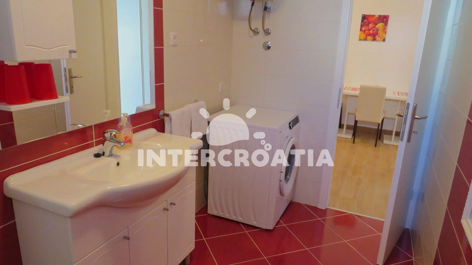 Apartmán s balkonem a výhledem na moře je vhodný pro 2 osoby. Nachází se v prvním patře vily. Kuchyň je vybavena jídelním stolem pro 3 osoby, kuchyňskou linkou se sporákem, horkovzdušnou troubou,…