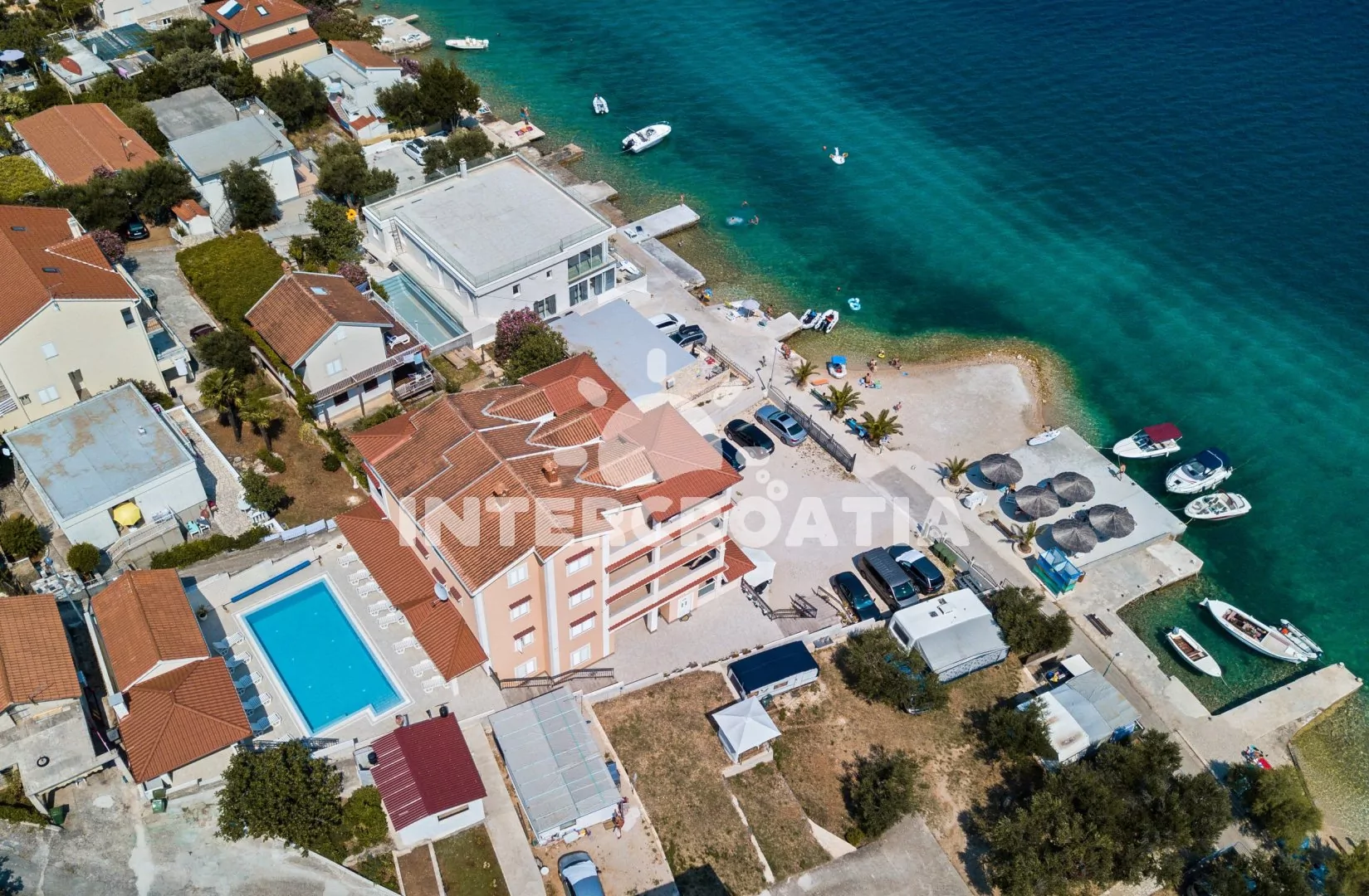 Vzdálenosti: Moře 10 m, pláž (písčitá a betonové desky) 10 m, centrum 50 m, obchod 2000 m, restaurace 600 m, pošta 3000 m, zdravotní středisko 3000 m, lékárna 10 km, bar 100 m, směnárna 10 km, banka 10 km, muzeum 15 km, půjčovna motorových člunů 2000 m, kotviště pro čluny 10 m, venkovní bazén 1 m, tenisové kurty 10 km, čerpací stanice 10 km, veřejná doprava 300 m, národní park Krka 27 km, přístav 1000 m, trajekt 15 km (Šibenik), letiště 50 km (Split).