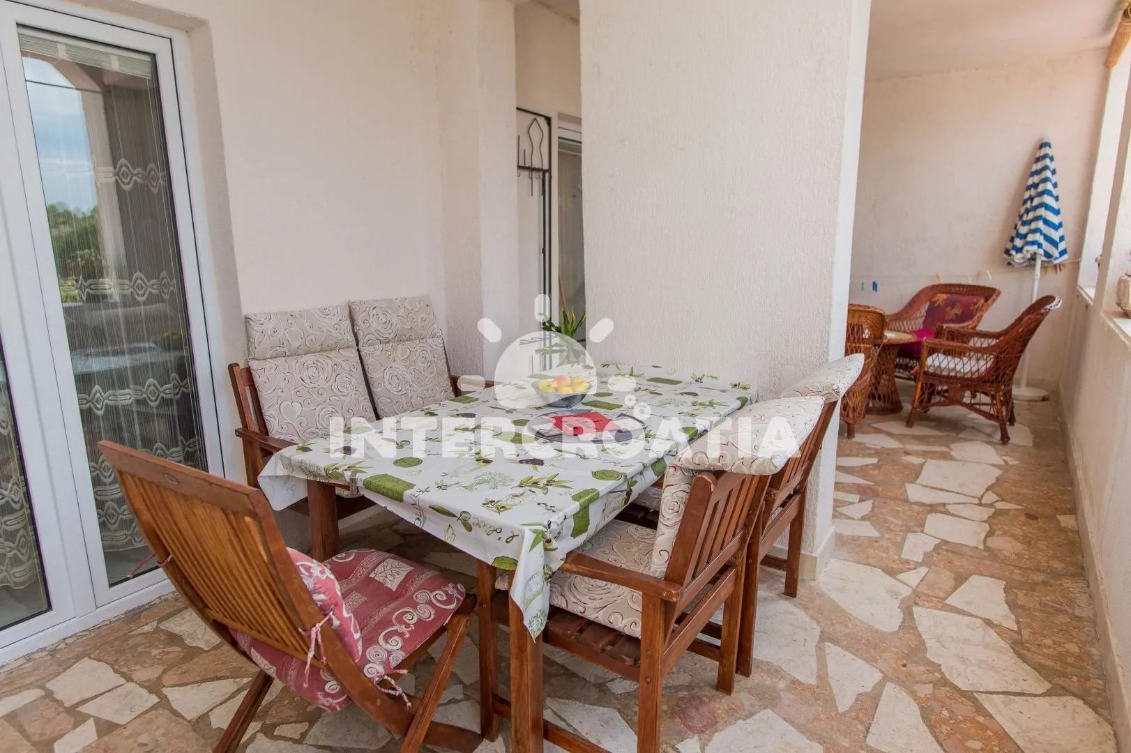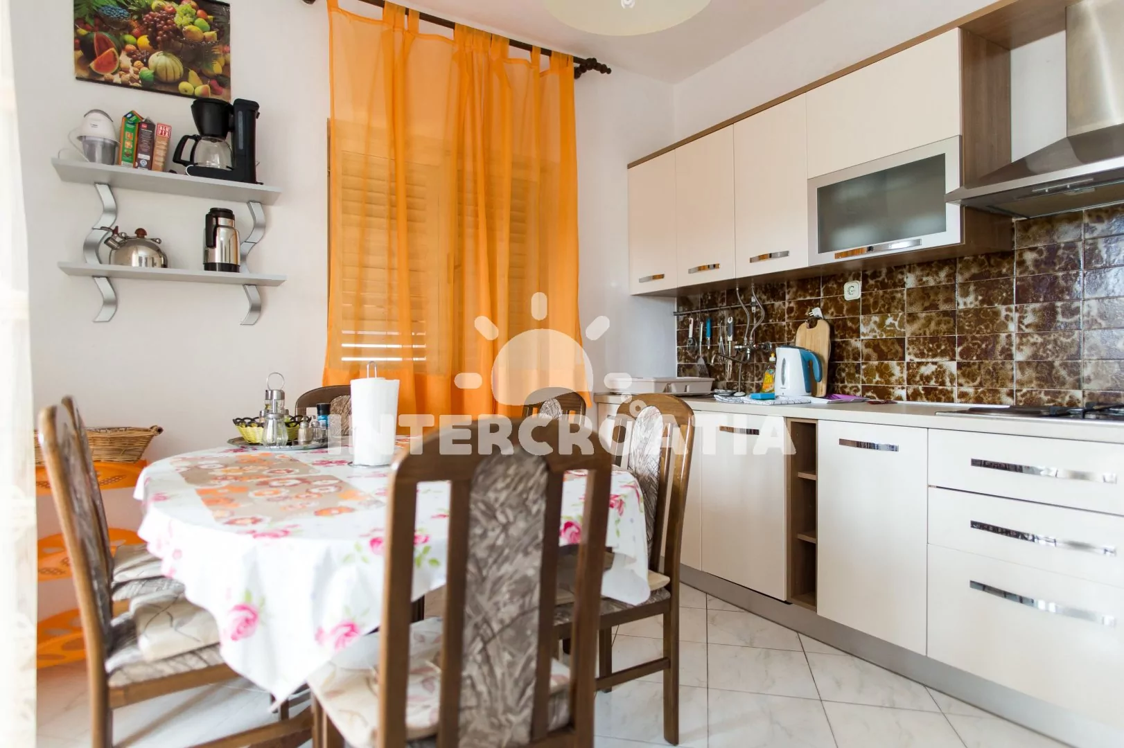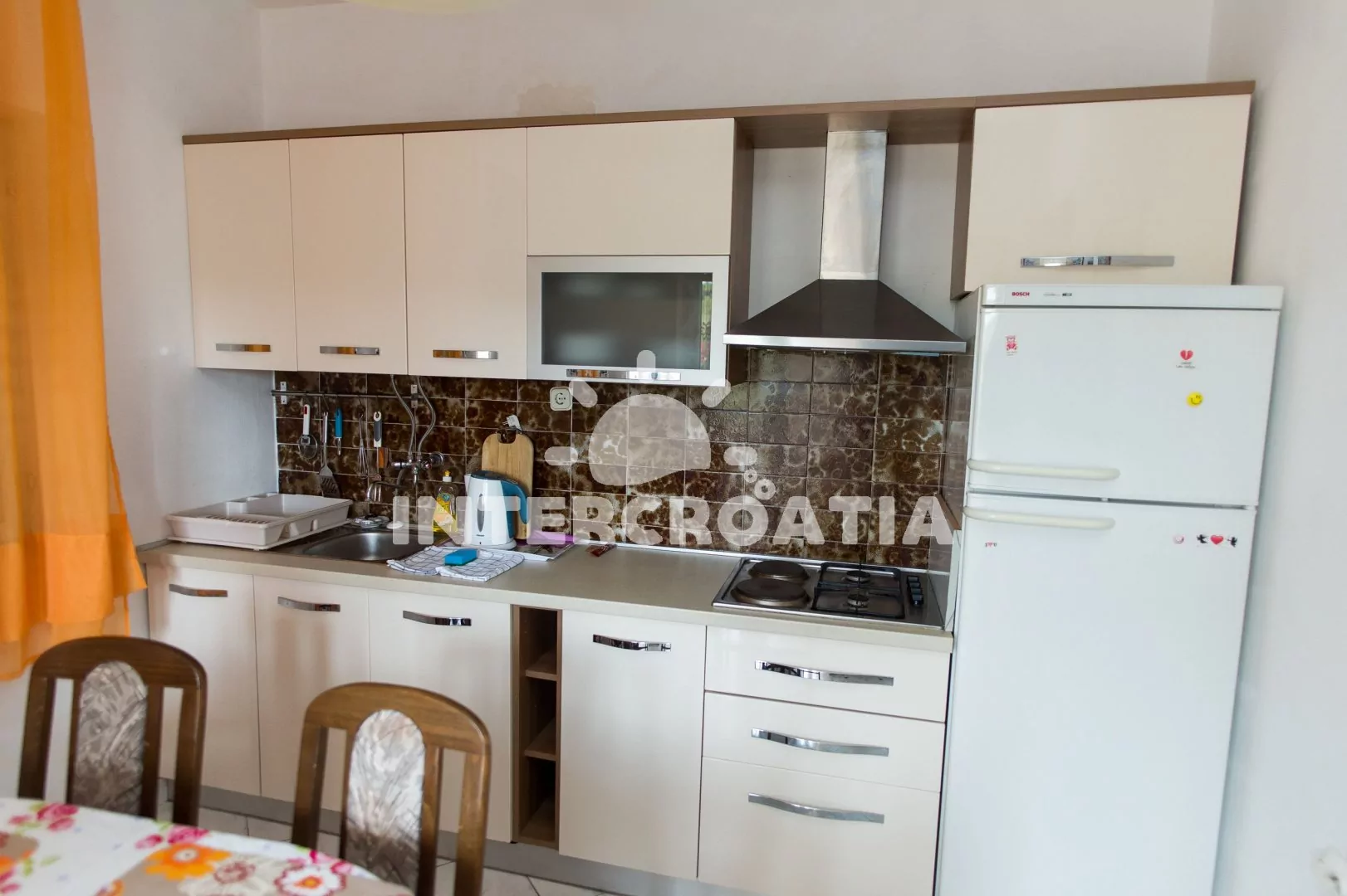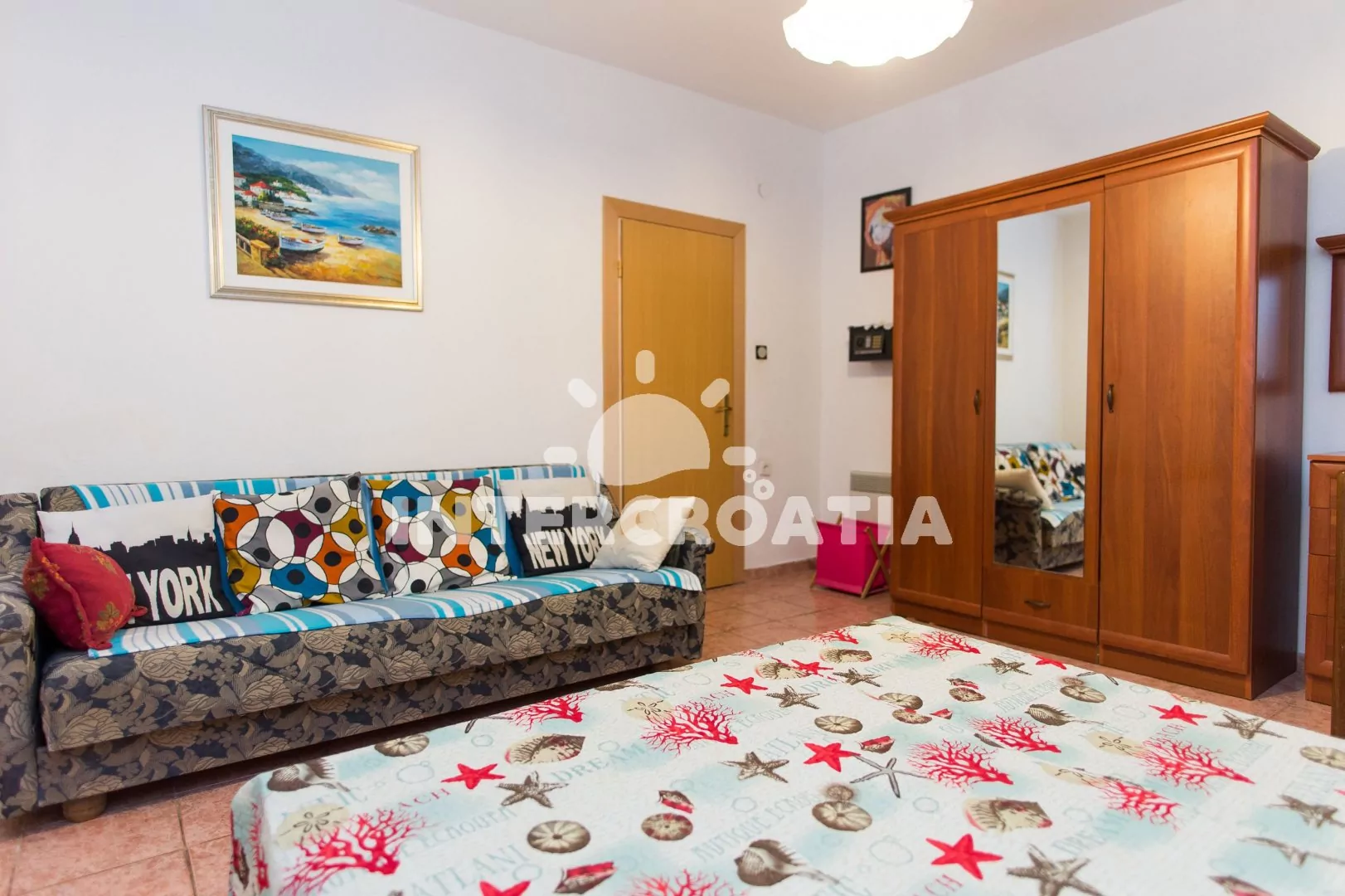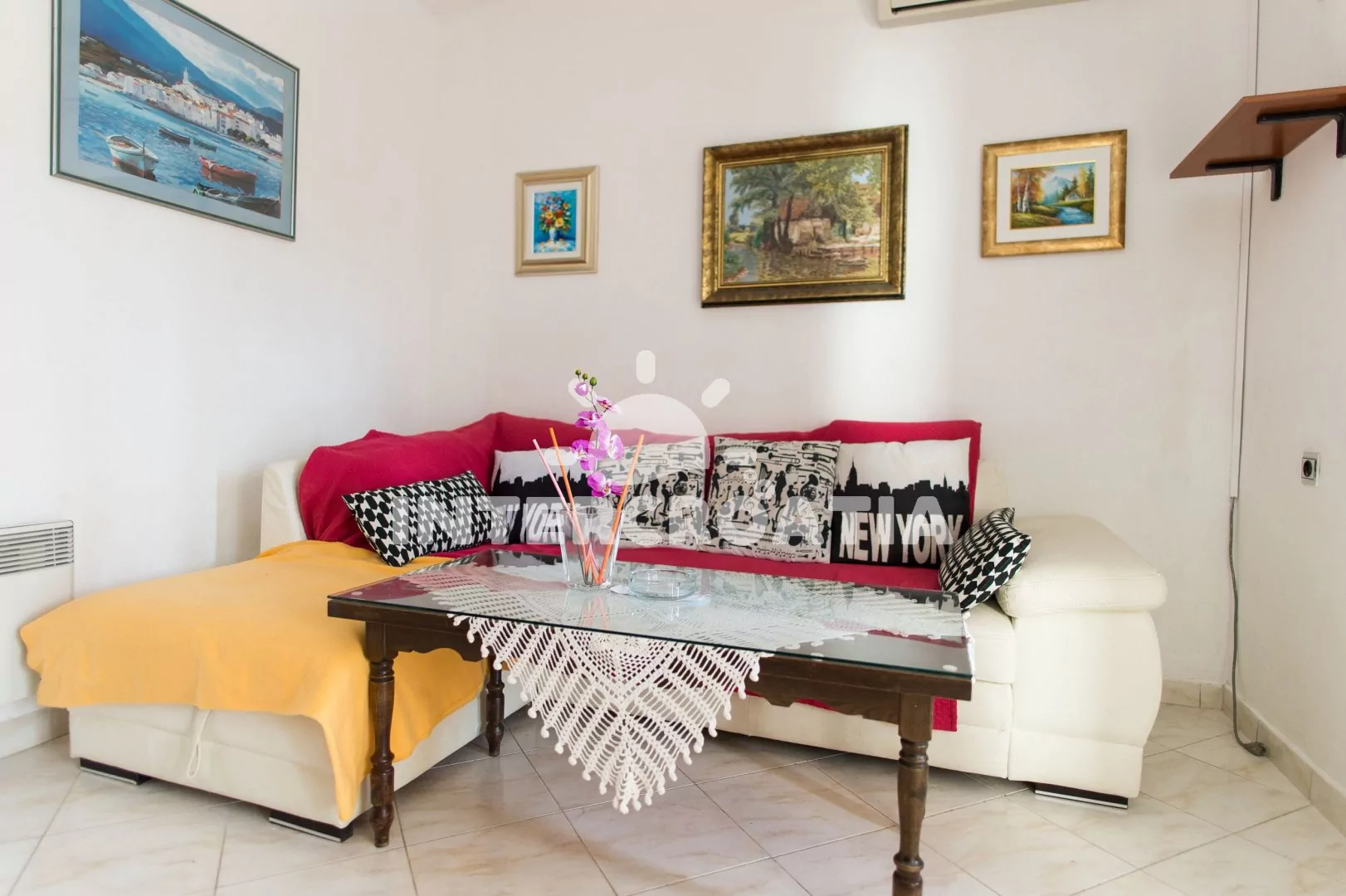 Dobře vybavený apartmán s výhledem na moře, terasou a posezením je vhodný pro 4 až 5 osob. Obývací pokoj je částečně oddělený od kuchyně. Kuchyň je vybavena jídelním stolem pro 6 osob, kuchyňskou…