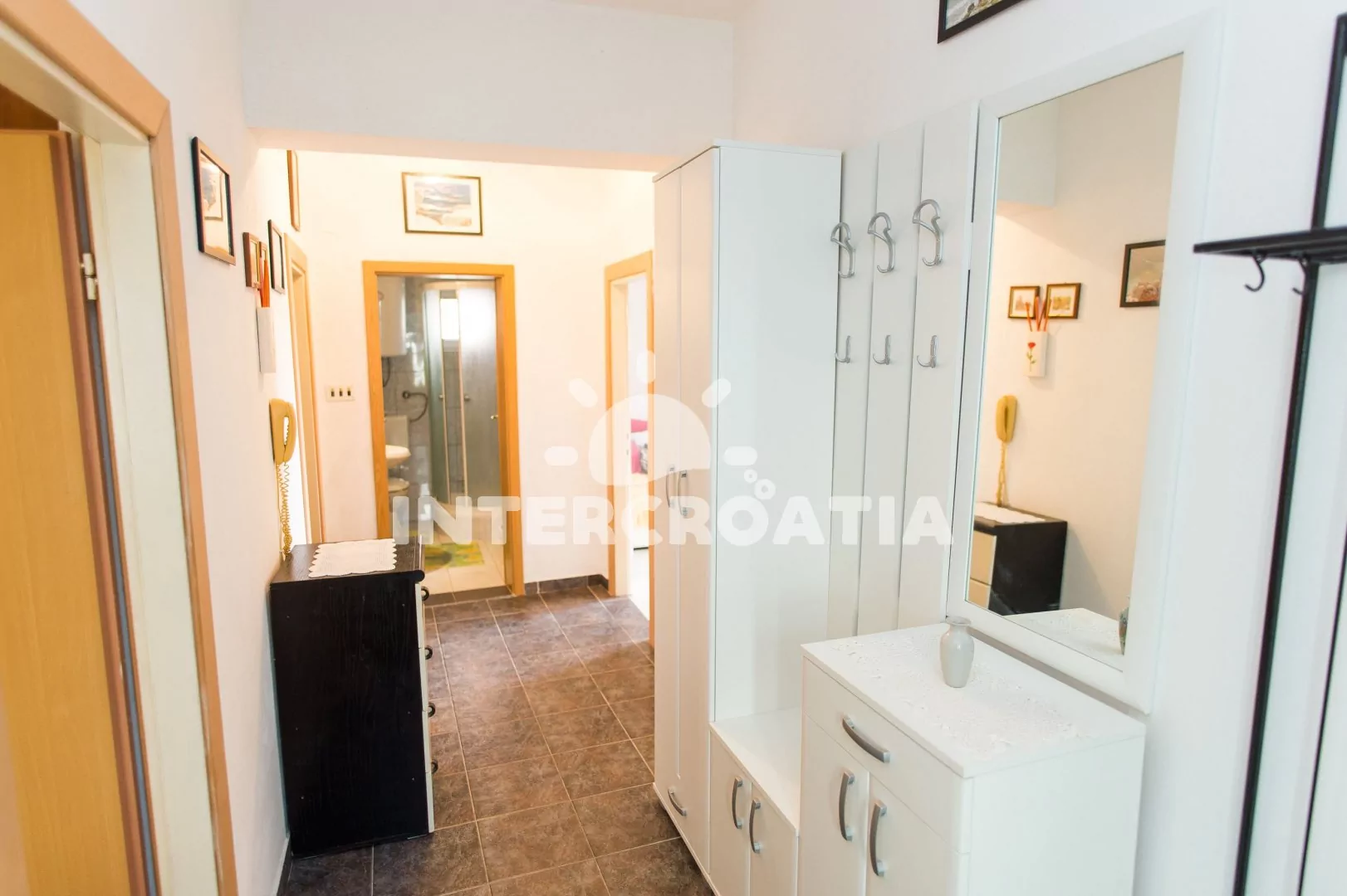 Dobře vybavený apartmán s výhledem na moře, terasou a posezením je vhodný pro 4 až 5 osob. Obývací pokoj je částečně oddělený od kuchyně. Kuchyň je vybavena jídelním stolem pro 6 osob, kuchyňskou linkou se sporákem, digestoří, myčkou na nádobí rychlovarnou konvicí, kávovarem, toustovačem, nádobím a lednicí s mrazákem. Obývací pokoj s pohovkou, televizí se satelitním programem, radiem a klimatizací. První ložnice s jedním dvoulůžkem a přistýlkou (extra lůžko pro 1 osobu). Druhá ložnice s dvoulůžkem. Koupelna se sprchovým koutem, umyvadlem, fénem a wc. Hostům je k dispozici v apartmánu sejf a parkování u objektu zdarma.