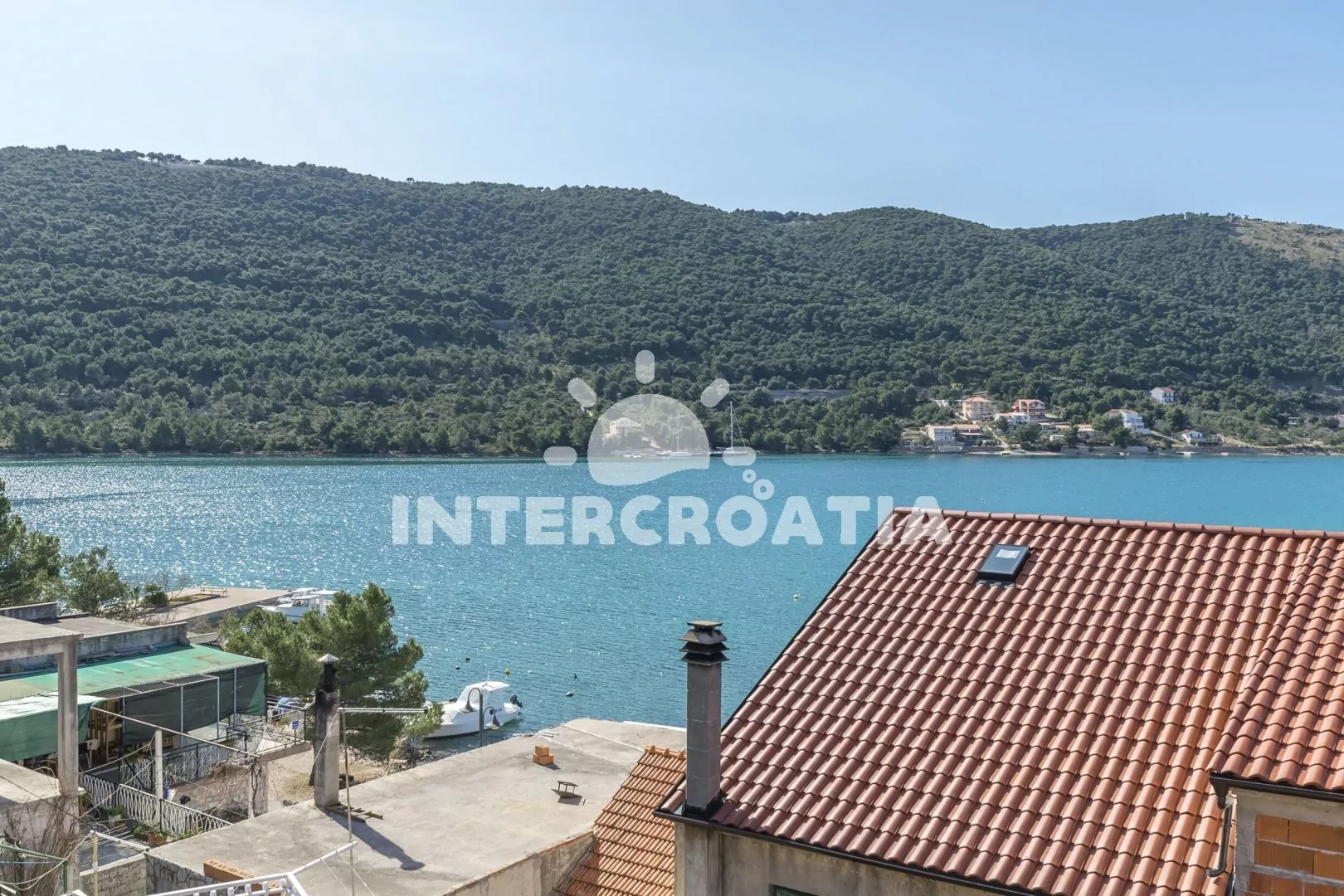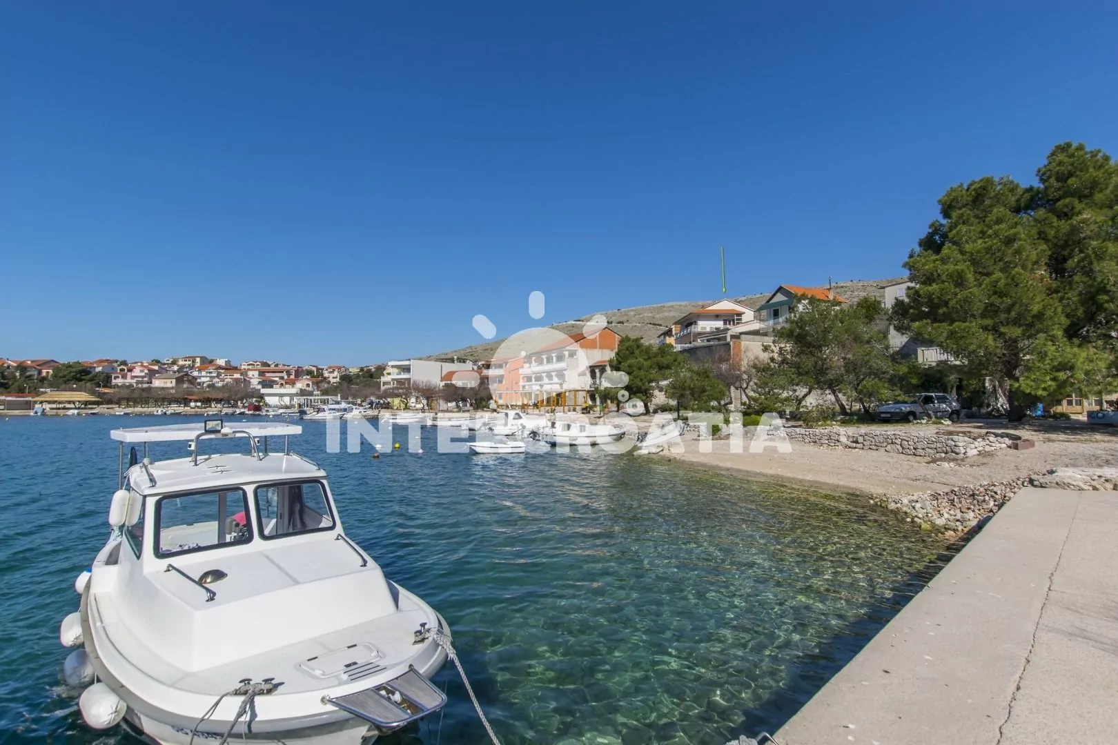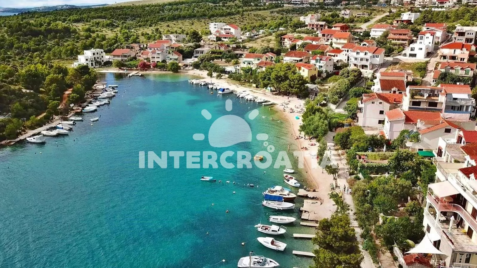 Vzdálenosti: Moře a oblázková pláž 100 m, centrum, supermarket, bar, restaurace 100 m, půjčovna motorových člunů 150 m, veřejná doprava 400 m, potápění 500 m, ambulance 2 km, pošta, směnárna 4 km, lékárna 8 km, čerpací stanice 10 km, diskotéka 12 km, banka 14 km, trajekt, letiště 50 km.