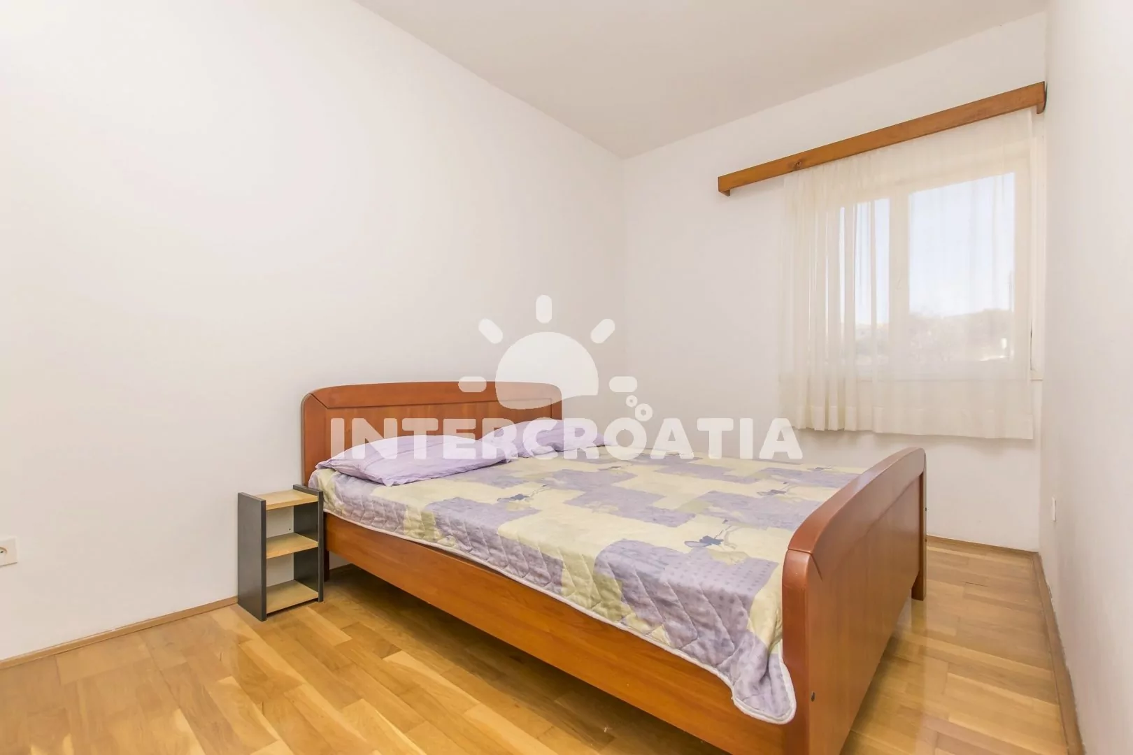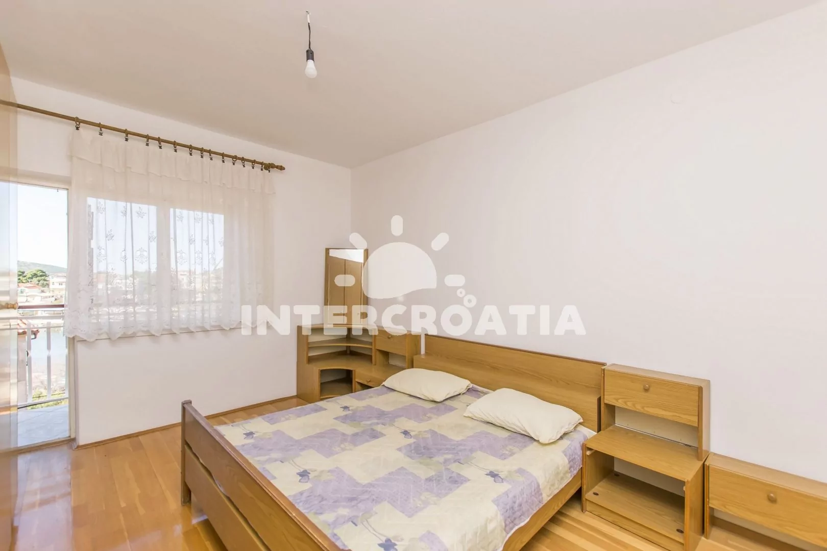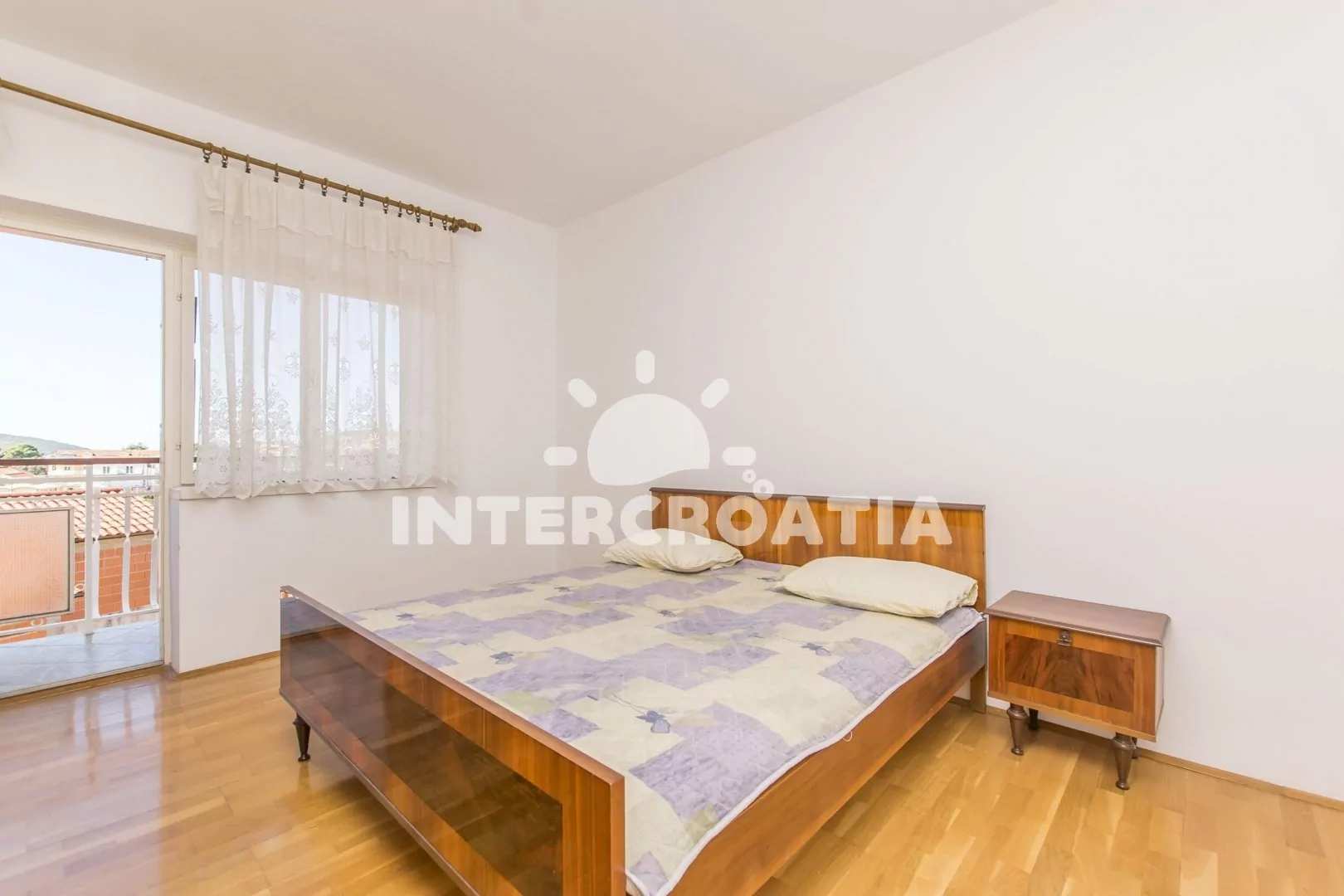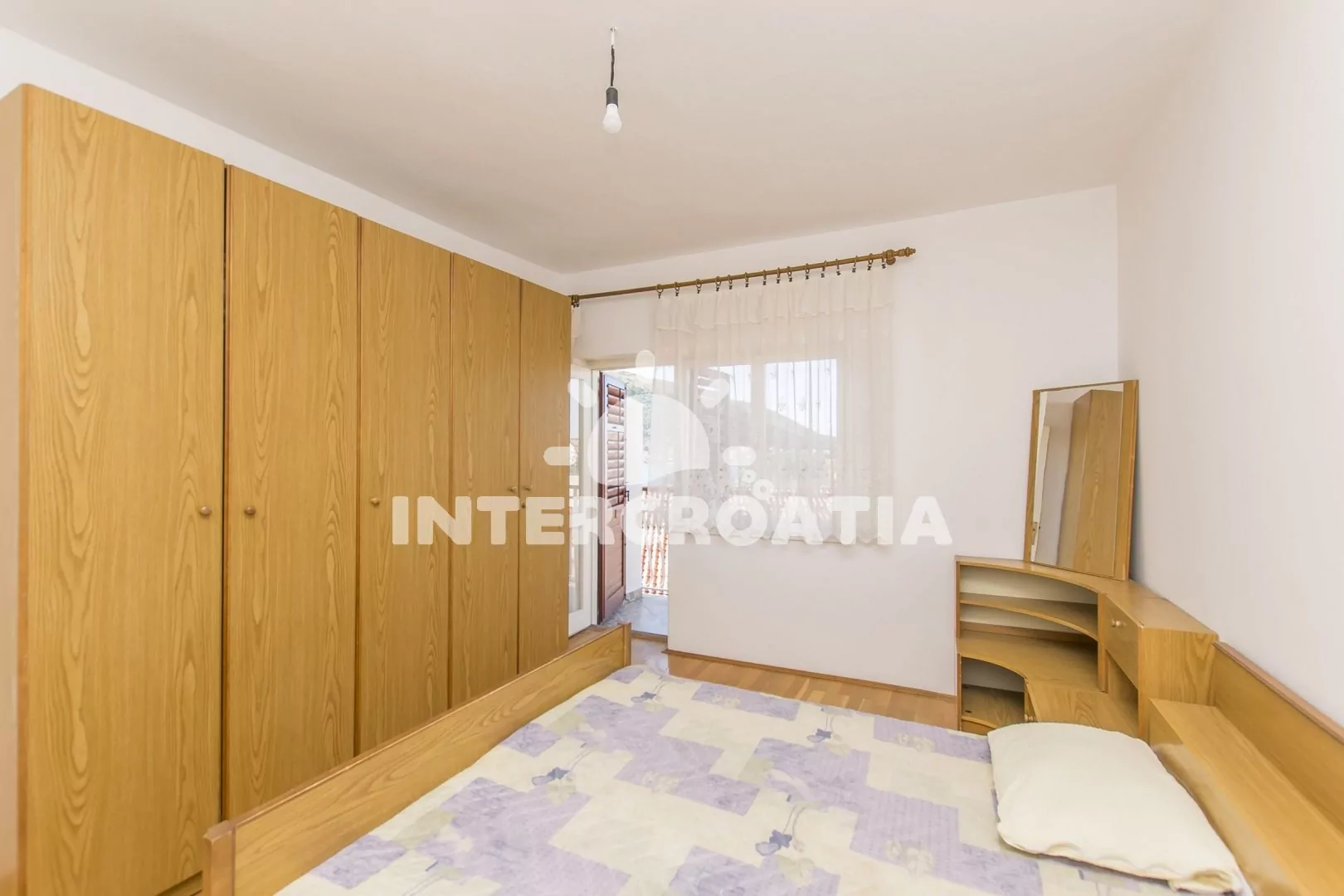 Apartmán (100 m2) s balkonem a výhledem na moře se nachází v 1. patře domu a je vhodný pro 6 až 8 osob. Kuchyňská linka je vybavena sporákem s troubou, digestoří, rychlovarnou konvicí, kávovarem, nádobím a lednicí s mrazákem. Dále jídelní stůl pro 6 osob. Obývací pokoj s pohovkou (rozložitelná na extra lůžko pro 2 osoby), televizí se satelitním programem, klimatizací a vstupem na balkon. První a druhá ložnice je vybavena s dvoulůžkem a vstupem na balkon. Třetí ložnice s dvoulůžkem. Koupelna se sprchovým koutem, umyvadlem, bidetem a wc. Dále samostatné wc s umyvadlem. Hostům je k dispozici parkování u objektu zdarma.