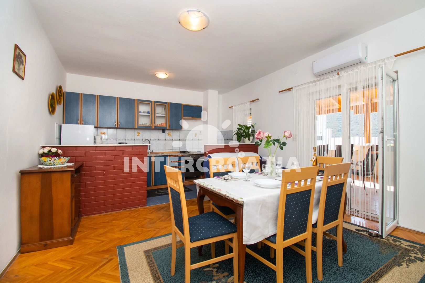 Apartmán (100 m2) s terasou, a výhledem na moře. Nachází se v 1. patře objektu. Apartmán má 3 ložnice a je vhodný pro až 6 osob. Kuchyňská linka je vybavena varnou deskou, troubou, kávovarem, myčkou…