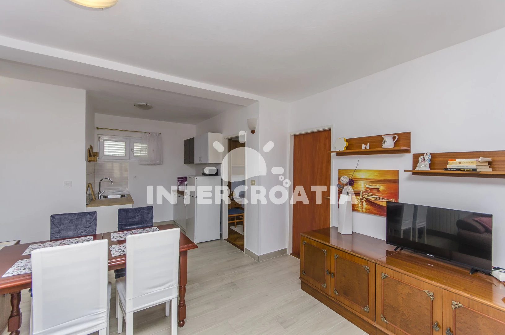 Apartmán (50 m2) s terasou, a výhledem na moře. Nachází se v 1. patře objektu. Apartmán má 2 ložnice a je vhodný pro až 4 osoby. Kuchyňská linka je vybavena varnou deskou, troubou, kávovarem,…