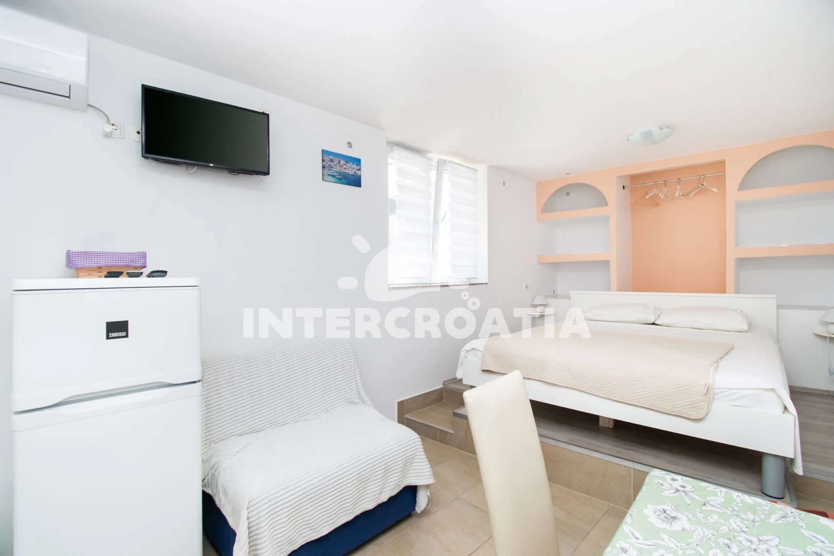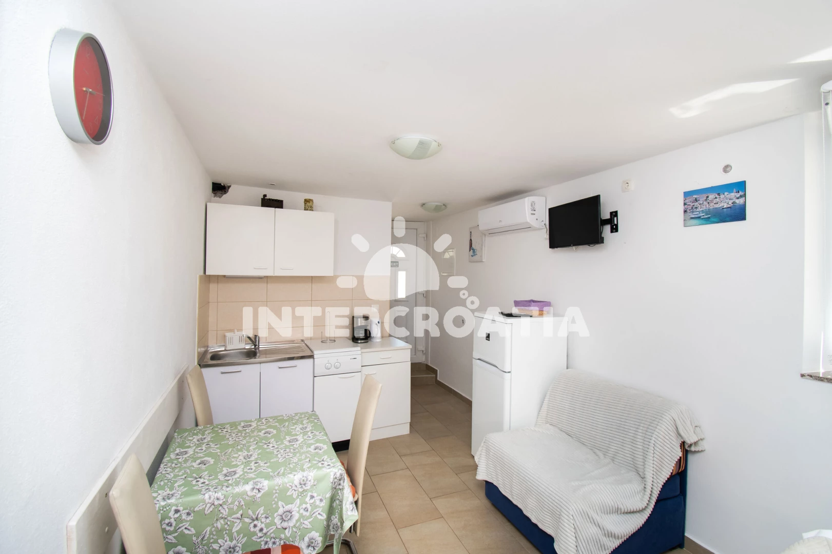 Vzdálenosti: Moře 150 m, pláž 500 m (oblázková a betonové desky), bar 150 m, supermarket 200 m, restaurace 200 m, kotviště pro čluny 200 m, centrum 250 m, potápění 250 m, půjčovna motorových člunů 250 m, veřejná doprava 400 m, směnárna 5 km, lékárna 7 km, čerpací stanice 10,0 km, pošta 14 km, banka 14 km, muzeum 14 km, trajekt (Šibenik) 14 km, marina 14 km, ambulance 14 km, letiště (Split) 60 km,