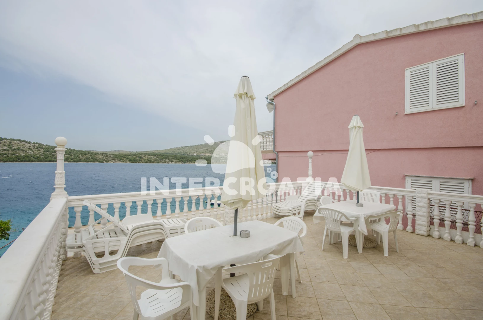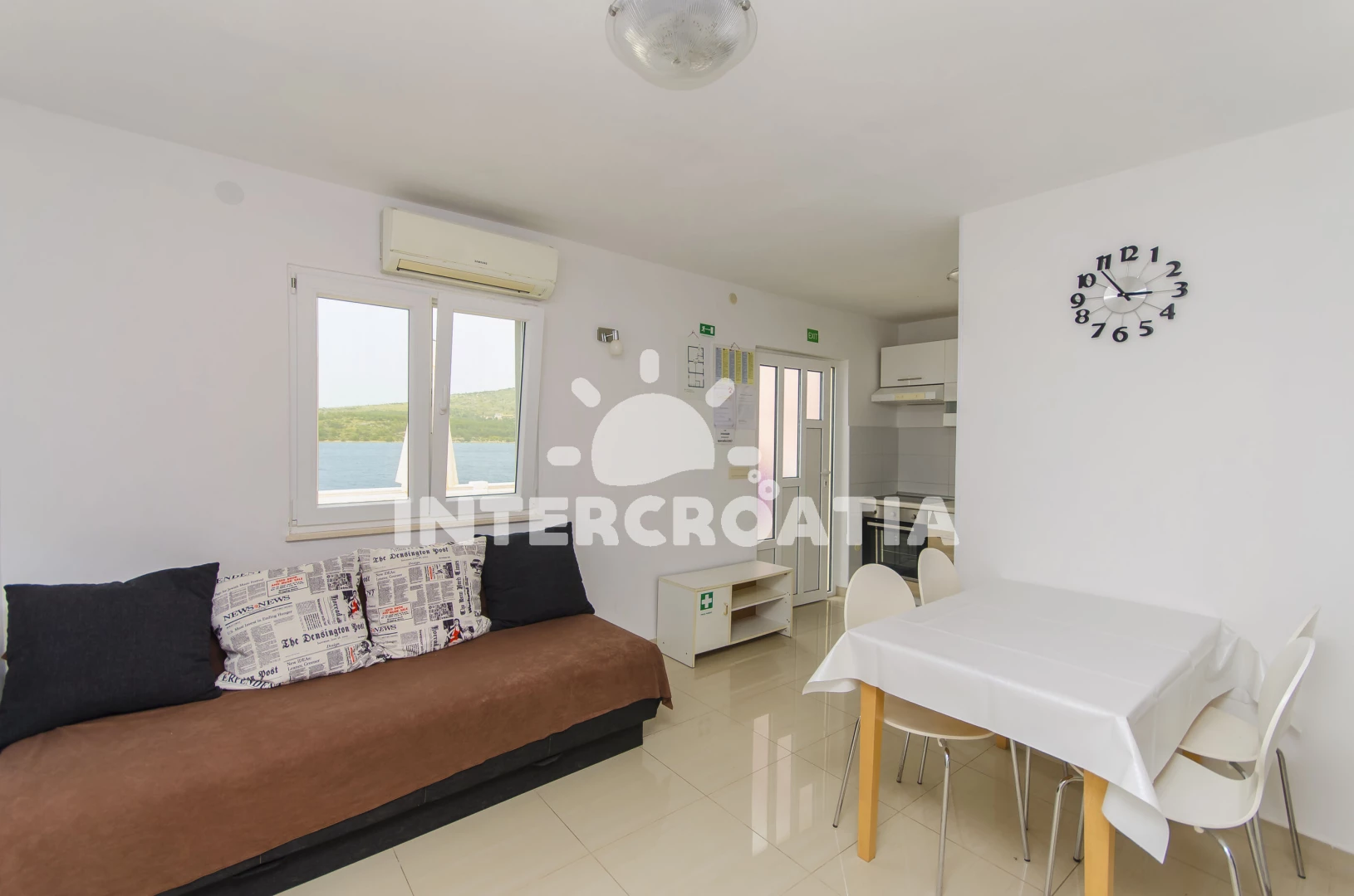 Apartmán (76 m2) s terasou, a výhledem na moře. Nachází se v 1. patře objektu. Apartmán má 3 ložnice a je vhodný pro až 8 osob. Kuchyňská linka je vybavena varnou deskou, kávovarem, troubou, toustovačem, mikrovlnnou troubou, rychlovarnou konvicí, nádobím, lednicí, mrazákem. V obývací místnosti je rozložitelná pohovka (extra lůžko pro 1 osobu). K dispozici televize, žehlička. První ložnice s dvoulůžkem. Druhá ložnice se 2 jednolůžky. Třetí ložnice s jednolůžkem, dvoulůžkem. První koupelna se sprchovým koutem, umyvadlem, WC. Druhá koupelna se sprchovým koutem, umyvadlem, WC. Hostům je k dispozici parkování u objektu zdarma.