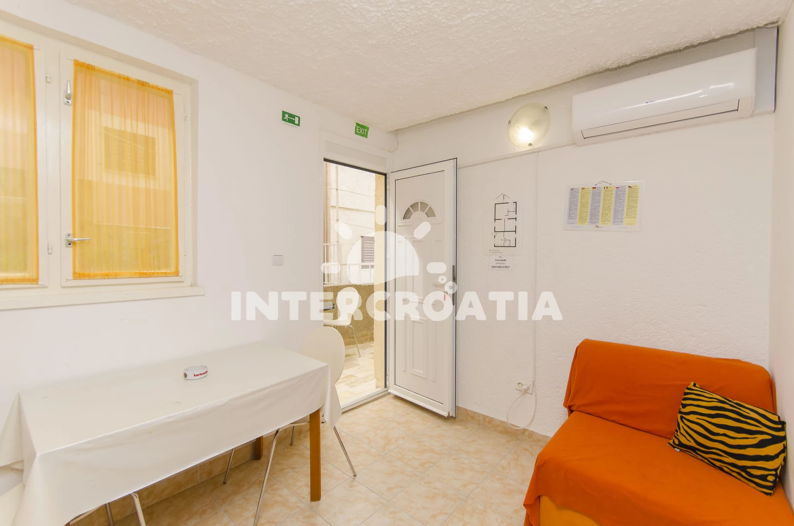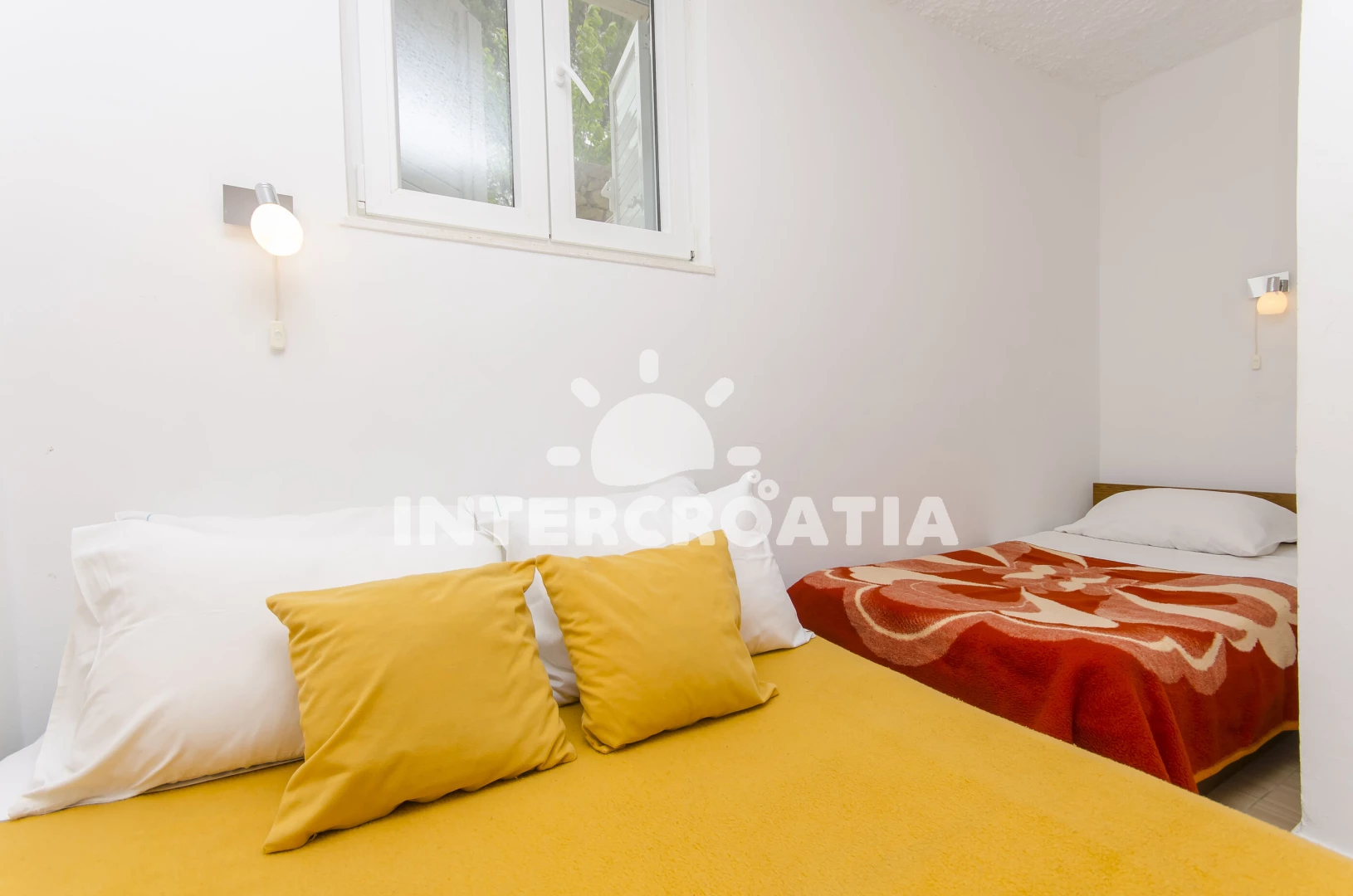 Vzdálenosti: Moře 7 m, pláž 10 m (betonové desky), kotviště pro čluny 5 m, centrum 50 m, bar 100 m, veřejná doprava 300 m, půjčovna motorových člunů 2 km, supermarket 2,5 km, restaurace 2,5 km, pošta 3 km, ambulance 3 km, směnárna 10 km, banka 10 km, tenisové kurty 10 km, čerpací stanice 10 km, lékárna 10 km, muzeum 15 km, letiště (Split) 50 km, trajekt (Split) 70 km,