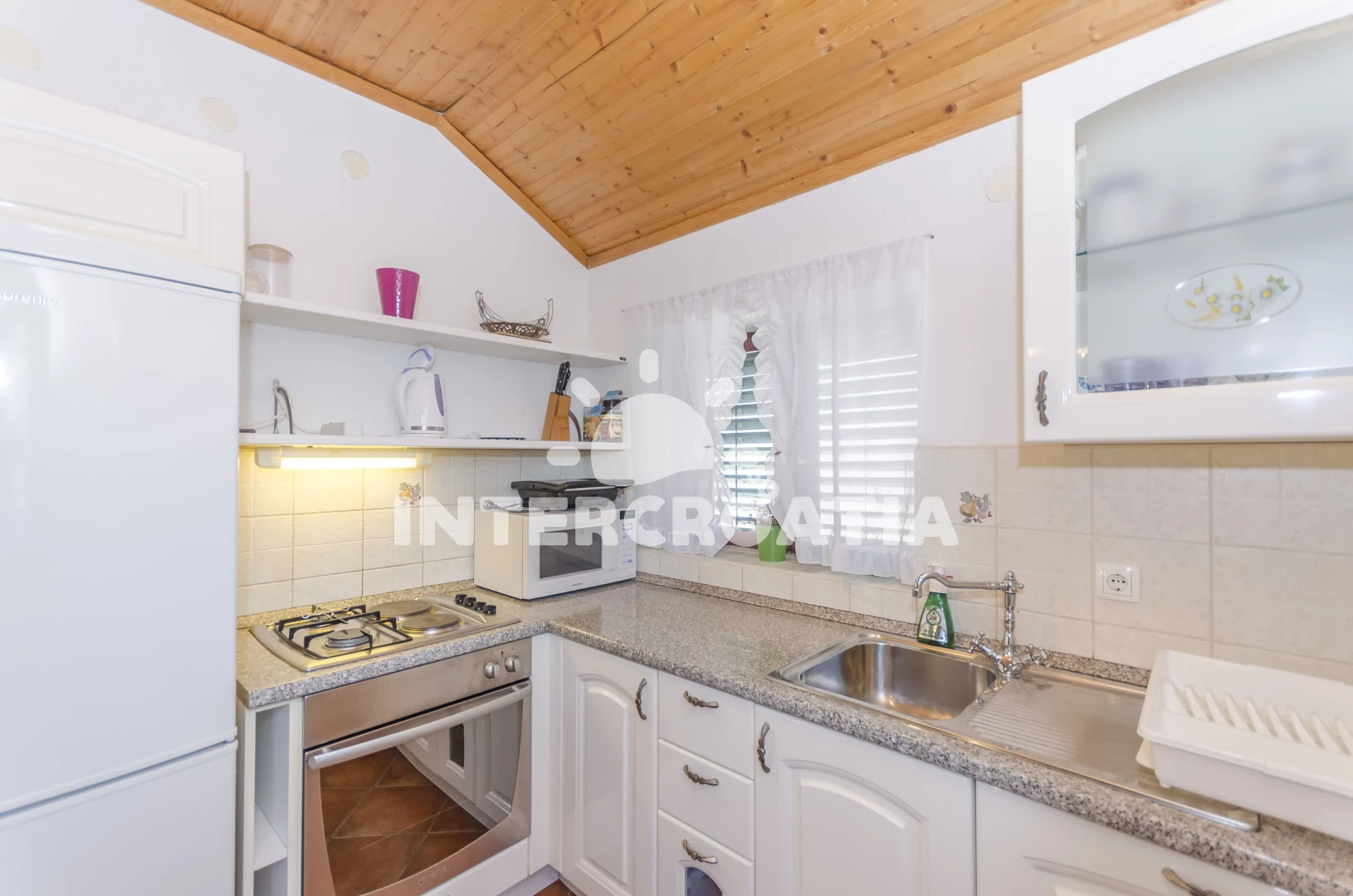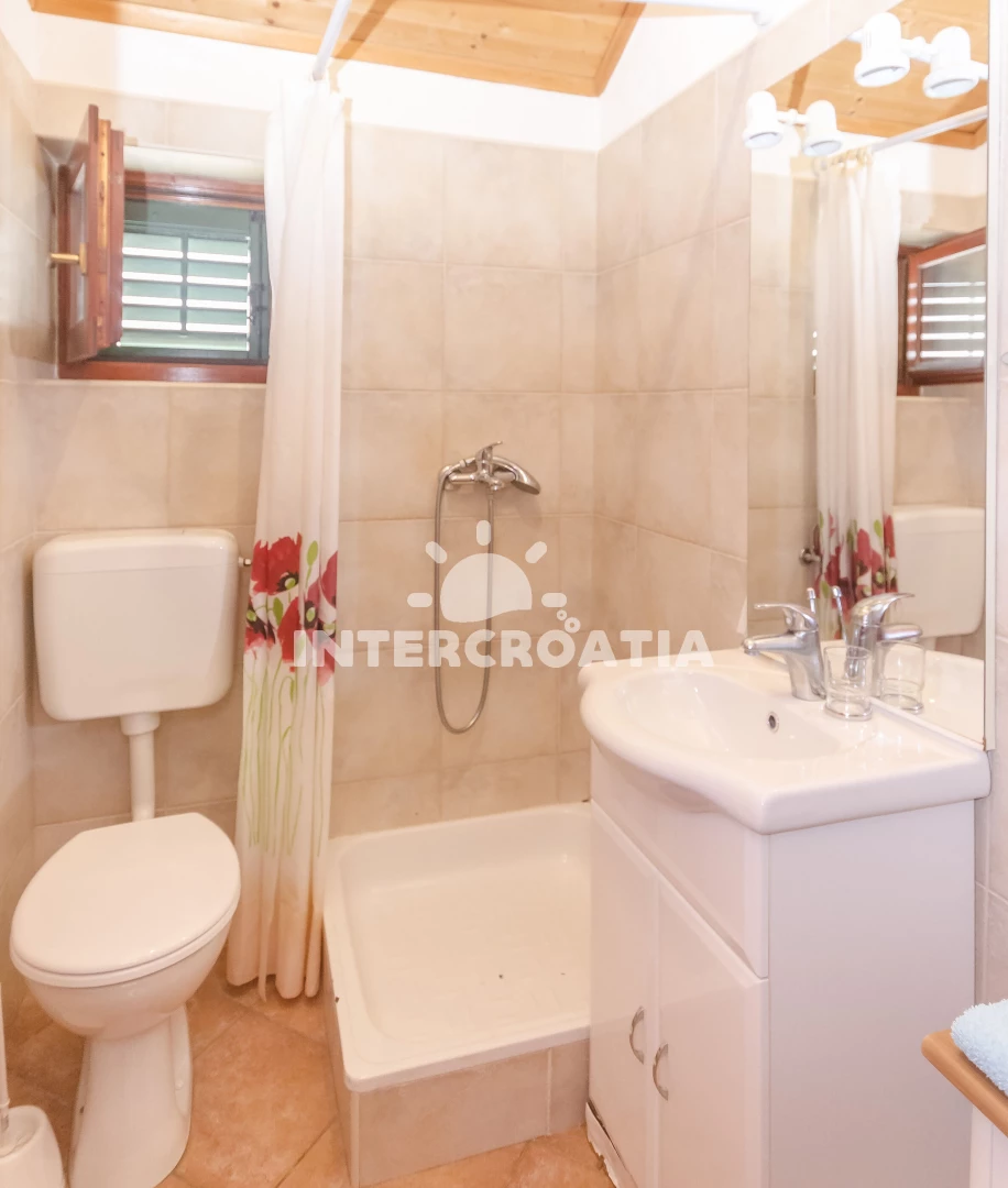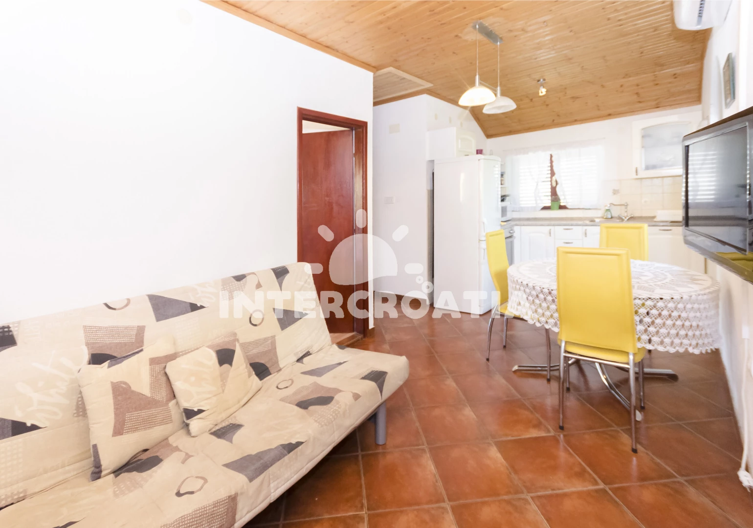 Vzdálenosti: Moře 200 m, pláž 300 m (písčitá a betonové desky), bar 200 m, restaurace 300 m, supermarket 400 m, centrum 400 m, trajekt (Šibenik) 14 km, lékárna 14 km, letiště (Zadar) 71 km,
