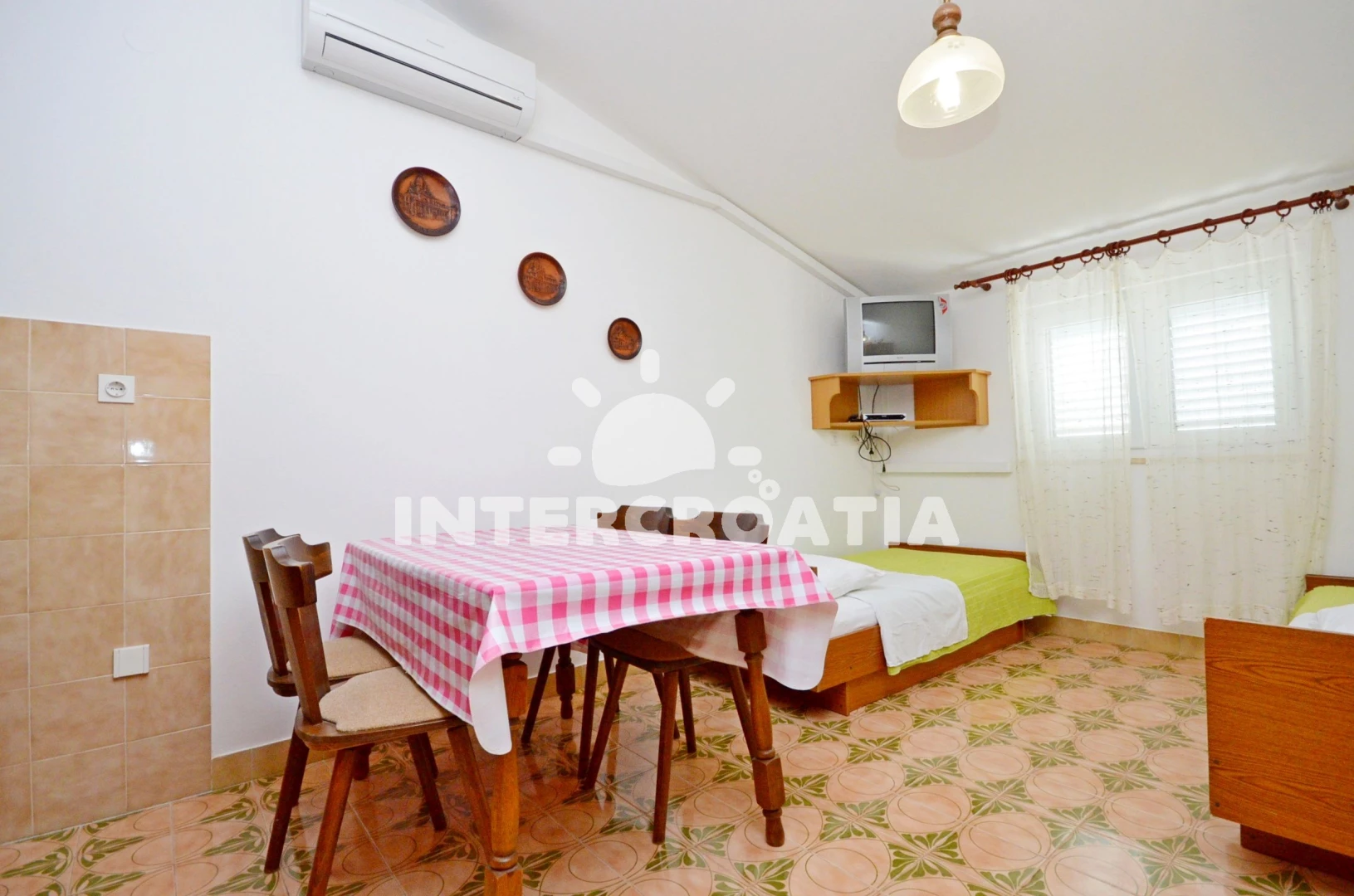 Jadrtovac je severodalmátské letovisko, které leží 11 km od historického Šibeniku. Apartmánový dům je perfektně umístěný přímo u moře a jen 50 m od oblázkové pláže, kterou doplňují betonové plochy.