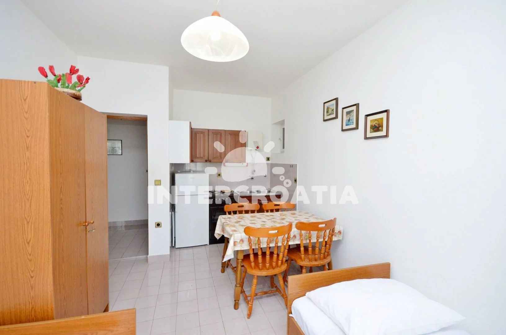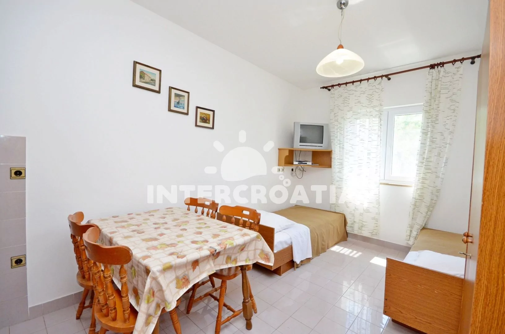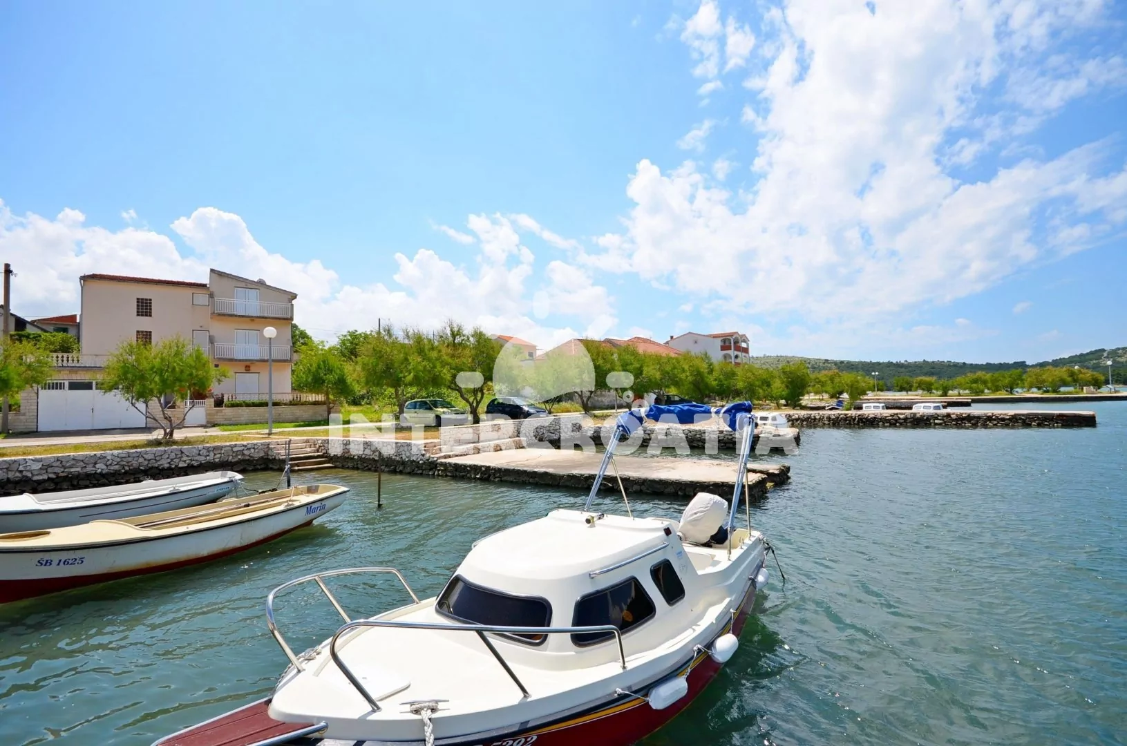 Jadrtovac je severodalmátské letovisko, které leží 11 km od historického Šibeniku. Apartmánový dům je perfektně umístěný přímo u moře a jen 50 m od oblázkové pláže, kterou doplňují betonové plochy.
