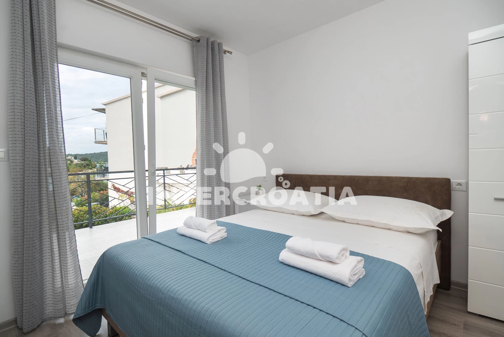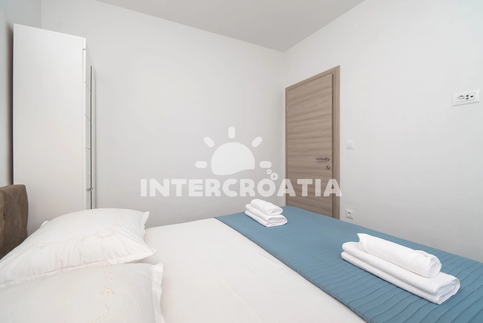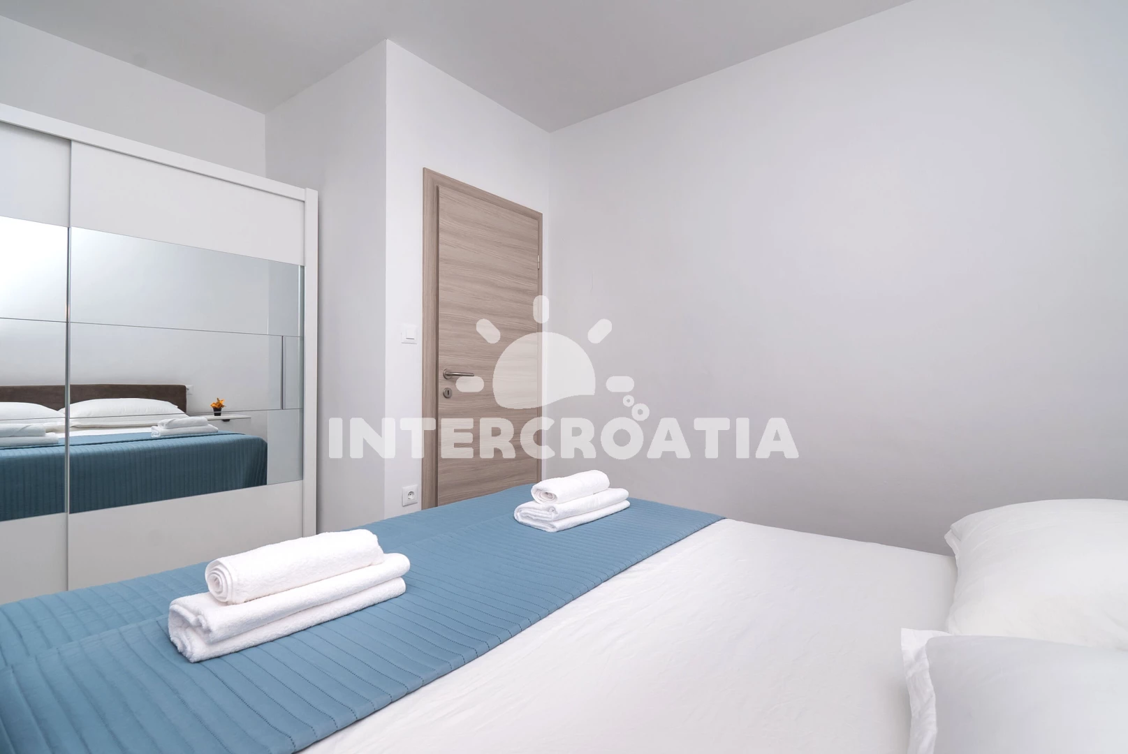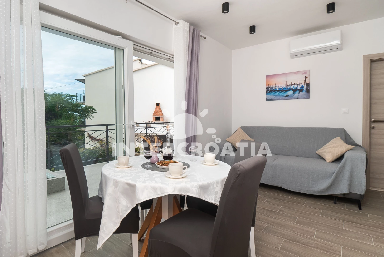 Vzdálenosti: Moře 10 m, pláž 10 m (oblázková a betonové desky), veřejná doprava 500 m, centrum 1,5 km, supermarket 1,5 km, restaurace 1,5 km, bar 1,5 km, pošta 10 km, banka 10 km, marina 10 km, směnárna 10 km, ambulance 10 km, lékárna 10 km, čerpací stanice 16 km, letiště (Split) 31 km, trajekt (Šibenik) 37 km, park Plitvice 53 km,