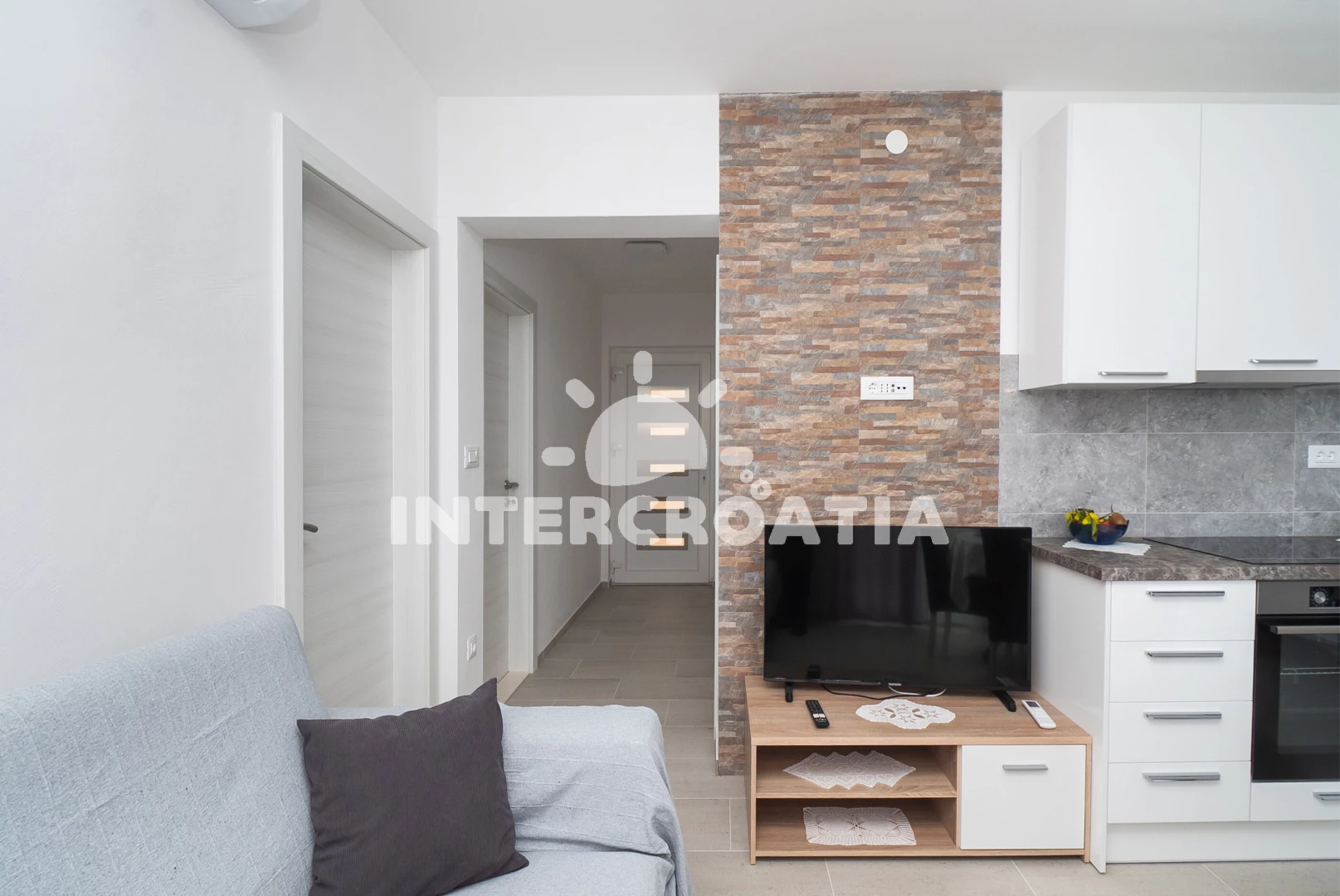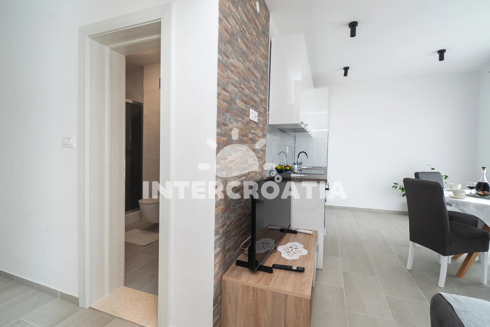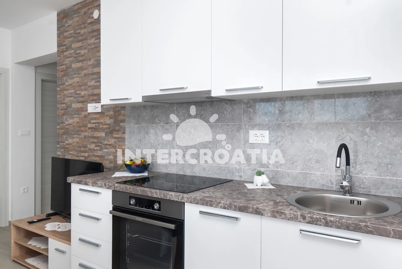 Vzdálenosti: Moře 10 m, pláž 10 m (oblázková a betonové desky), veřejná doprava 500 m, centrum 1,5 km, supermarket 1,5 km, restaurace 1,5 km, bar 1,5 km, pošta 10 km, banka 10 km, marina 10 km, směnárna 10 km, ambulance 10 km, lékárna 10 km, čerpací stanice 16 km, letiště (Split) 31 km, trajekt (Šibenik) 37 km, park Plitvice 53 km,