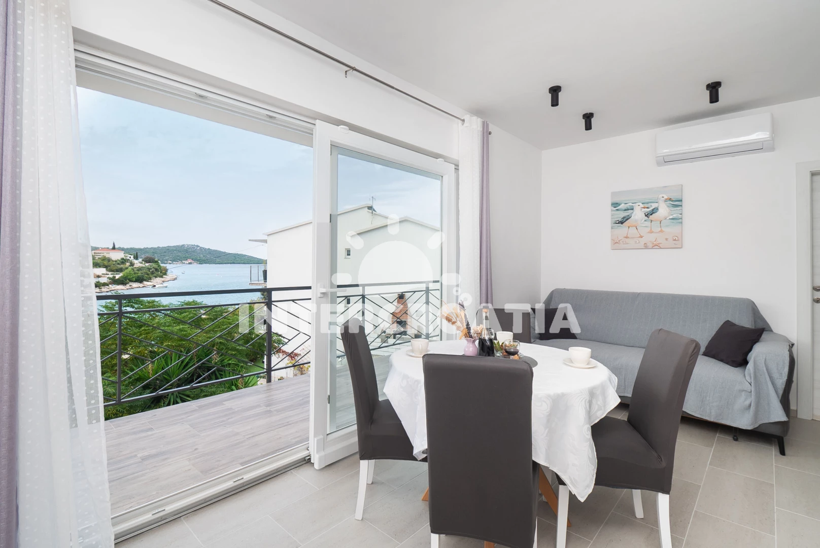 Apartmán se nachází 10 m od moře a pláže. Pláž je oblázková a betonové desky. U objektu je k dispozici společná zahrada s posezením a grilem. Parkování je před domem.