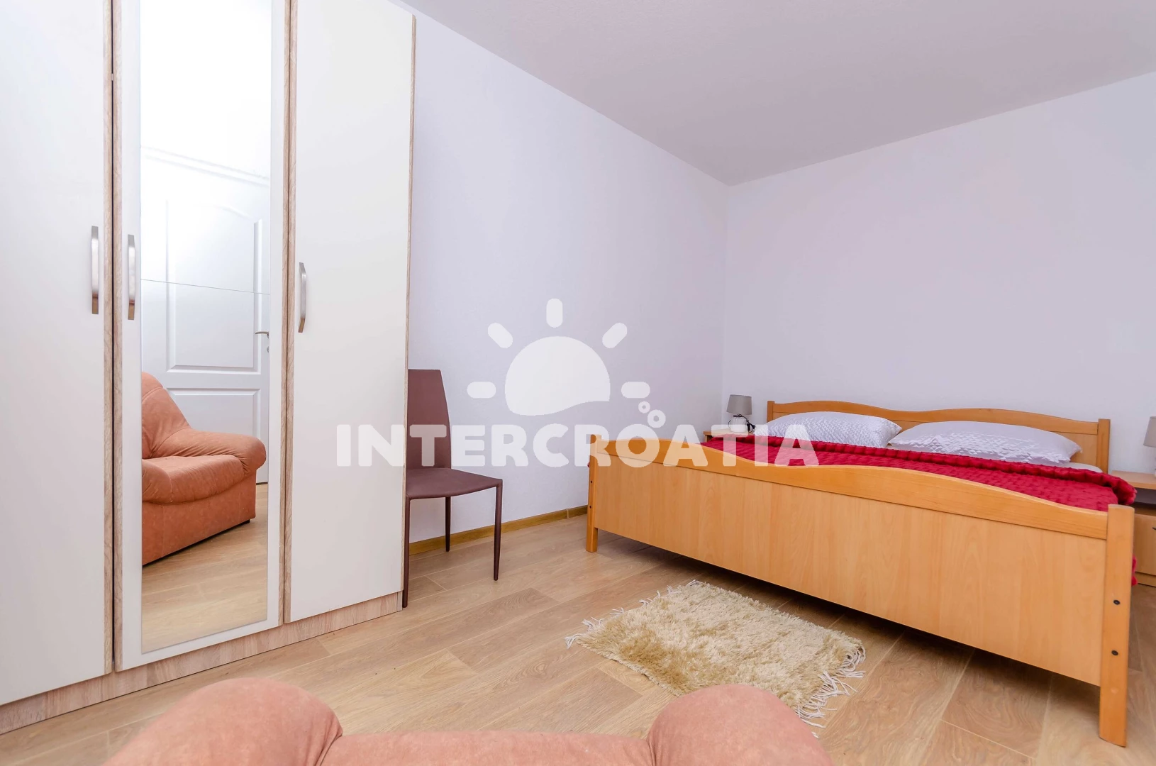 Vzdálenosti: Moře 600 m, pláž 600 m (oblázková a betonové desky), centrum 1 km, supermarket 1 km, bar 1 km, restaurace 1 km, veřejná doprava 3 km, lékárna 5 km, ambulance 5 km, pošta 5 km, čerpací stanice 13 km, banka 13 km, letiště (Split) 35 km, trajekt (Šibenik) 40 km,