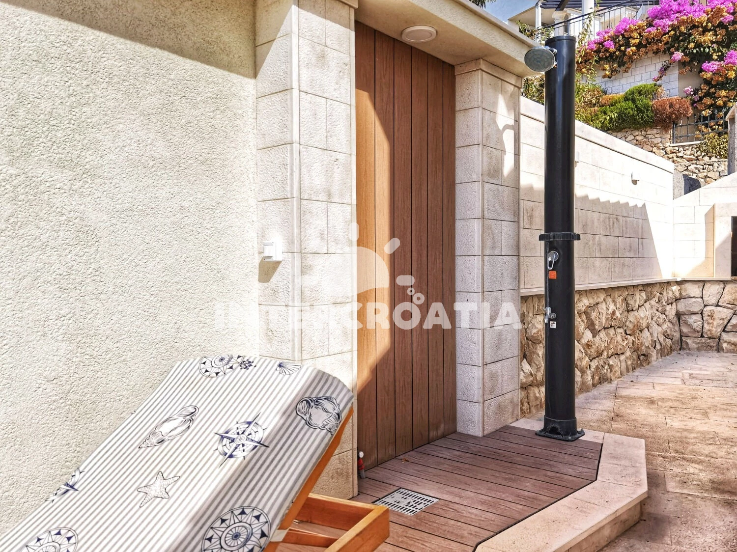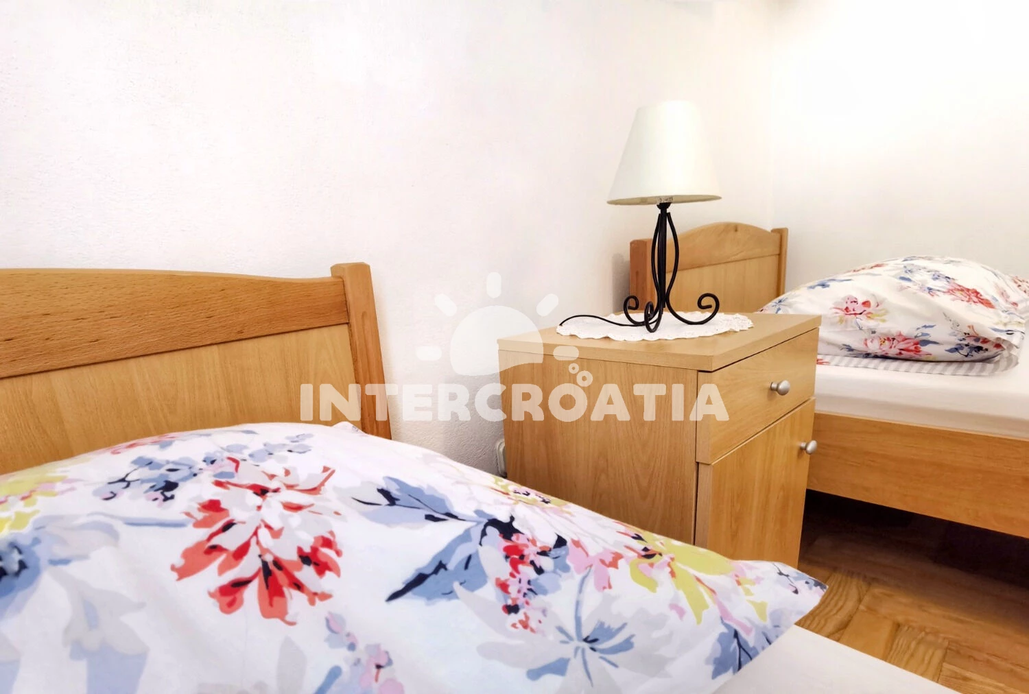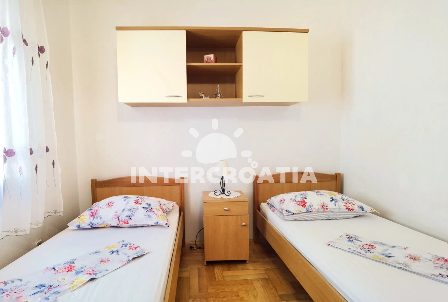 Apartmán se nachází 30 m od moře a pláže. Pláž je skalnatá, oblázková a betonové desky. U objektu je k dispozici společná zahrada s posezením a grilem. Parkování je před domem.