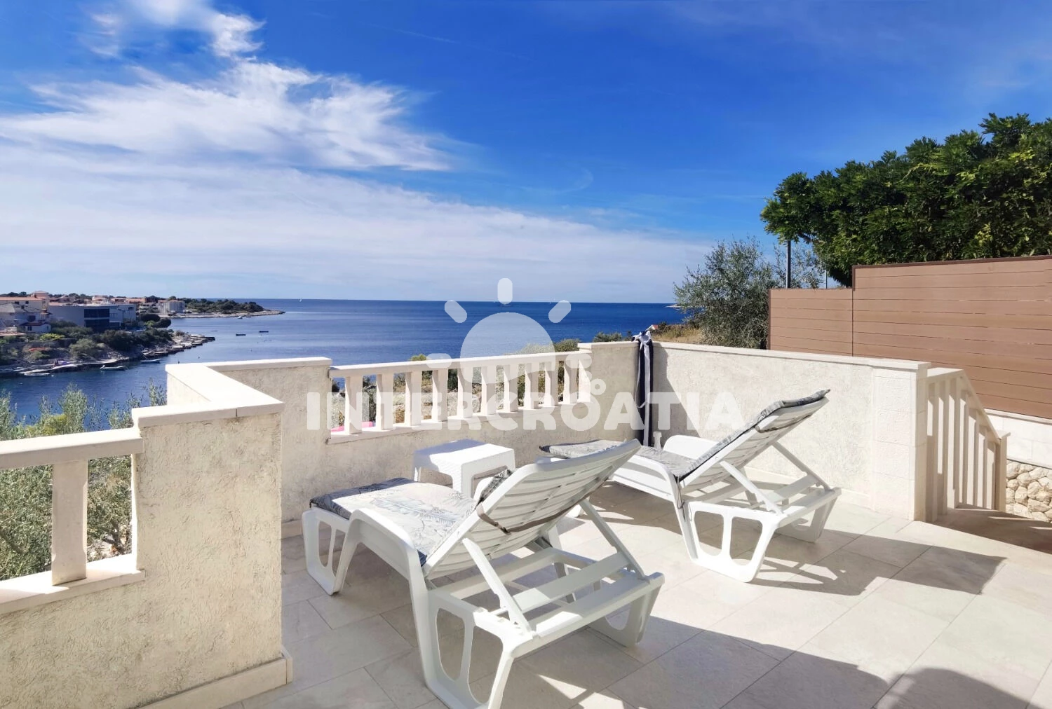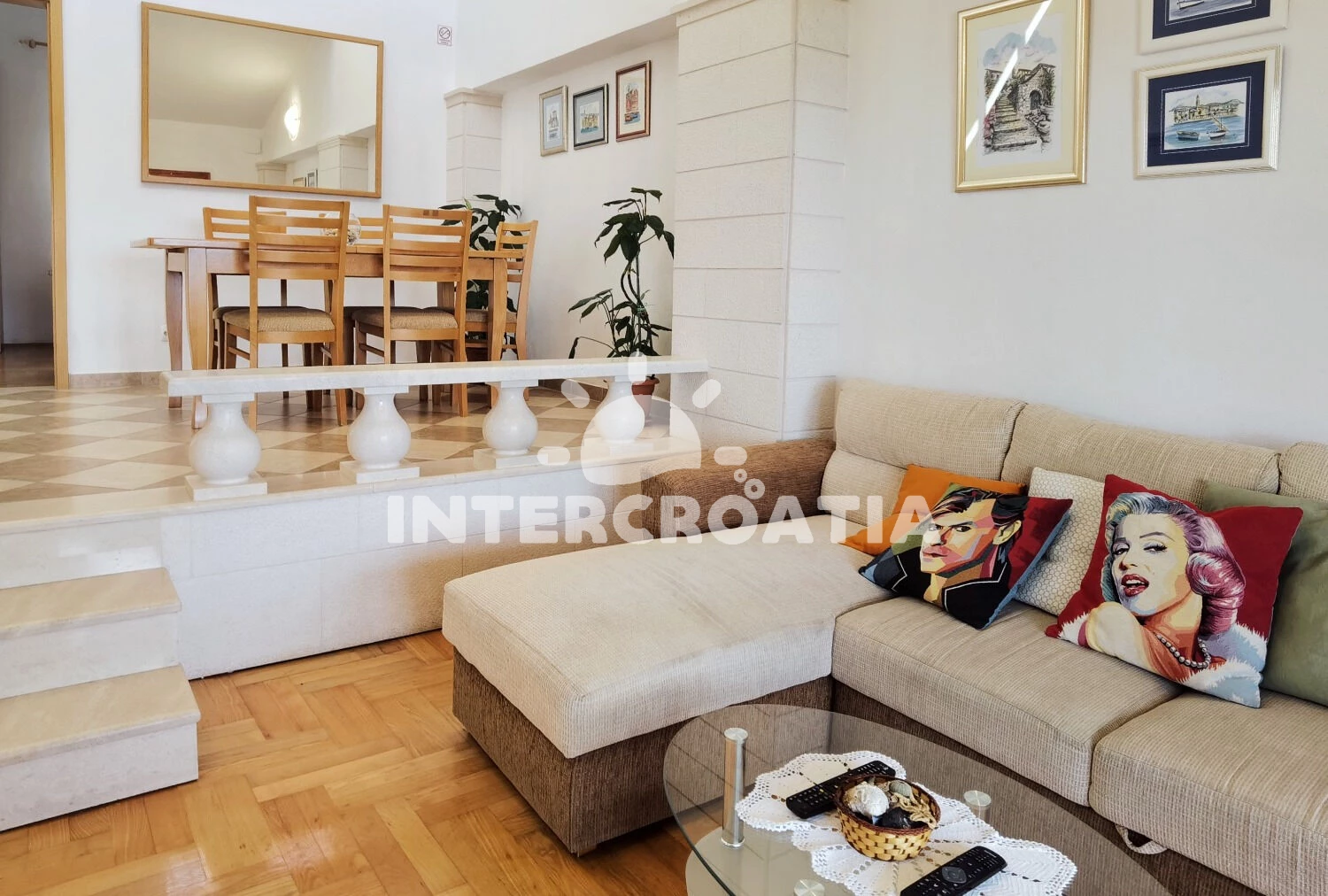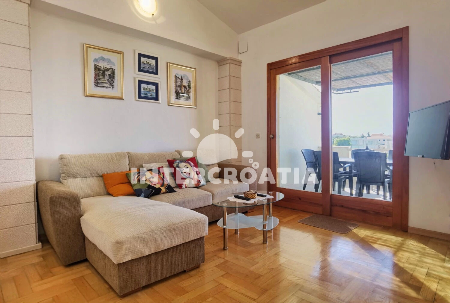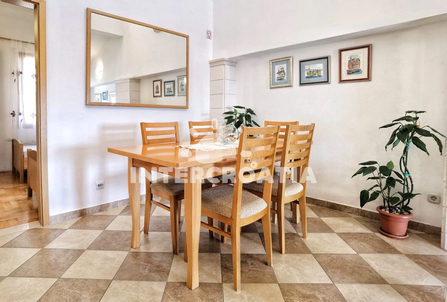 Apartmán se nachází 30 m od moře a pláže. Pláž je skalnatá, oblázková a betonové desky. U objektu je k dispozici společná zahrada s posezením a grilem. Parkování je před domem.