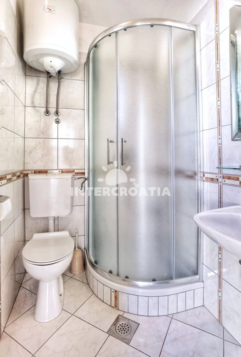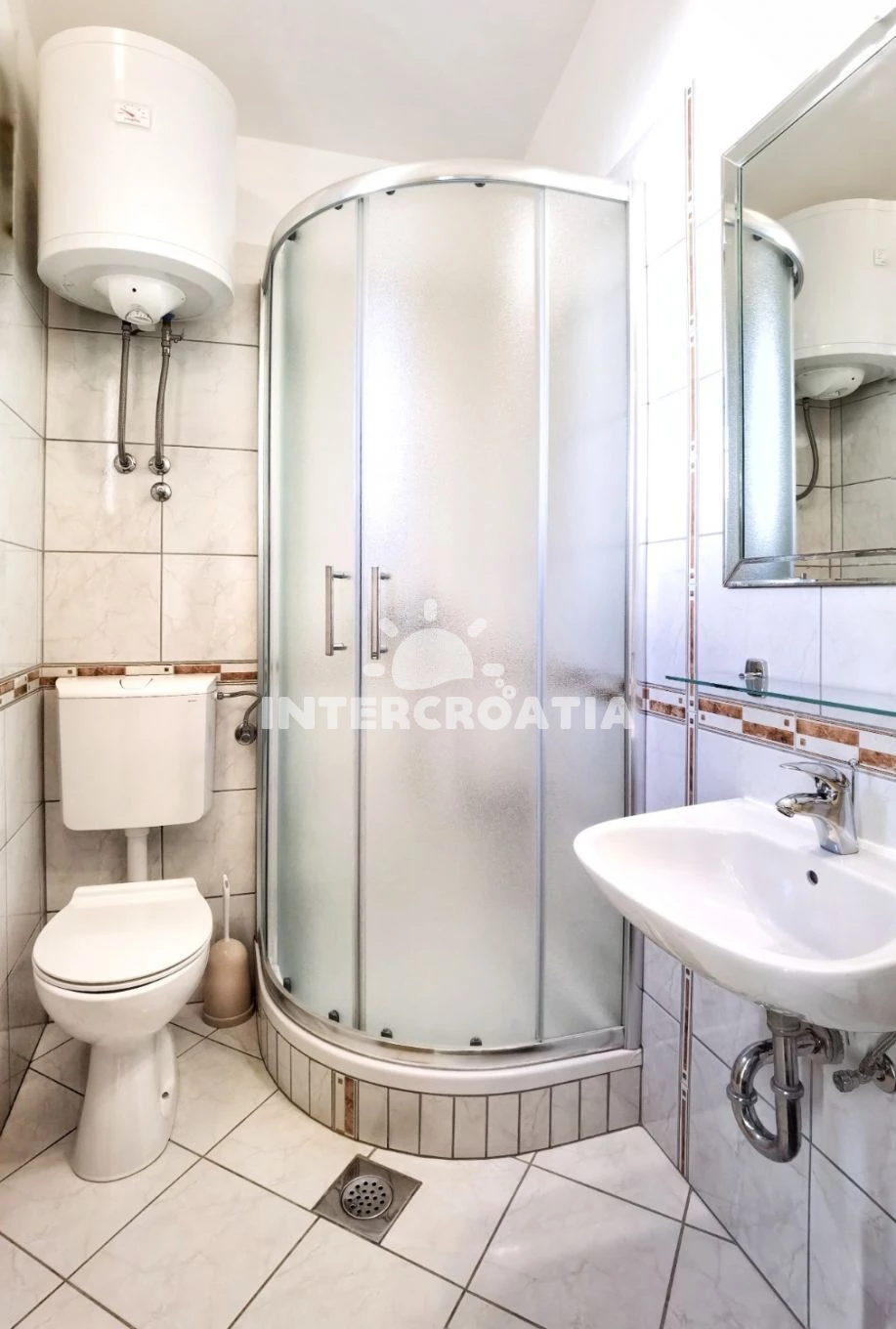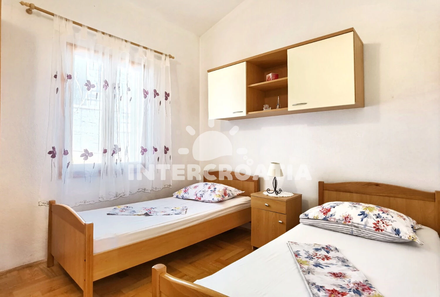 Vzdálenosti: Moře 30 m, pláž 30 m (skalnatá, oblázková a betonové desky), restaurace 300 m, centrum 700 m, bar 700 m, supermarket 2 km, potápění 3 km, veřejná doprava 6 km, diskotéka 10 km, marina 10 km, směnárna 10 km, pošta 10 km, banka 10 km, ambulance 10 km, lékárna 10 km, čerpací stanice 15 km, muzeum 25 km, letiště (Split) 25 km, trajekt (Šibenik) 30 km, park Plitvice 50 km,