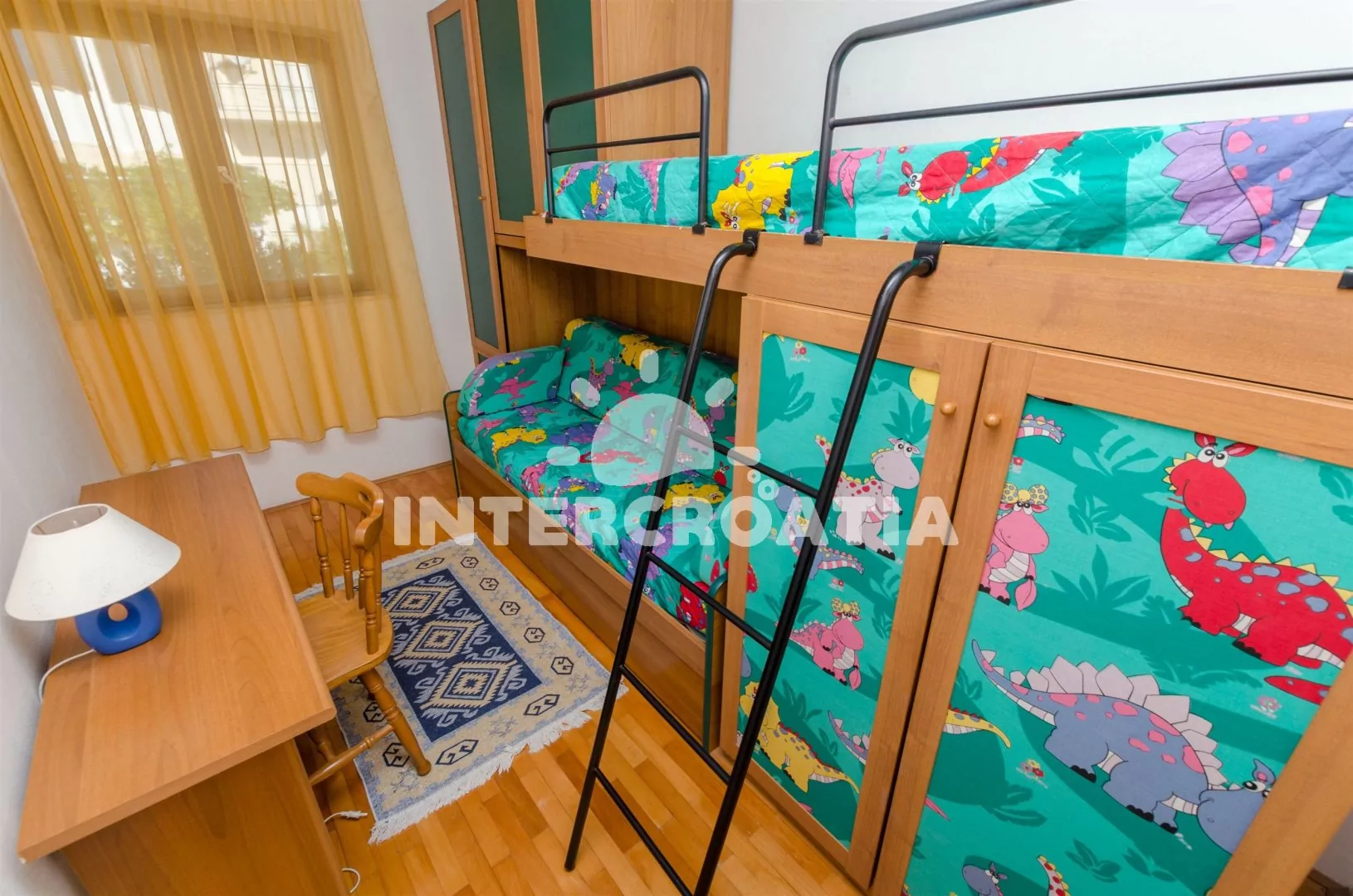 Velký apartmán (90 m2) s jedinečným výhledem na moře přímo z terasy apartmánu je vhodný pro 6 až 8 osob, nachází se v přízemí vily. Obývací pokoj je spojený s kuchyní. Kuchyňská linka je vybavena sporákem, troubou, myčkou na nádobí, mikrovlnnou troubou, rychlovarnou konvicí, nádobím a lednicí s mrazákem. Obývací pokoj s jídelním stolem, pohovkou, televizí, radiem a vstupem na terasu. První i druhá ložnice je vybavena s jedním dvoulůžkem. Třetí ložnice s dvěma jednolůžky. Čtvrtá ložnice s dvěma přistýlkami. Koupelna se sprchovým koutem, umyvadlem, fénem a wc. Hostům je k dispozici parkování u objektu zdarma.