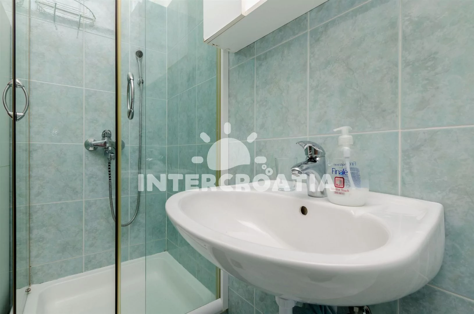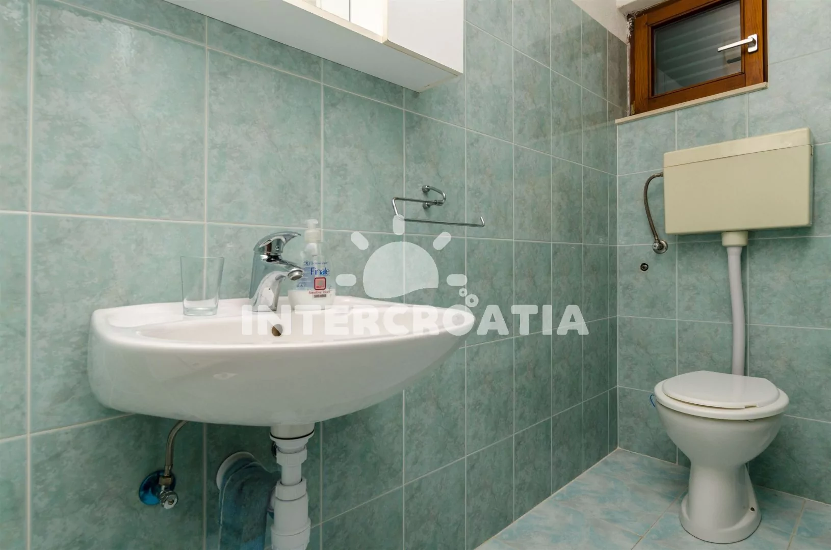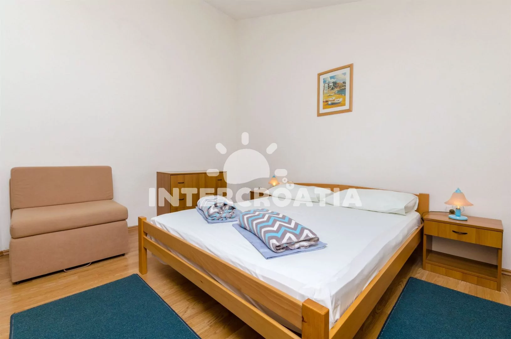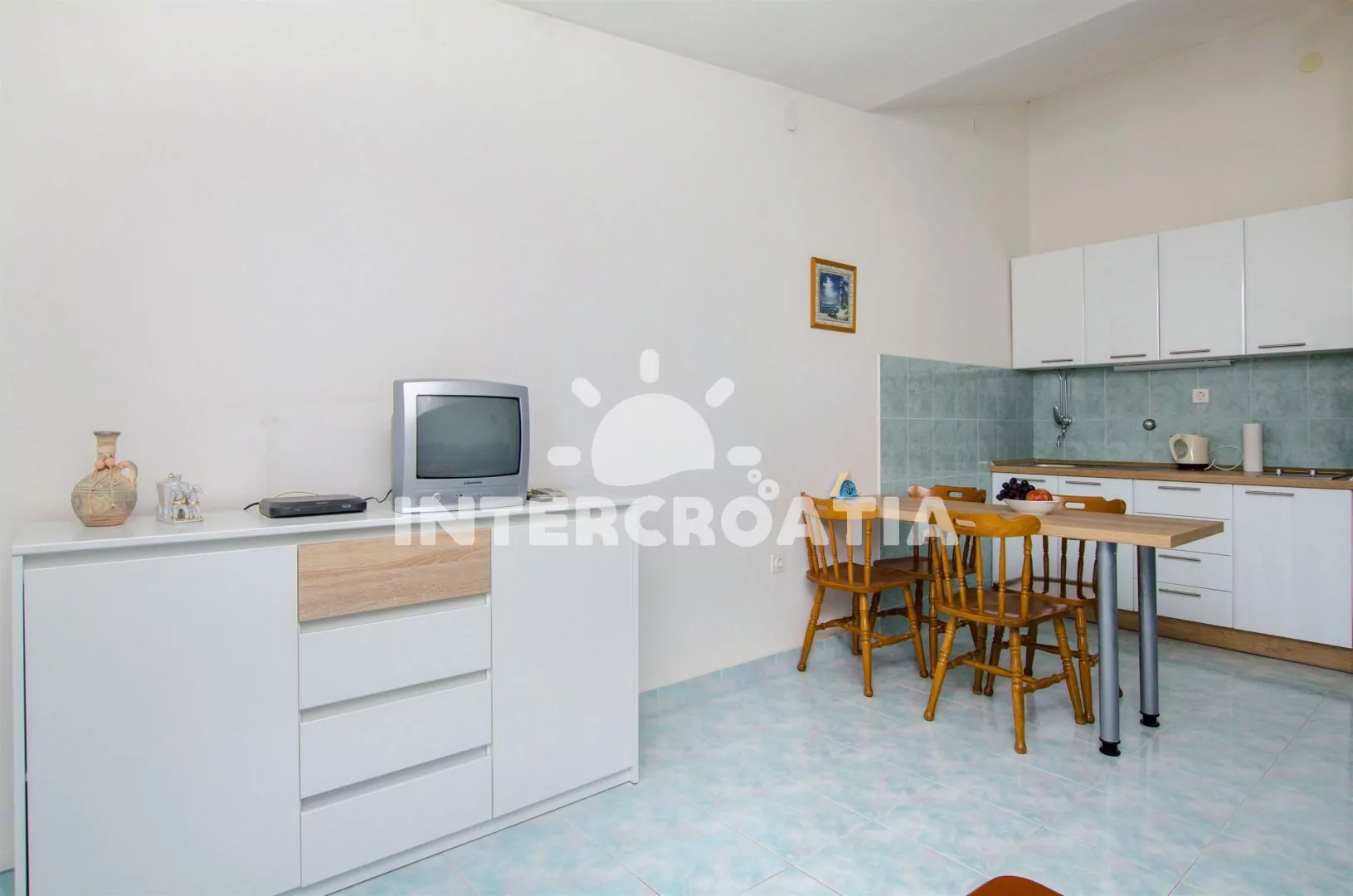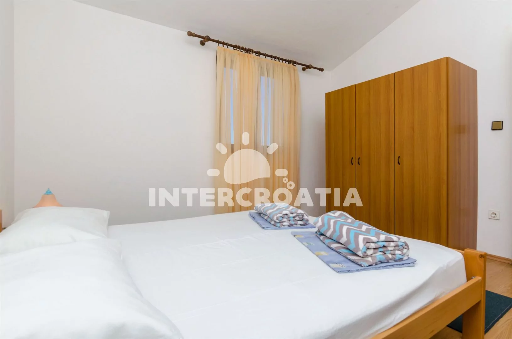 Apartmán s balkonem a jedinečným výhledem na moře je vhodný pro 2 až 4 osoby, nachází se v první patře vily. Obývací pokoj je spojený s kuchyní. Kuchyňská linka je vybavena dvouplotýnkovým sporákem, mikrovlnnou troubou, rychlovarnou konvicí, nádobím a lednicí s mrazákem. Obývací pokoj s jídelním stolem pro 4 osoby, pohovkou (rozložitelná na extra lůžko pro 2 osoby), televizí, klimatizací a vstupem na balkon. Ložnice je vybavena jedním dvoulůžkem. Koupelna se sprchovým koutem, umyvadlem a wc. Hostům je k dispozici parkování u objektu zdarma.
