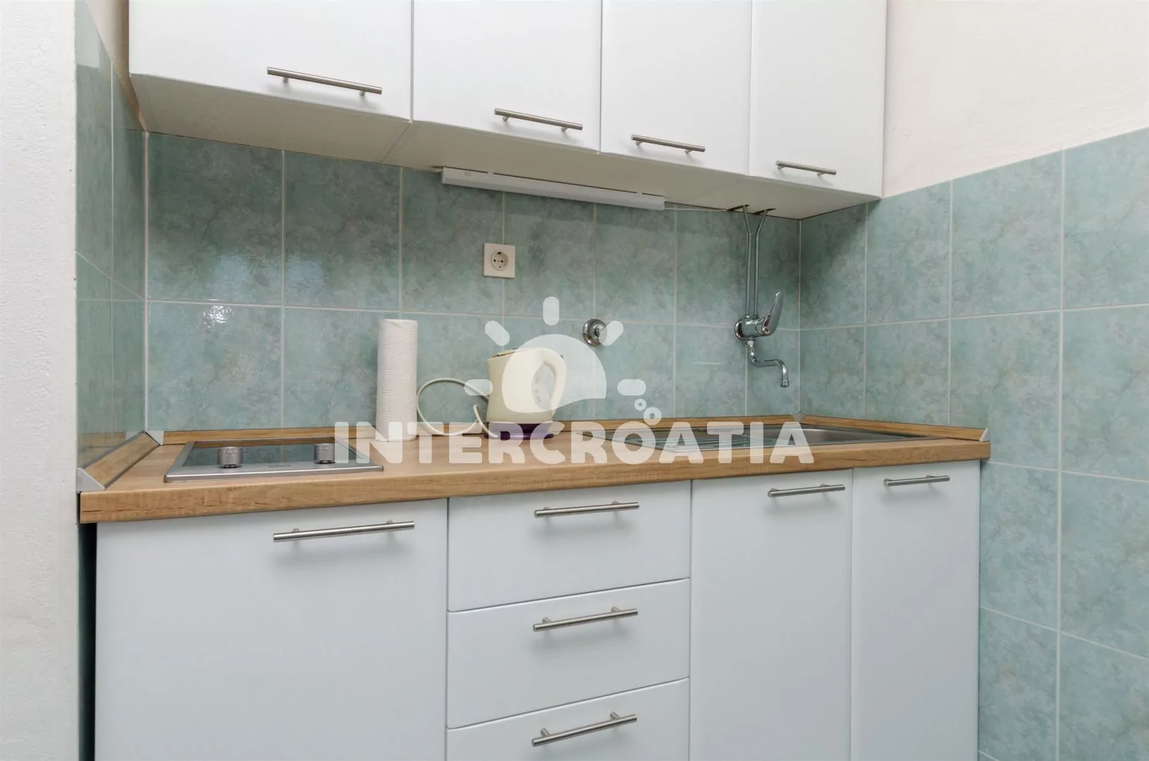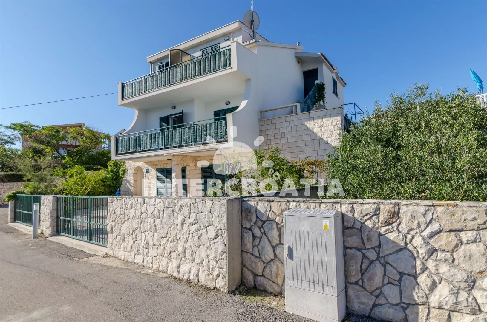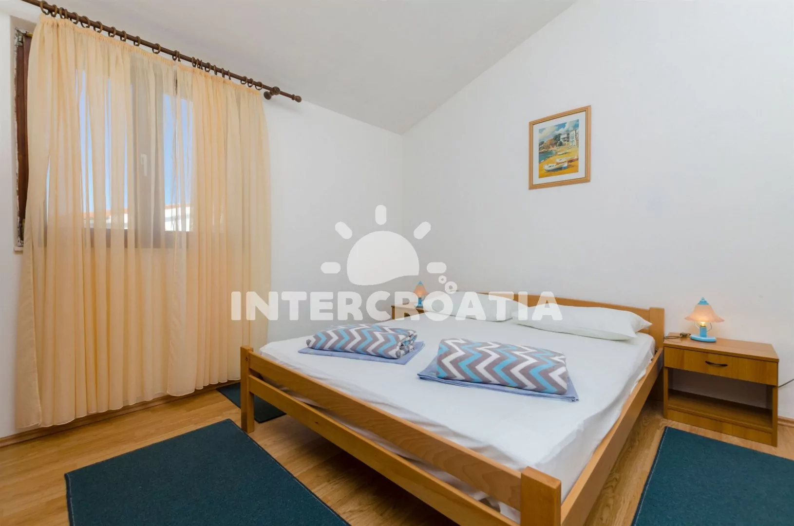 Apartmán s balkonem a jedinečným výhledem na moře je vhodný pro 2 až 4 osoby, nachází se v první patře vily. Obývací pokoj je spojený s kuchyní. Kuchyňská linka je vybavena dvouplotýnkovým sporákem, mikrovlnnou troubou, rychlovarnou konvicí, nádobím a lednicí s mrazákem. Obývací pokoj s jídelním stolem pro 4 osoby, pohovkou (rozložitelná na extra lůžko pro 2 osoby), televizí, klimatizací a vstupem na balkon. Ložnice je vybavena jedním dvoulůžkem. Koupelna se sprchovým koutem, umyvadlem a wc. Hostům je k dispozici parkování u objektu zdarma.