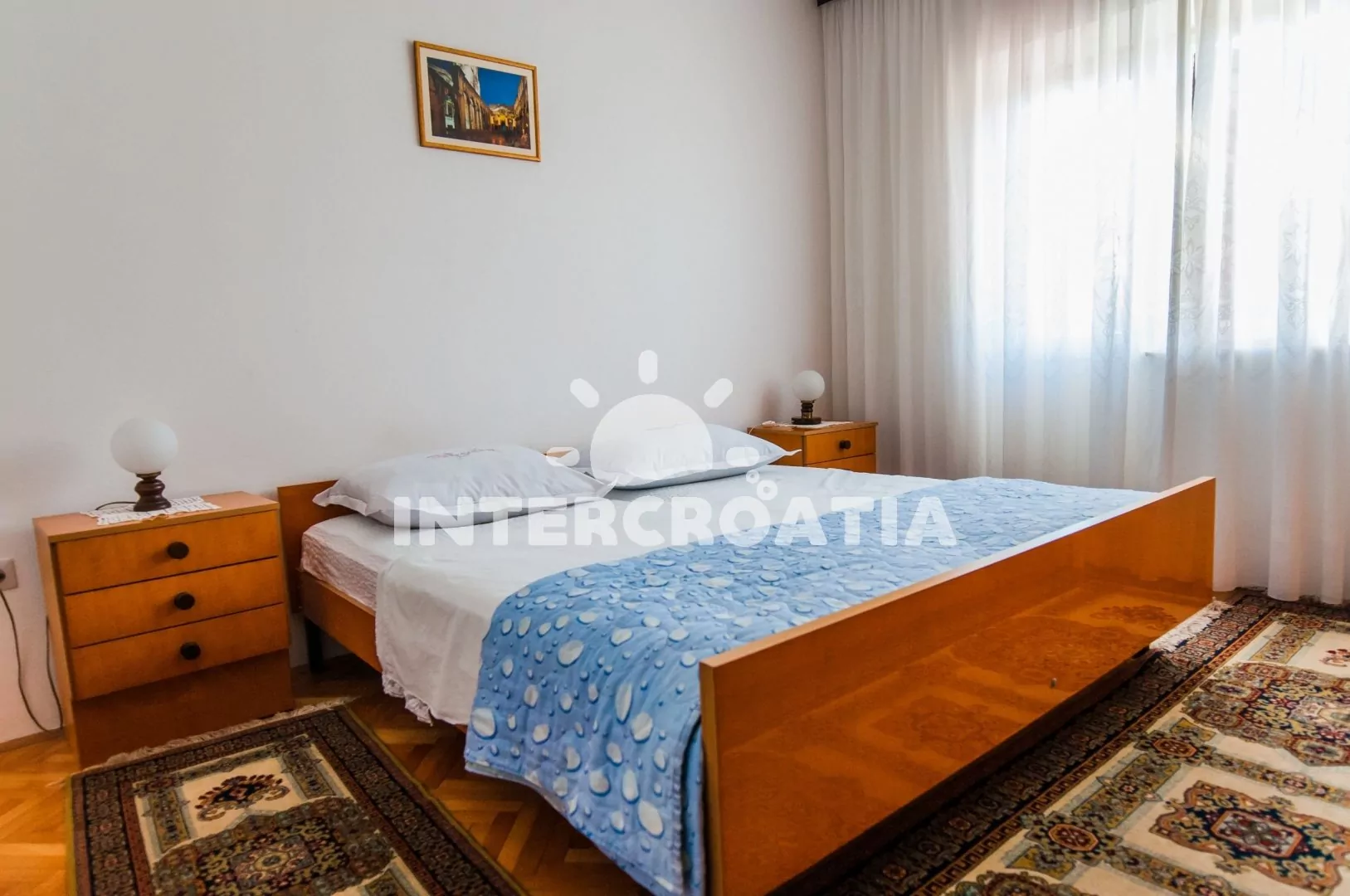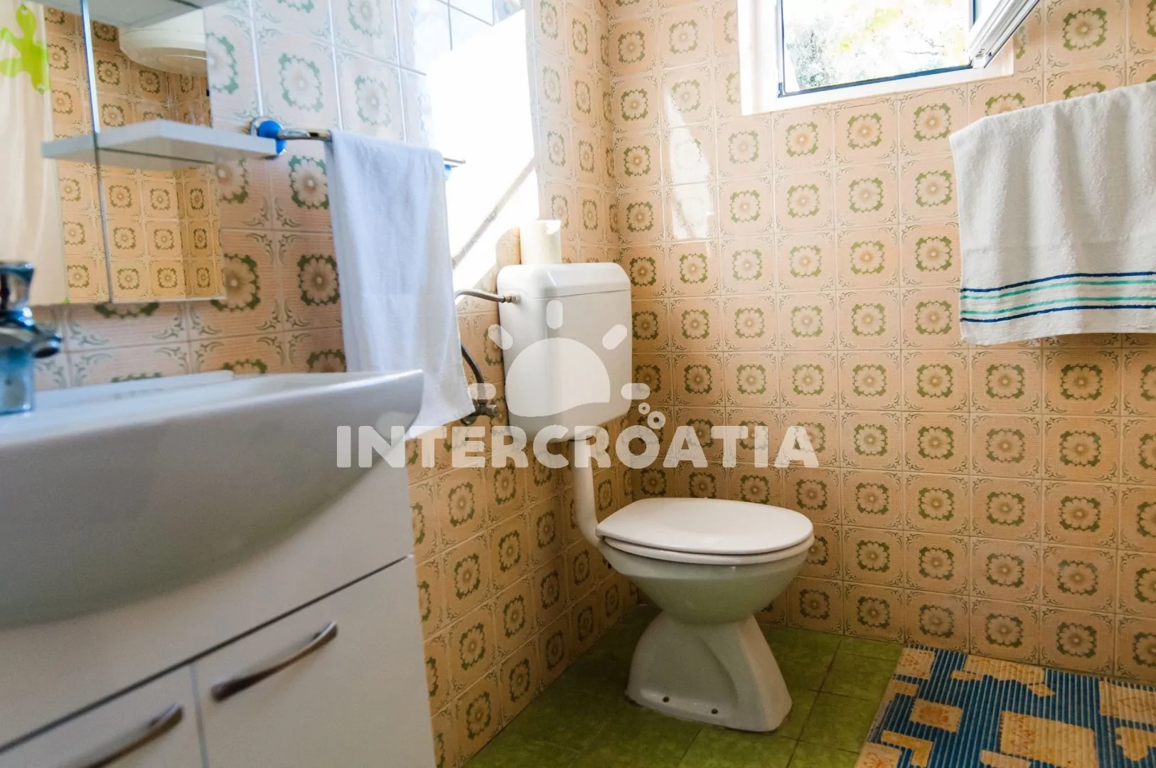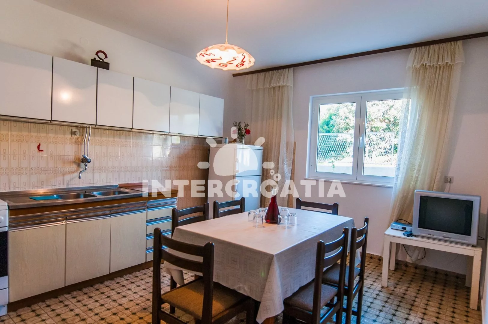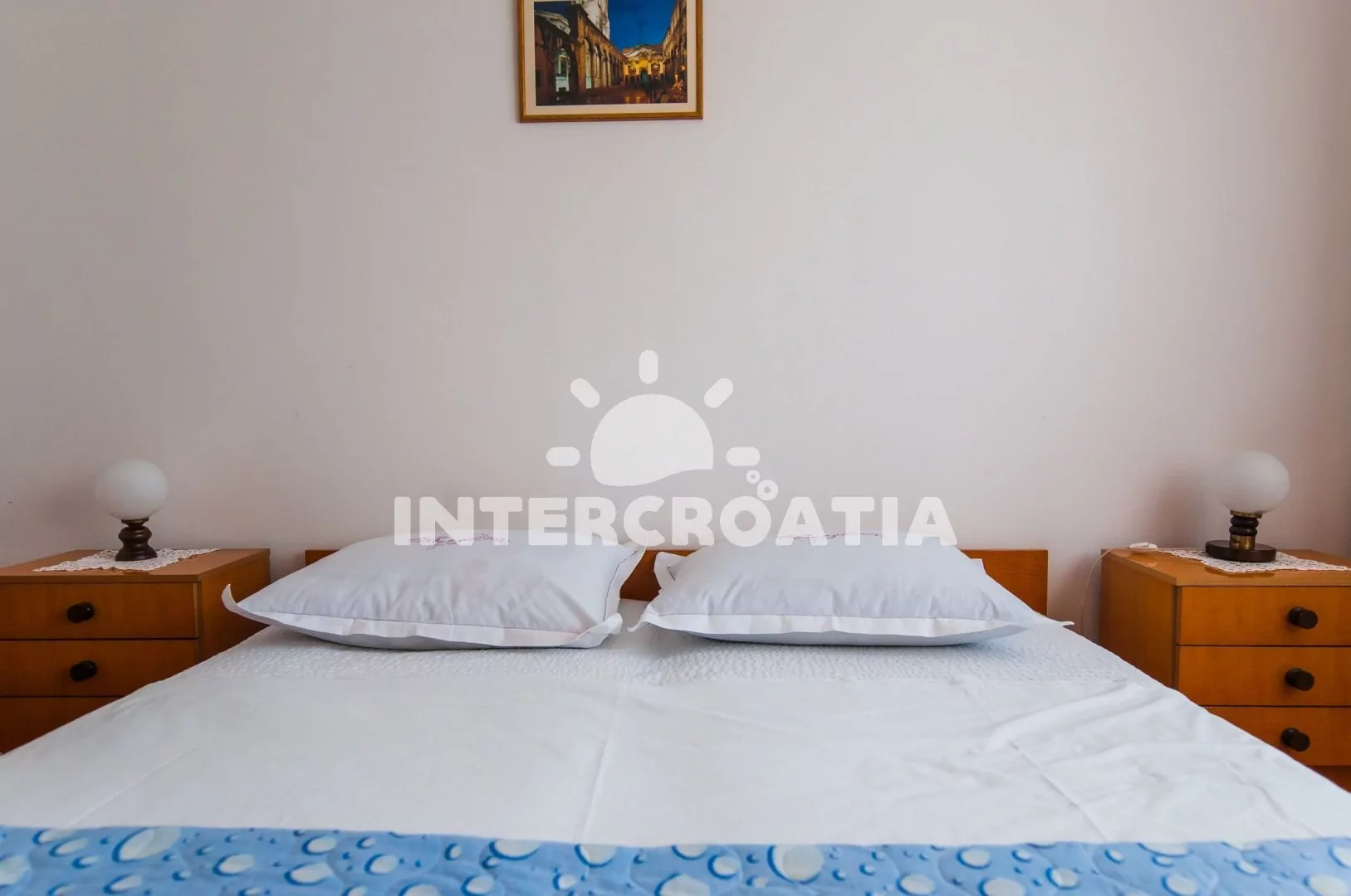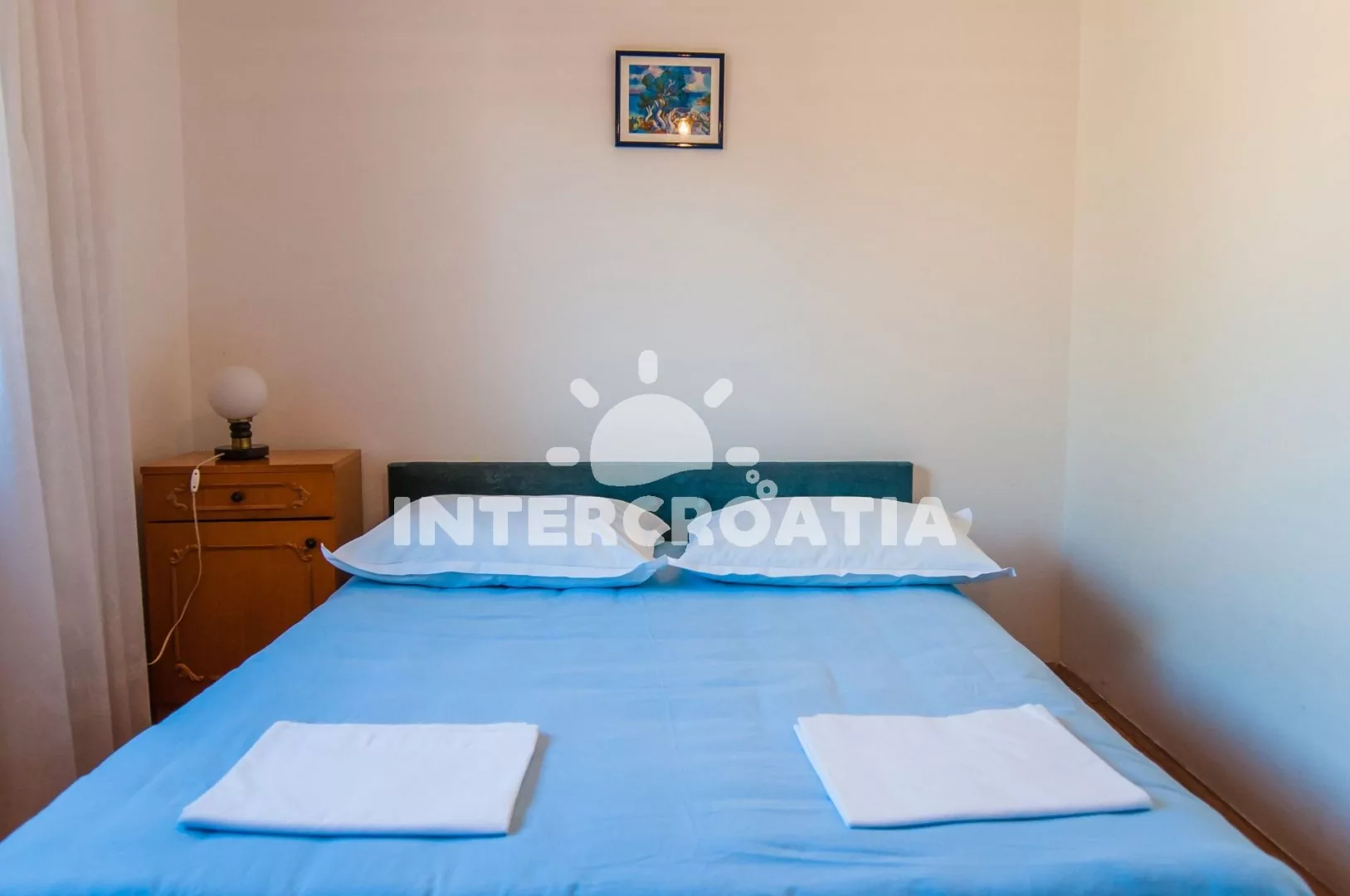 Apartmán (70 m2) s výhledem na moře a terasou s venkovním posezením se nachází v přízemí domu a je vhodný pro 6 až 7 osob. Kuchyň je vybavena jídelním stolem pro 6 osob, televizí se satelitním programem, kuchyňskou linkou se sporákem, troubou, kávovarem, nádobím a lednicí s mrazákem. Tři samostatné ložnice. První ložnice s jedním dvoulůžkem a jednou přistýlkou. Druhá a třetí ložnice, vždy s jedním dvoulůžkem. Koupelna se sprchou, umyvadlem a wc. Hostům je k dispozici parkování u objektu zdarma.
